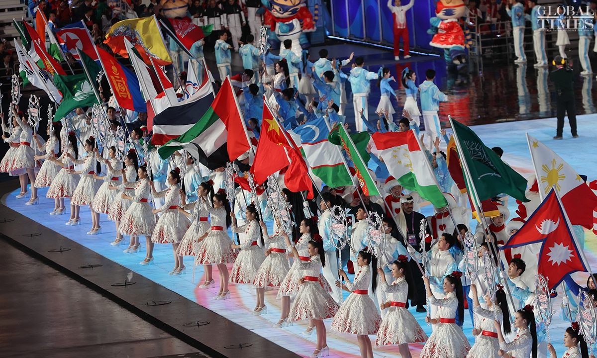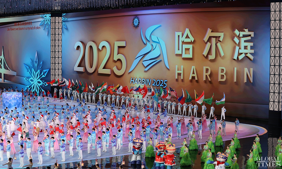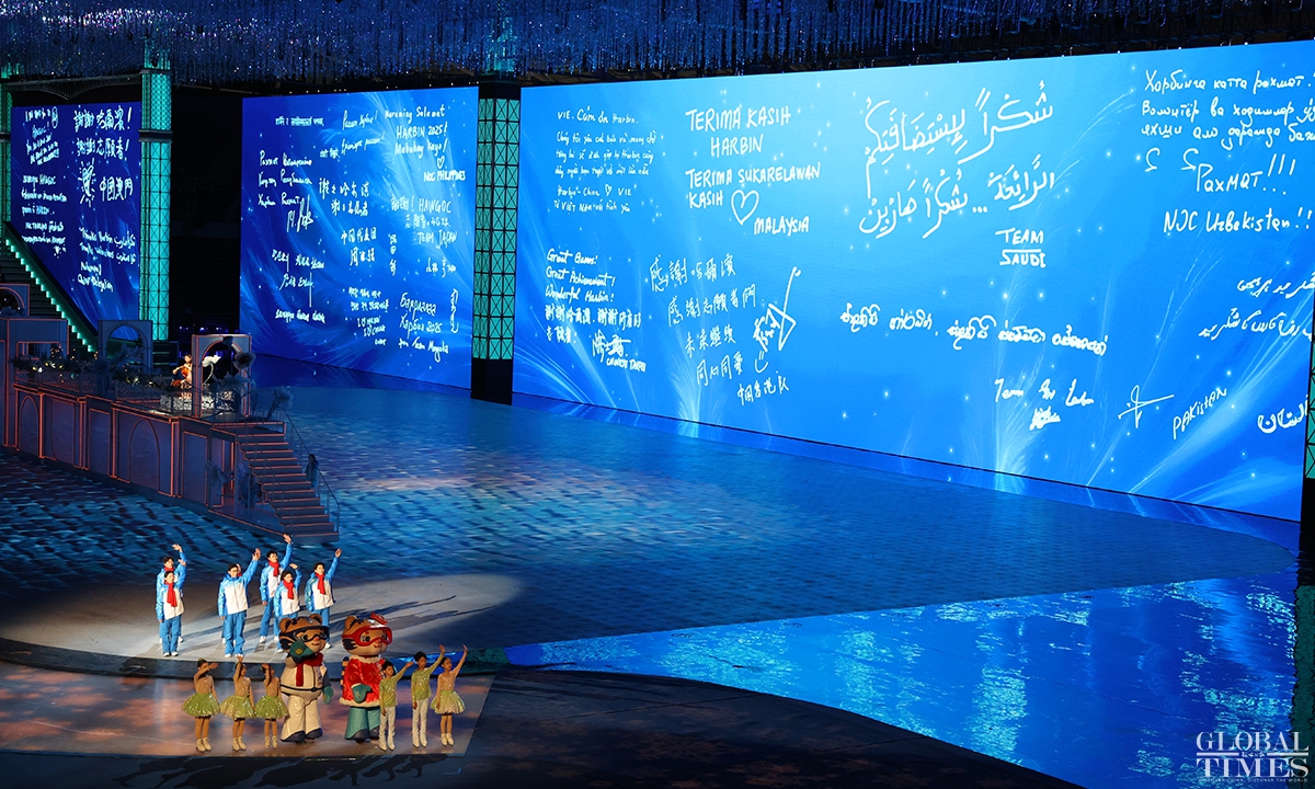 The 9th Asian Winter Games came to a close on Friday in Harbin, Northeast China's Heilongjiang Province. The closing ceremony featured artistic performances to express emotions ranging from “anticipation” and “reunion” to “farewell.” It conveyed China’s optimism and warmth, paying tribute to athletes from all countries. The overall length of the ceremony was approximately 60 minutes, with the opening and closing ceremonies echoing each other, centered around the theme of "winter departs, spring arrives, and life continues." (Photos: Chen Tao/GT)