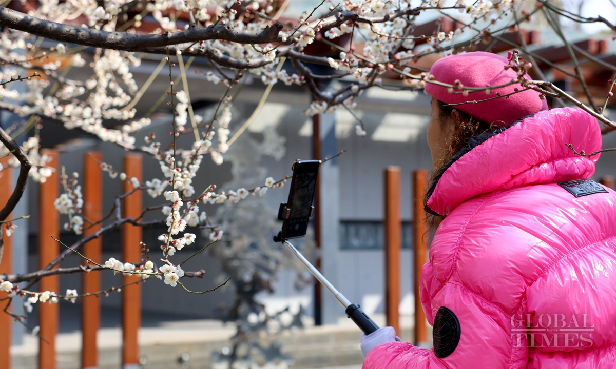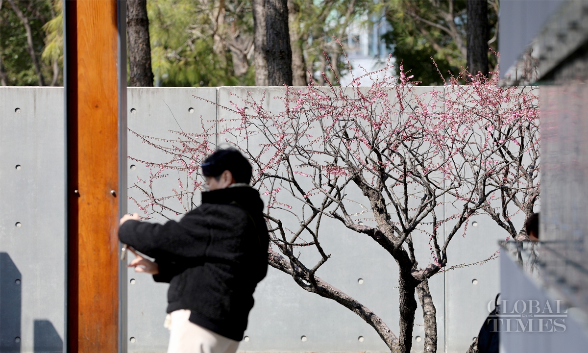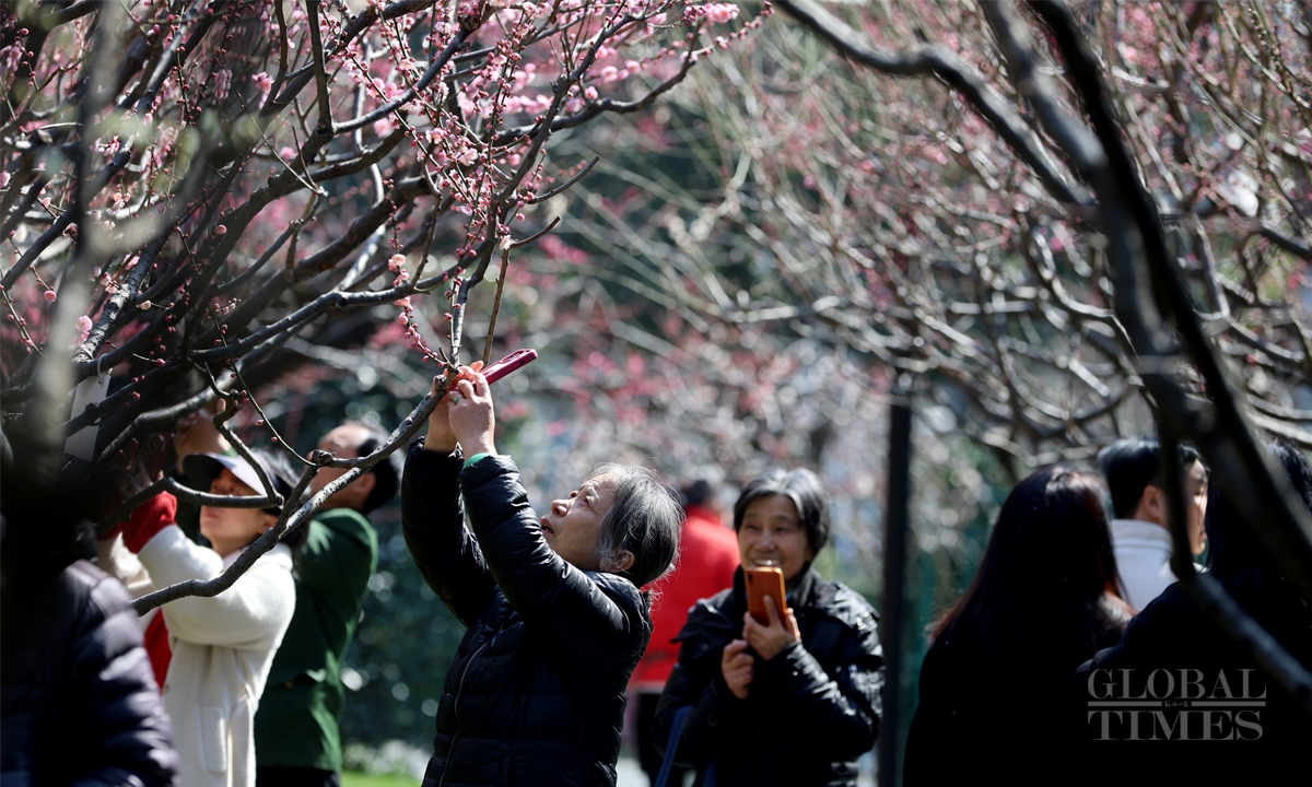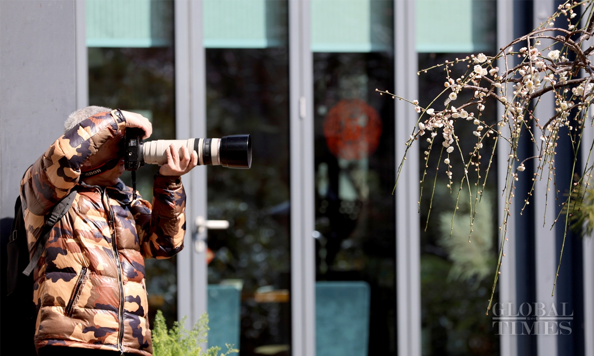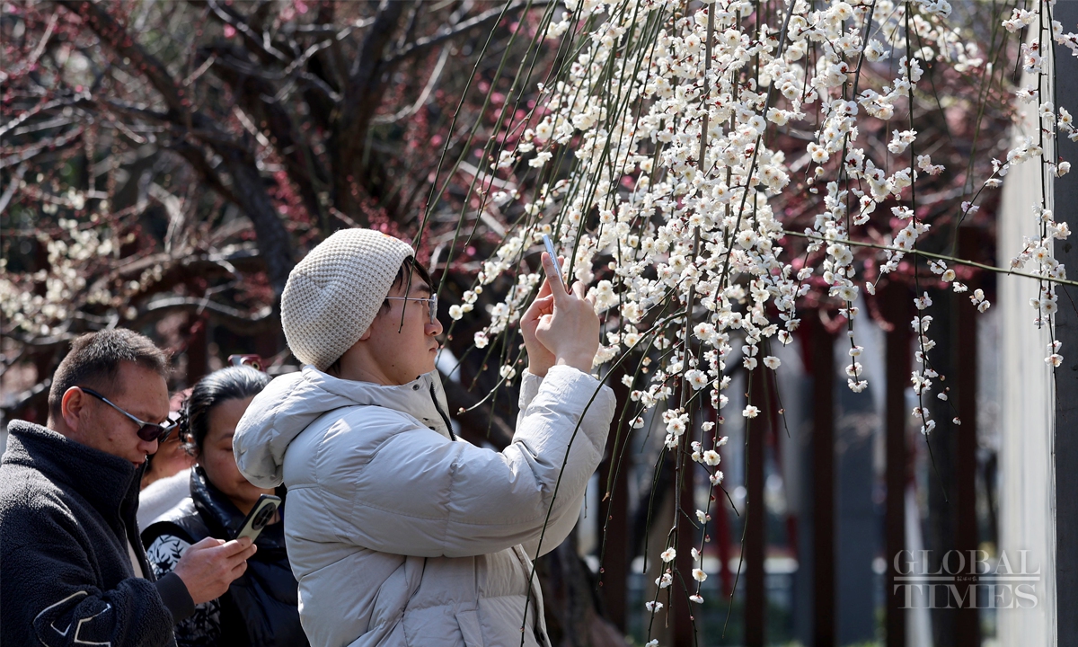 On February 18th, plum blossoms in Shanghai's Jing'an Sculpture Park erupted into a breathtaking bloom. Their delicate, fragrant petals unfurled, casting a spell of springtime allure over the park. The spectacle was nothing short of enchanting, drawing in hordes of citizens. Eager visitors were bustling about, cameras in hand, determined to freeze the transient beauty of the plum blossoms. Photos: Chen Xia/GT