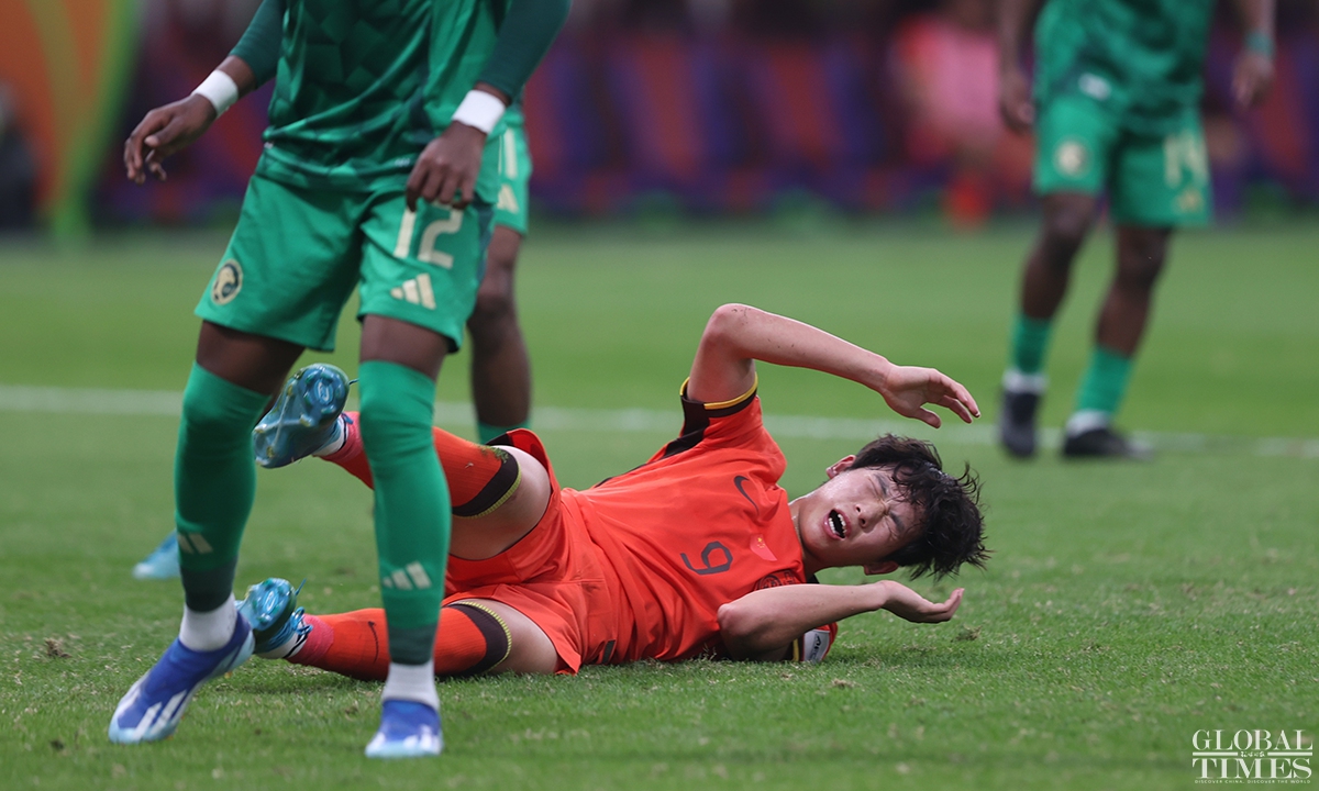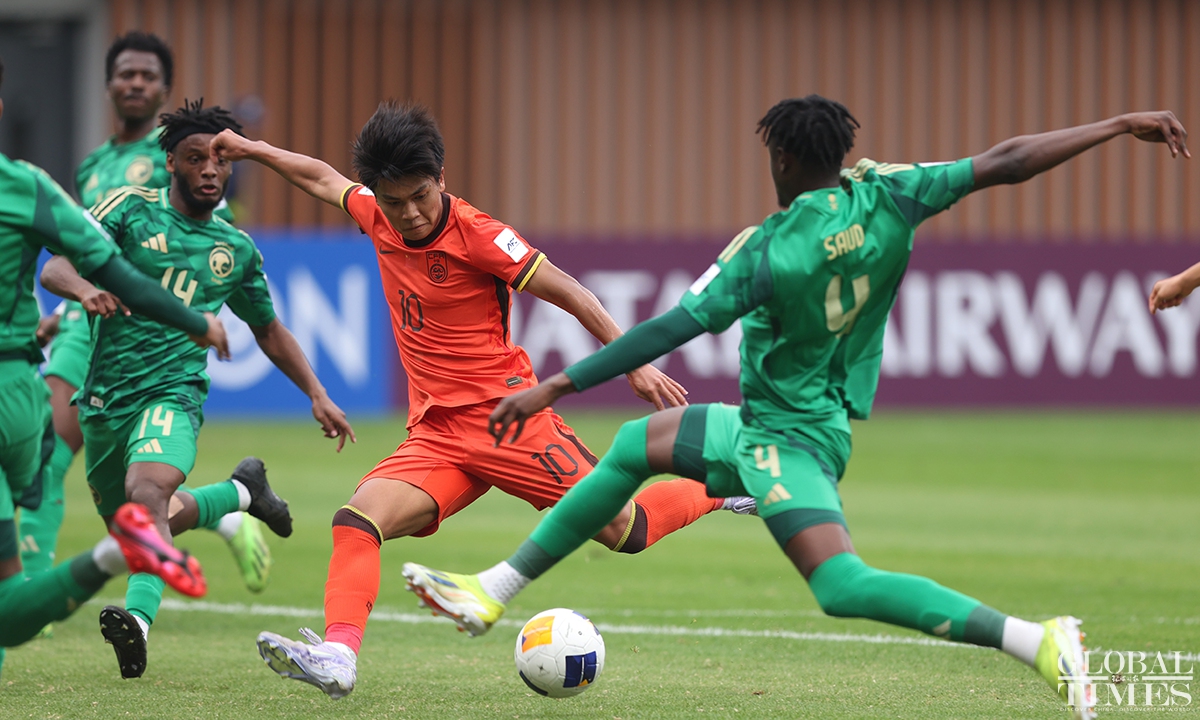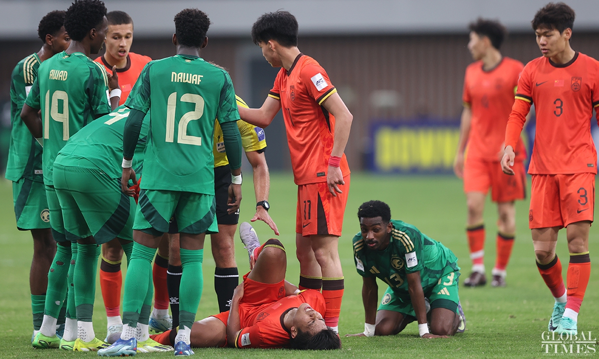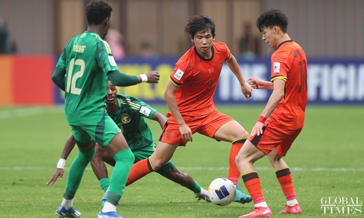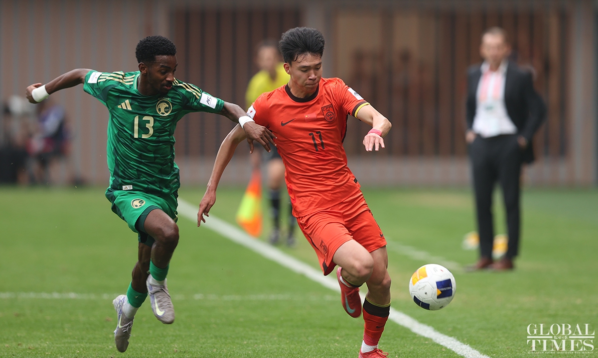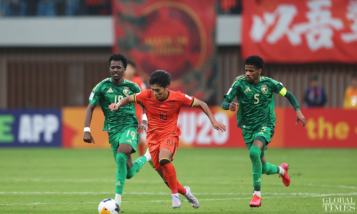 The Chinese national under-20 team fell short of qualifying for the FIFA U-20 World Cup after conceding a goal in the 95th minute to Saudi Arabia that resulted in a 1-0 quarterfinals defeat in the U-20 Asian Cup on Saturday. The defeat in this match deprives the young Chinese team of the opportunity to qualify for the FIFA U-20 World Cup for the first time in 20 years. (Photos: Cui Meng/GT)