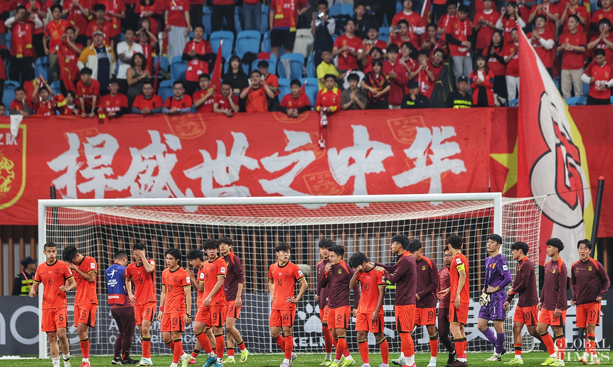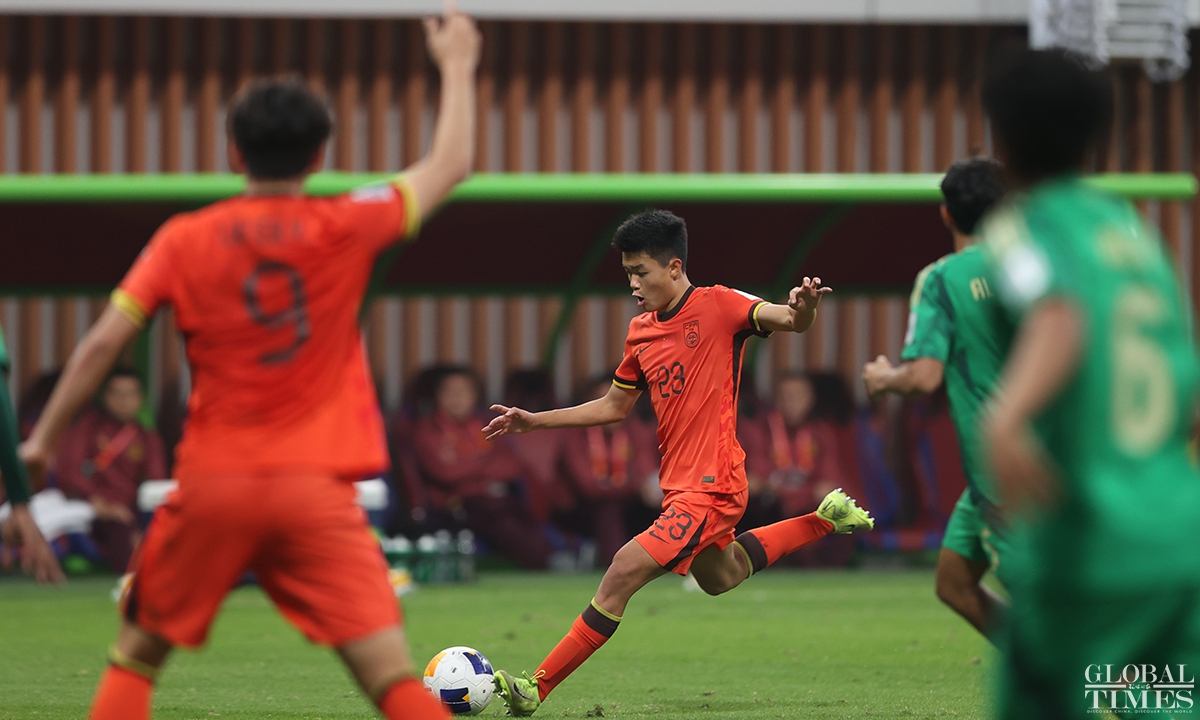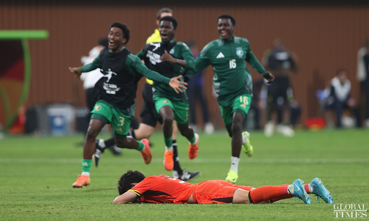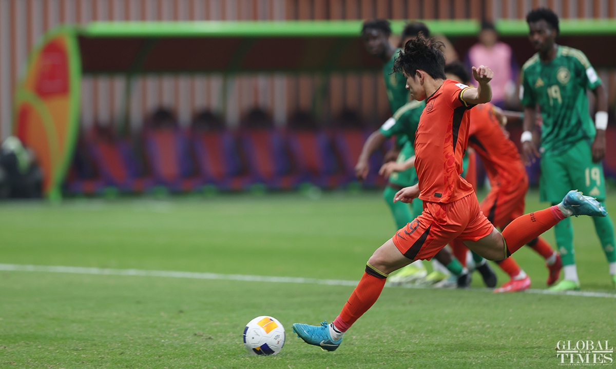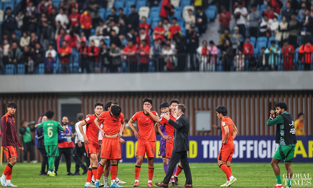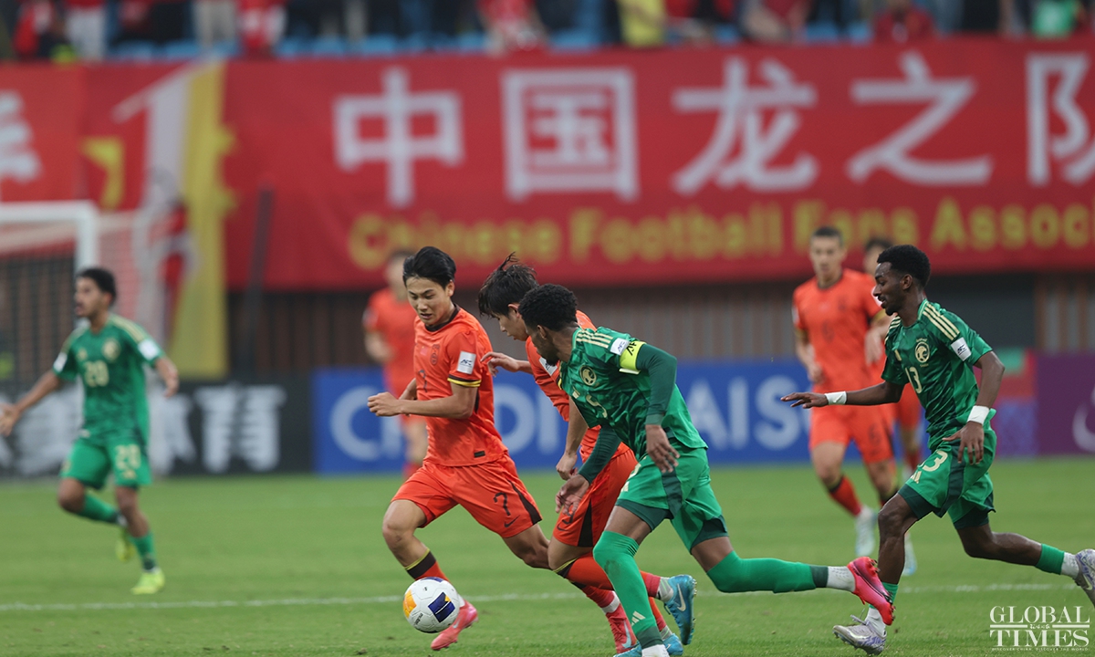 The Chinese national under-20 team fell short of qualifying for the FIFA U-20 World Cup after conceding a goal in the 95th minute to Saudi Arabia that resulted in a 1-0 quarterfinals defeat in the U-20 Asian Cup on Saturday. The defeat in this match deprives the young Chinese team of the opportunity to qualify for the FIFA U-20 World Cup for the first time in 20 years. (Photos: Cui Meng/GT)