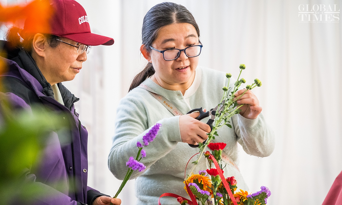 On March 8, Beijing’s Jingshan Park hosted a flower arrangement event to celebrate International Women's Day. In honor of the occasion, several major parks in Beijing, including the Forbidden City, the Summer Palace and the Temple of Heaven, offered half-price admission to female visitors to show respect and best wishes for women. (Photos: Chen Tao/GT)