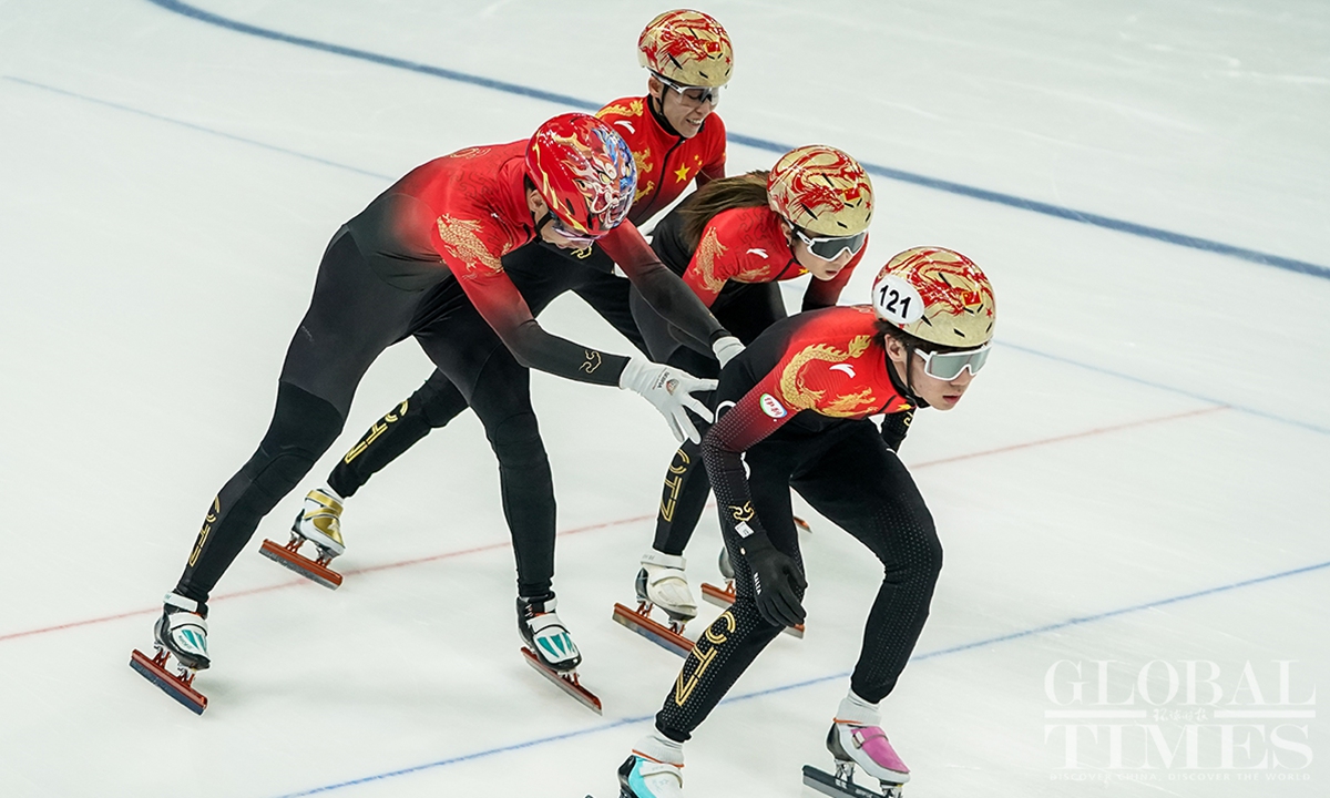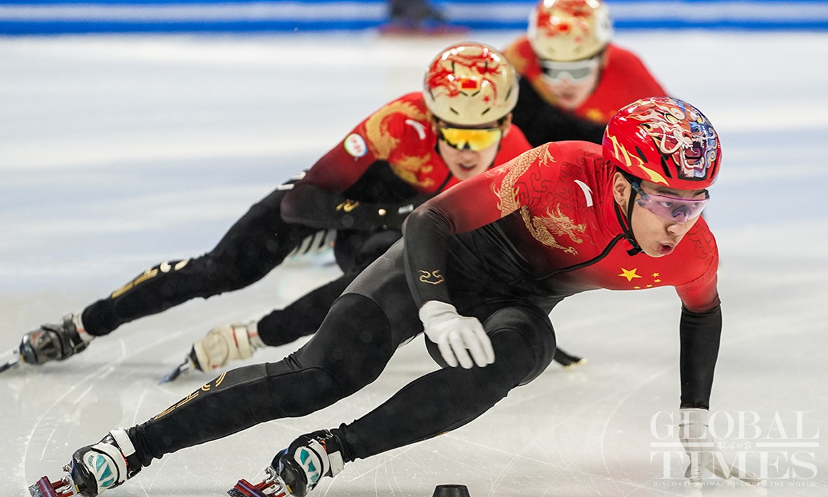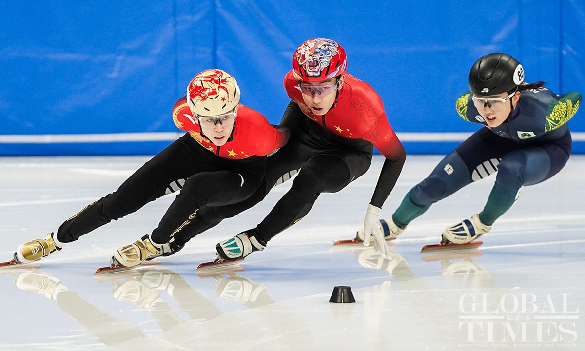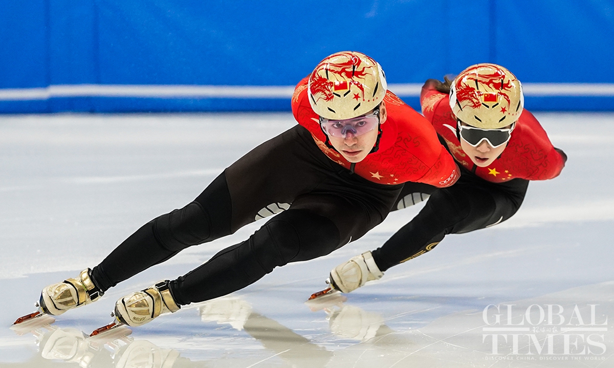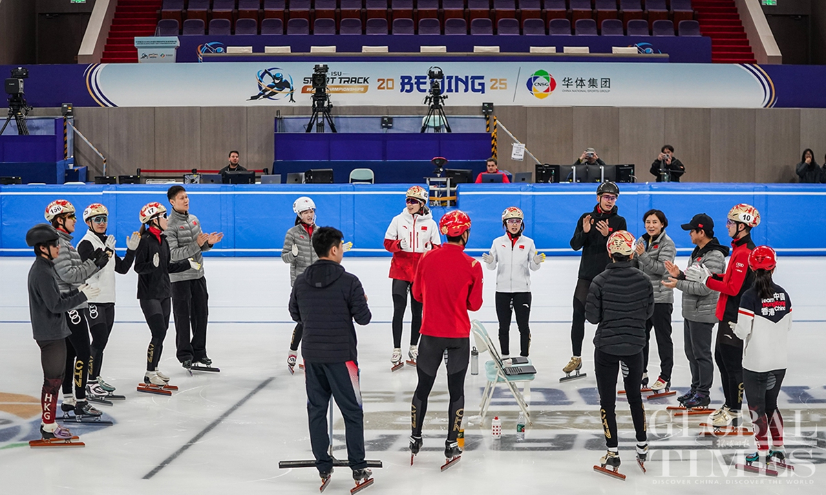 Chinese short track speed skaters prepare for the World Championships on Thursday at the Capital Indoor Stadium in Beijing. The championships will start on Friday and last till Sunday.(Photo: Cui Meng/GT)