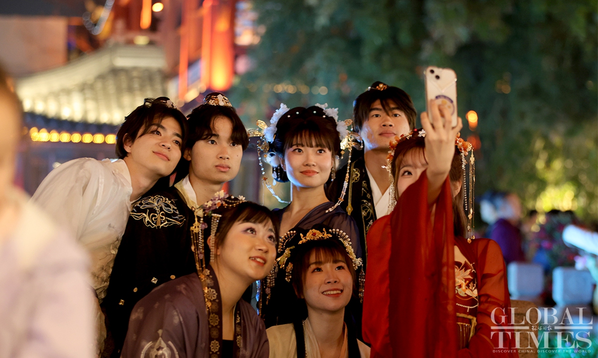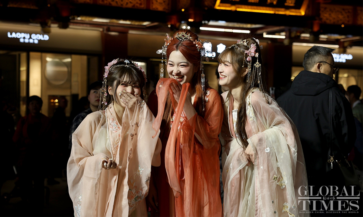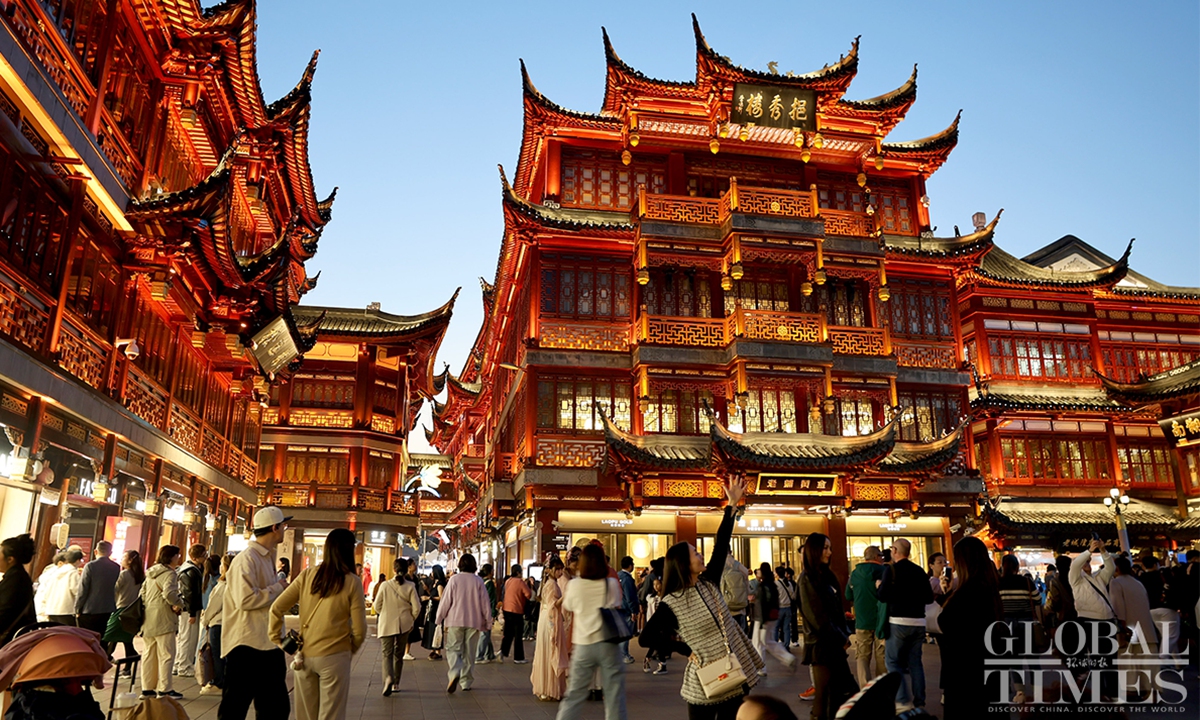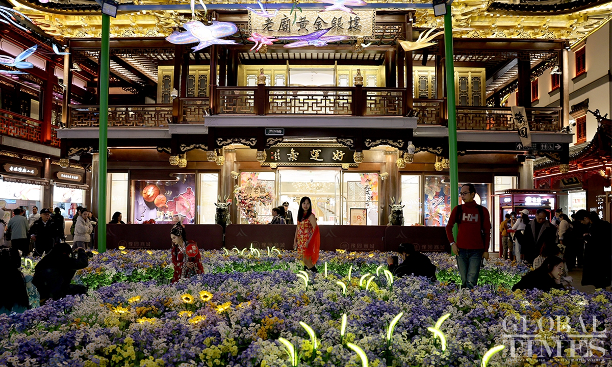 Shanghai residents and tourists enjoyed the Huazhao Festival, or flower festival, at Shanghai's Yuyuan Garden on Friday. The festival, which celebrates the birthday of the flower goddess, showcased traditional Chinese culture through modern and vibrant displays, attracting visitors from both home and abroad. The festival will run until May 5. (Photo: Chen Xia/GT)