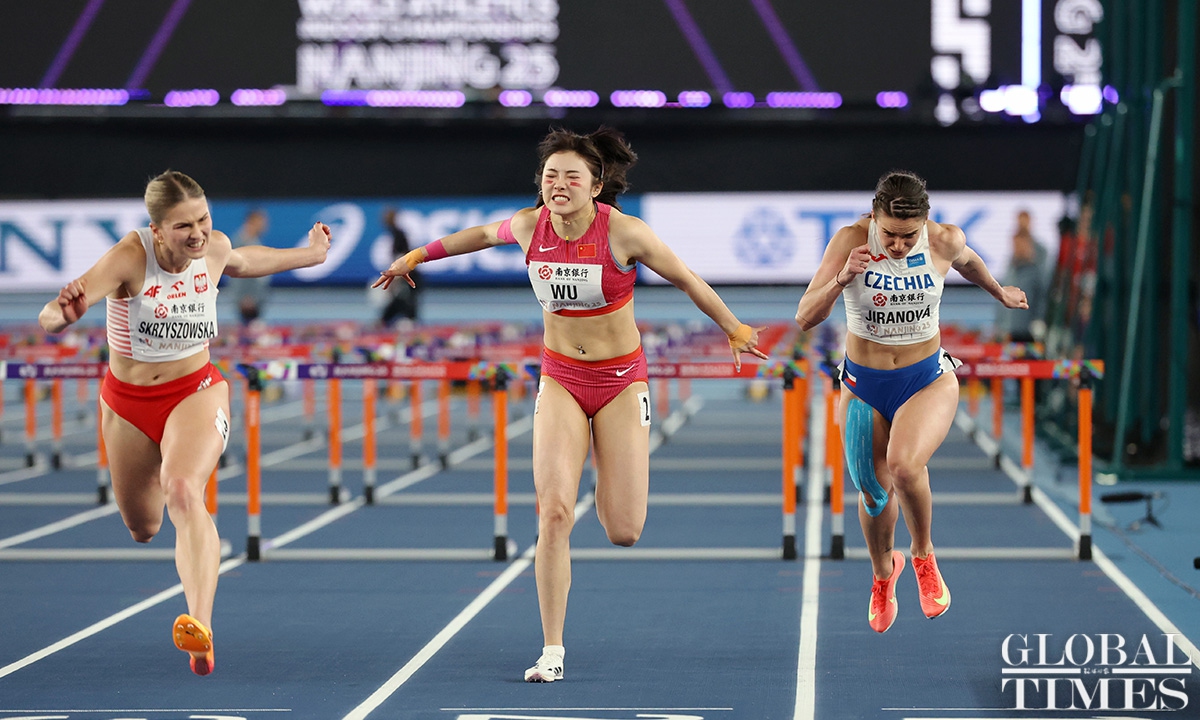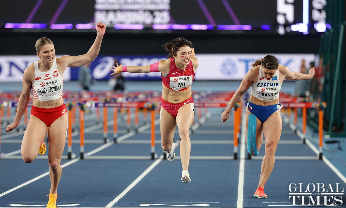 Chinese female hurdler Wu Yanni set a new national record at the women's 60m hurdles semifinals with 8.01 seconds at the World Athletics Indoor Championships in Nanjing, East China's Jiangsu Province.