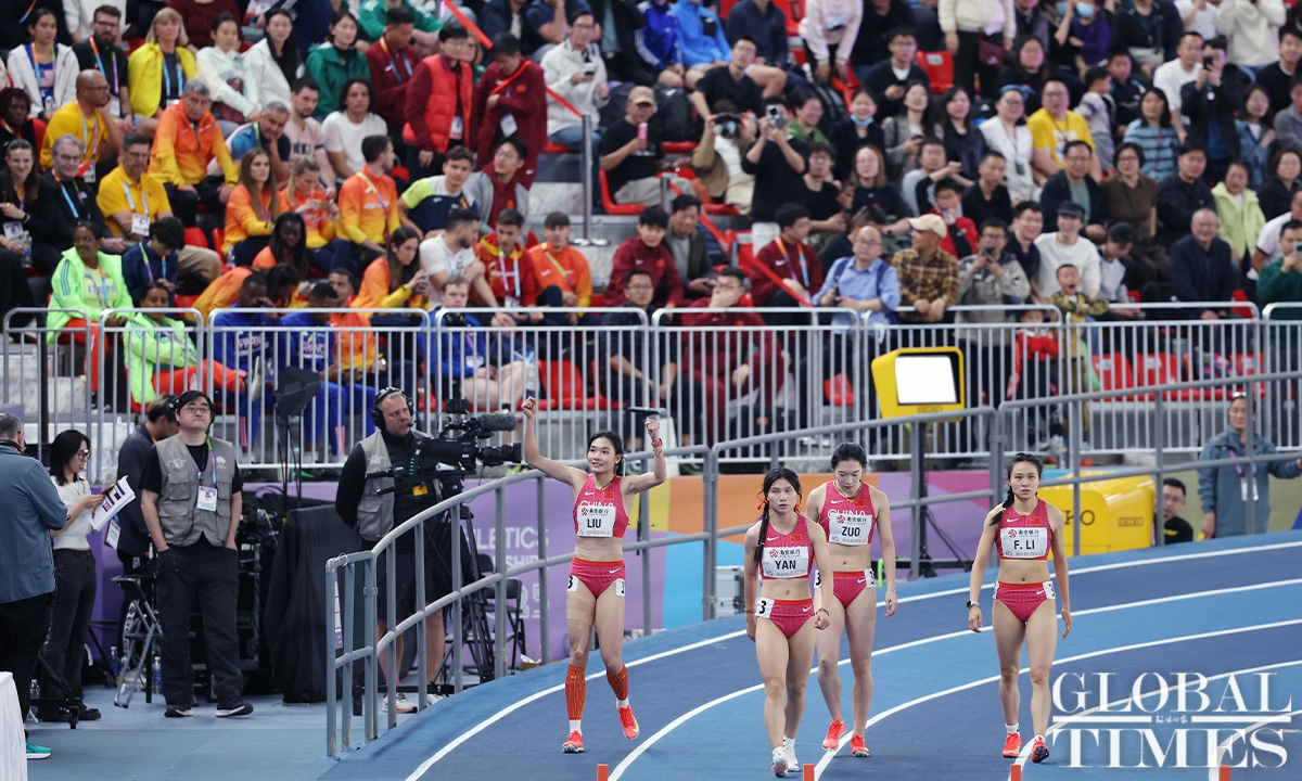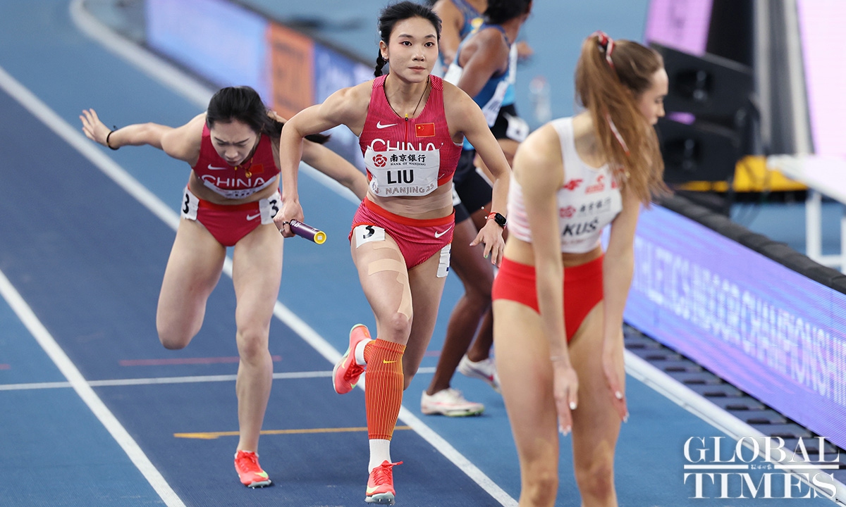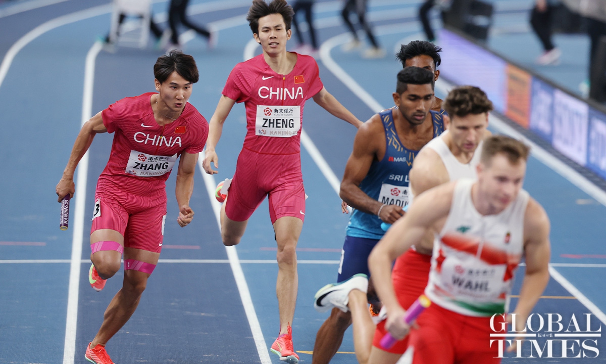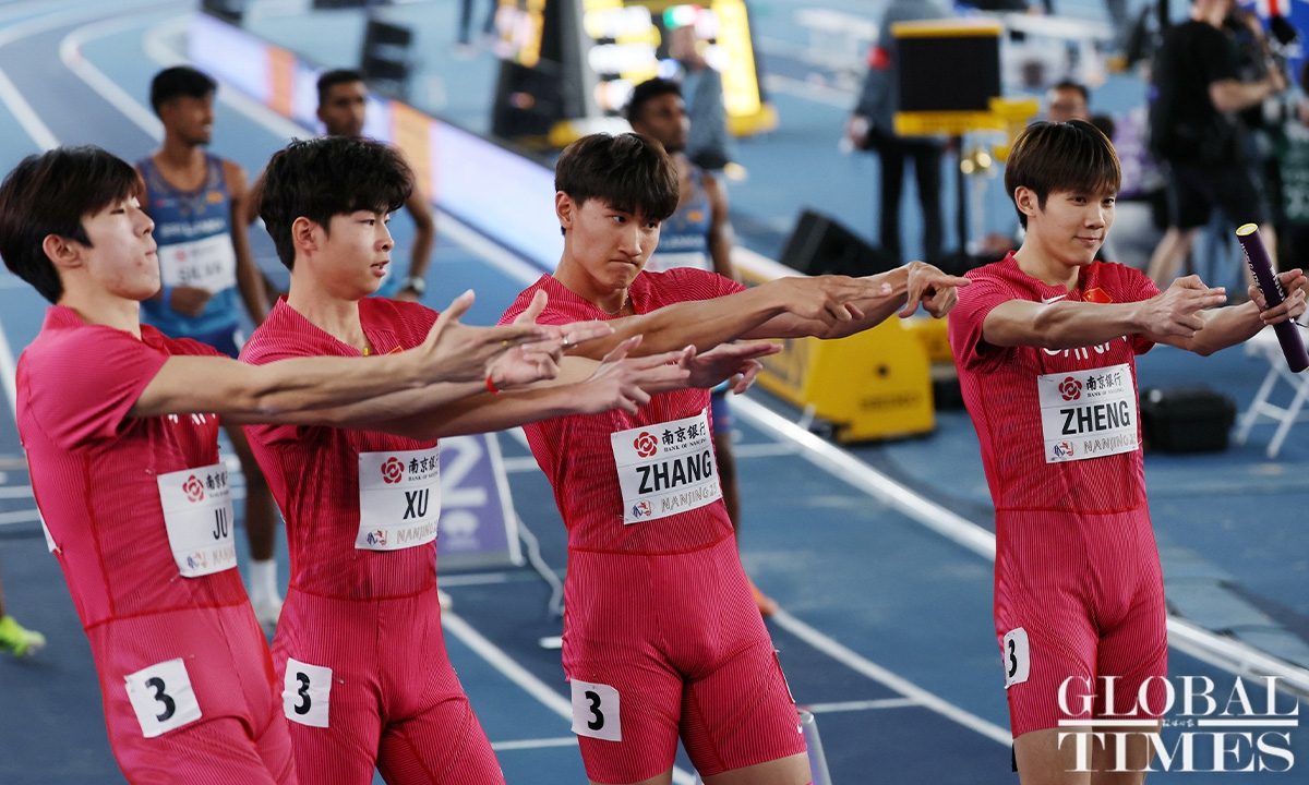 The Chinese men’s 4x400m relay team set a new national record of 3:06.90 at the World Athletics Indoor Championships in Nanjing, East China’s Jiangsu Province on Sunday, and the Chinese women’s relay team clocked the final with a season best 3:38.56.