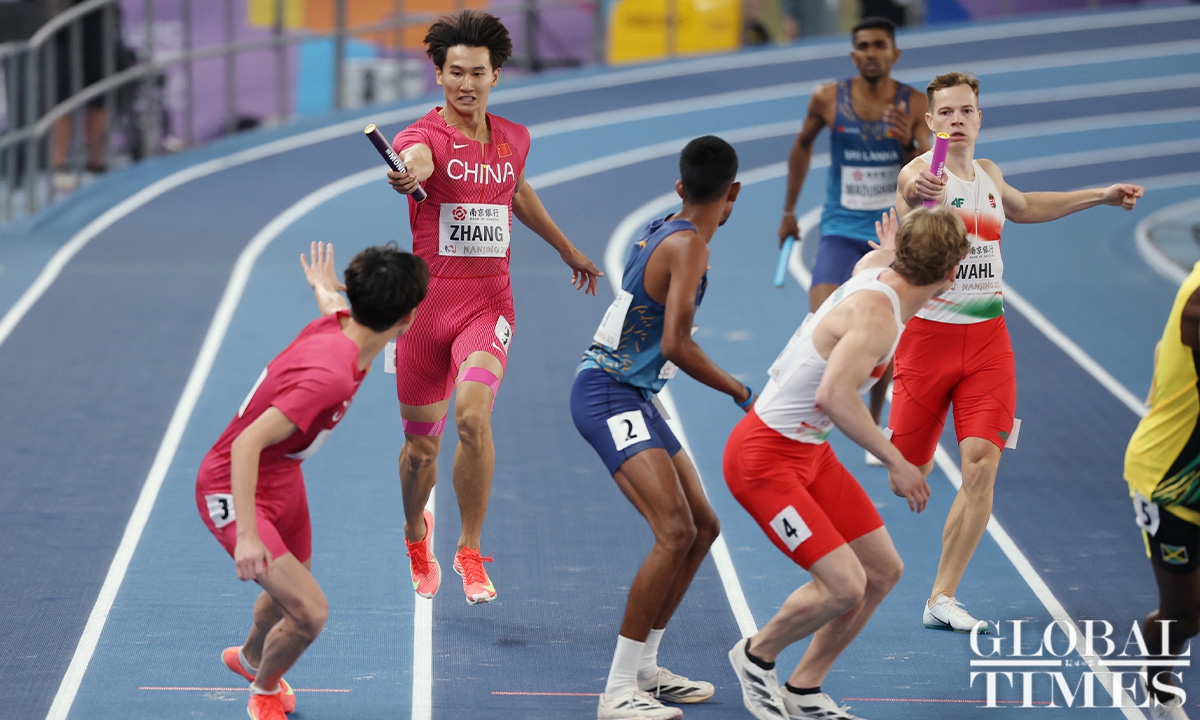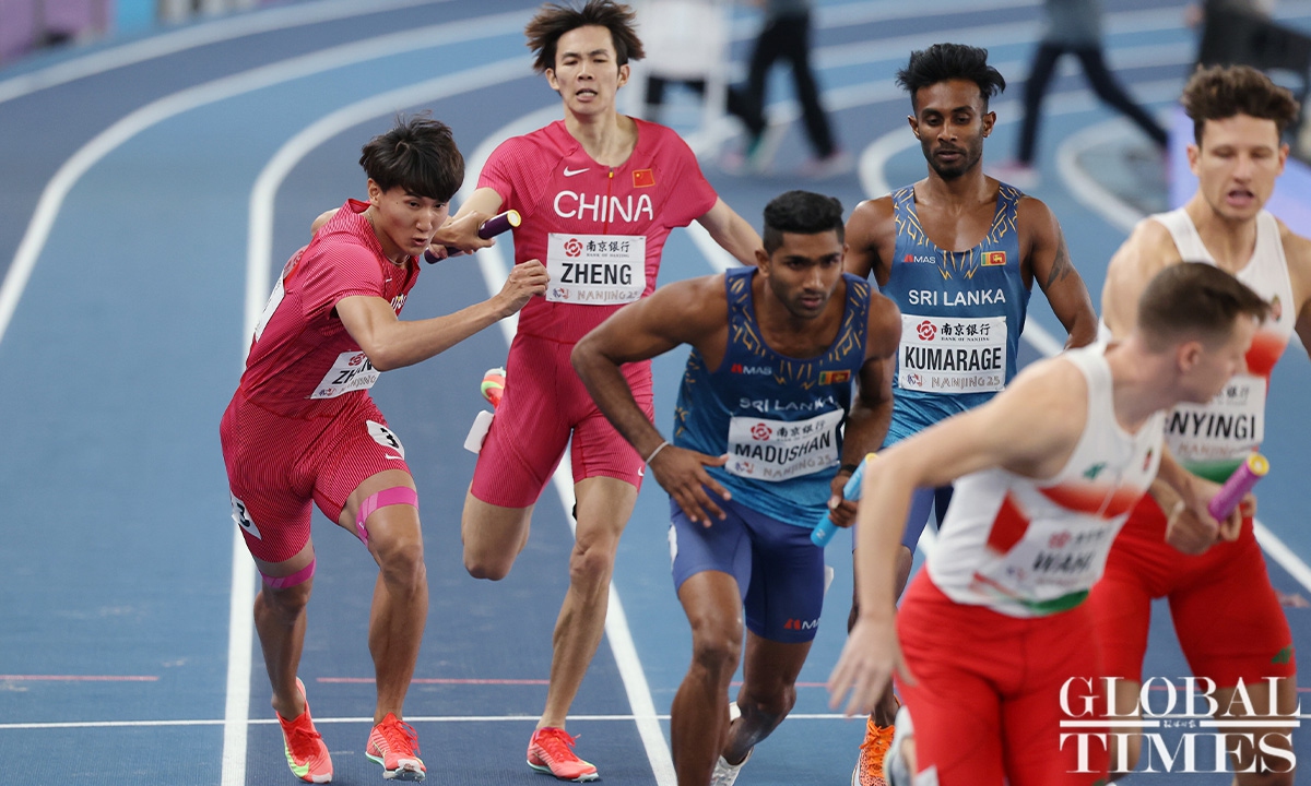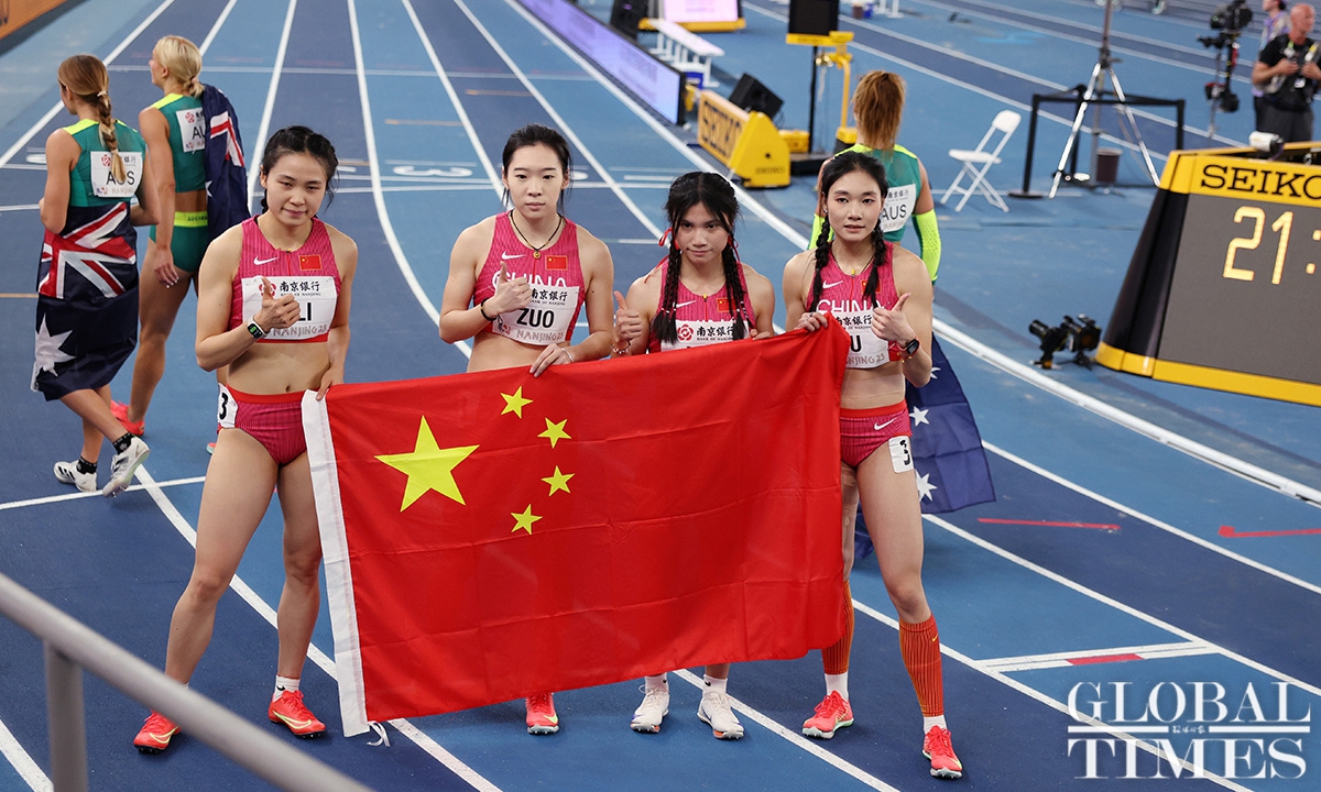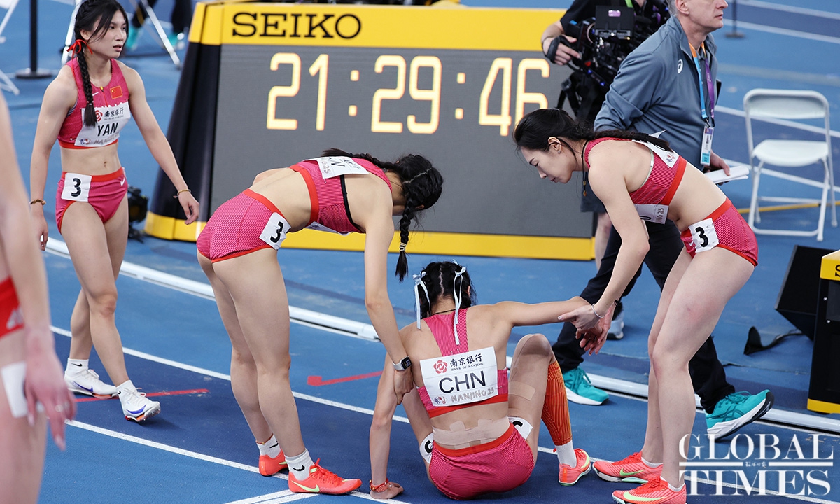 The Chinese men’s 4x400m relay team set a new national record of 3:06.90 at the World Athletics Indoor Championships in Nanjing, East China’s Jiangsu Province on Sunday, and the Chinese women’s relay team clocked the final with a season best 3:38.56.