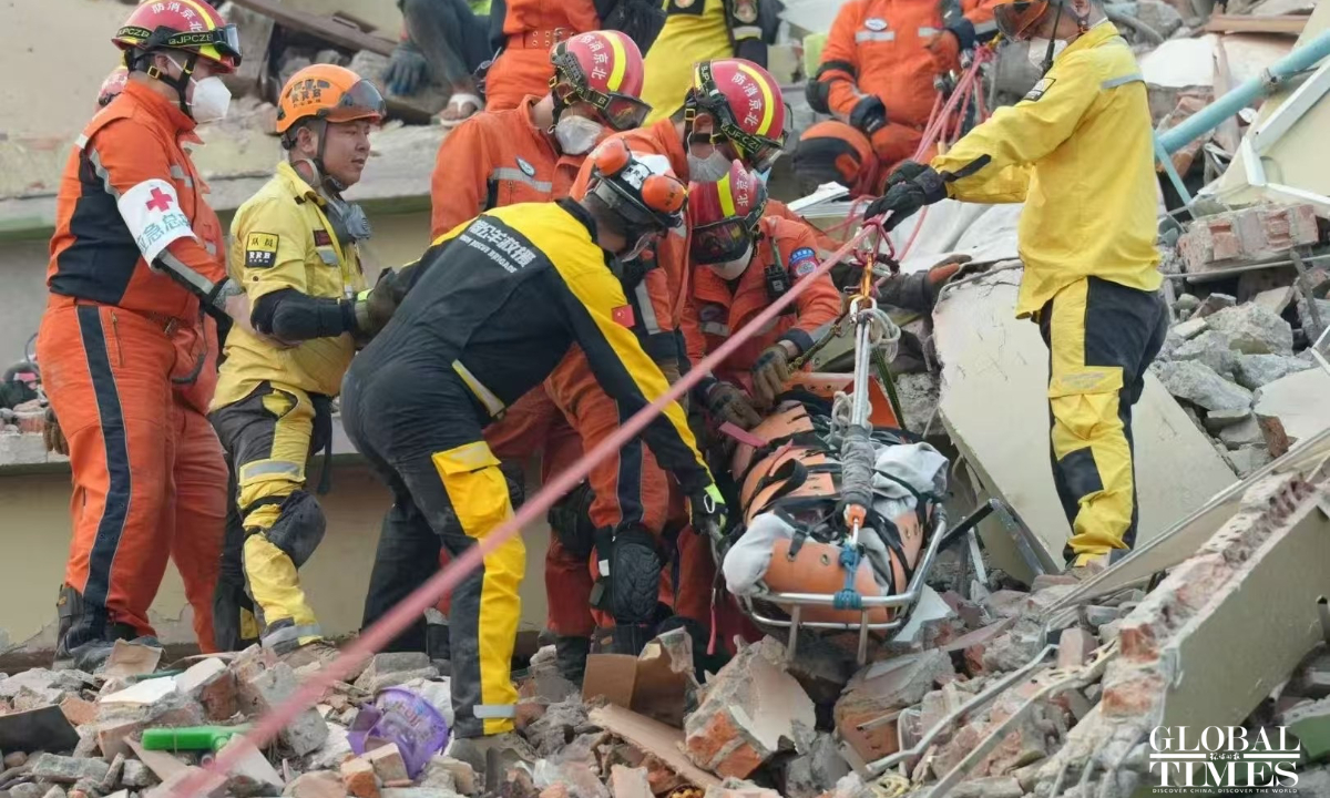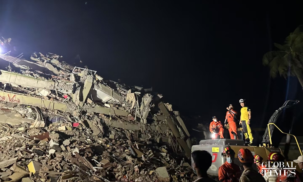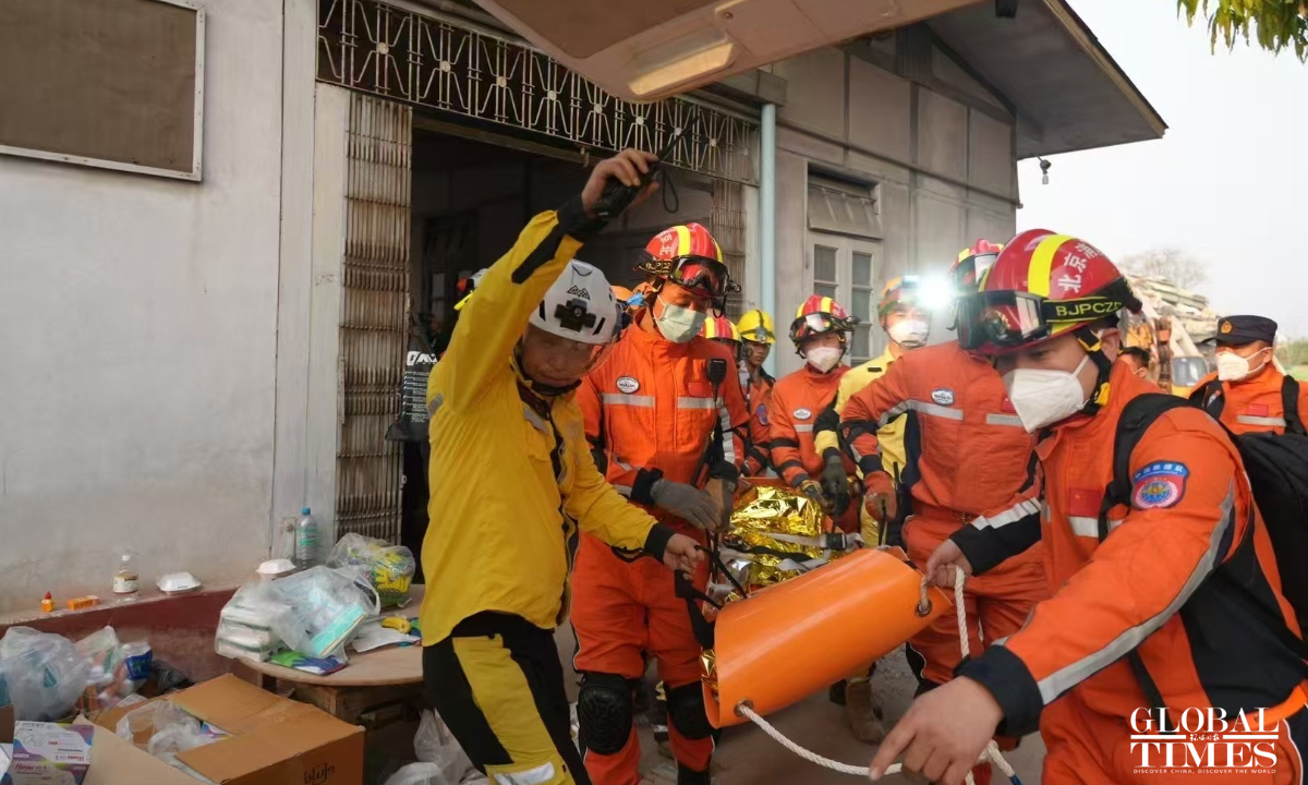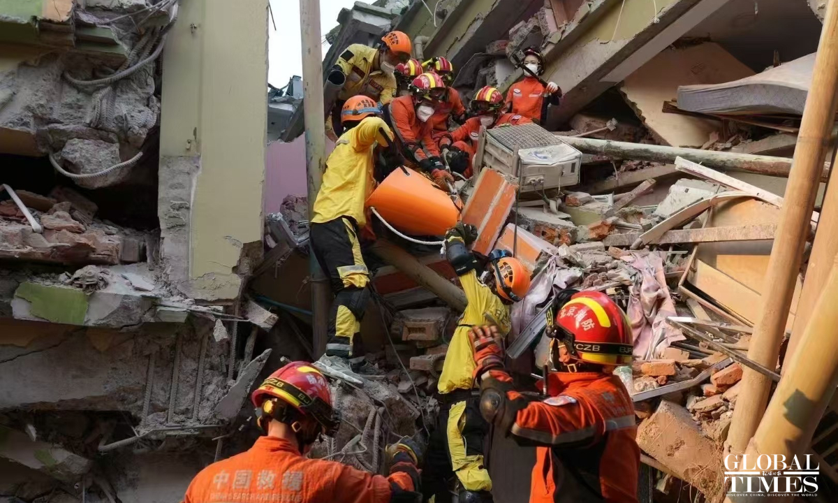 The RAMUNION RESCUE Team collaborated with the China Search and Rescue Team for 12 hours, successfully rescuing 4 individuals as of 9:00 AM Beijing time on Monday. Five survivors, including a child and a pregnant woman, have been rescued by Chinese rescue teams in Mandalay as of Monday morning as Chinese rescuers are racing against time to save lives in quake-hit Myanmar. In total, the RAMUNION RESCUE Team has rescued 5 survivors during the 72-hour non-stop rescue operation. (Photos: RAMUNION RESCUE Team)