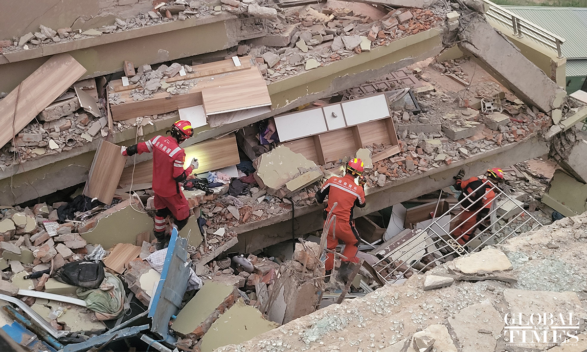Xiamen Blue Sky Rescue Team carried out rescue operations in Mandalay. Photo courtesy of Xiamen Blue Sky Rescue Team figcaption >
