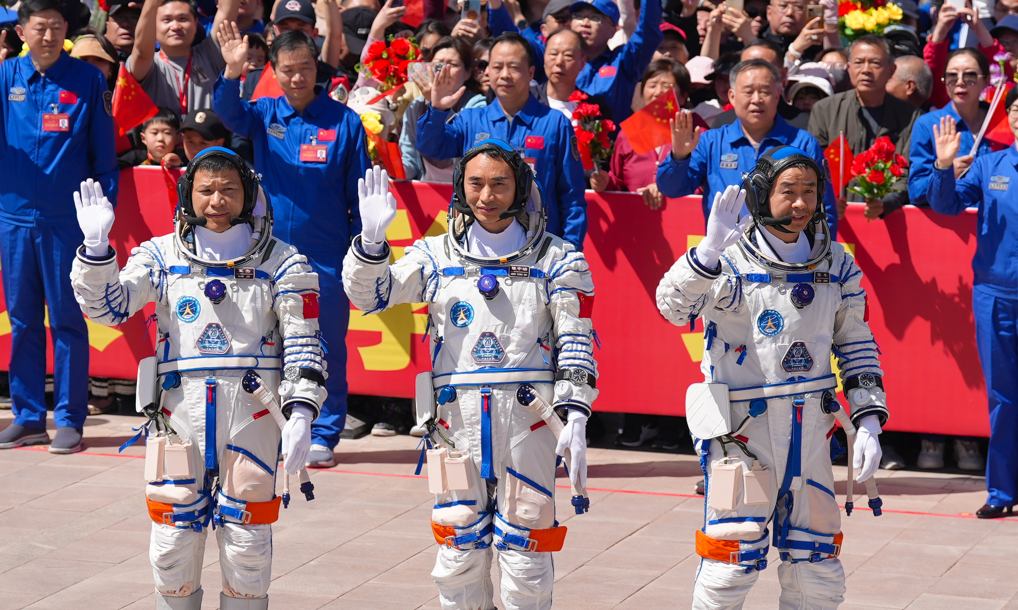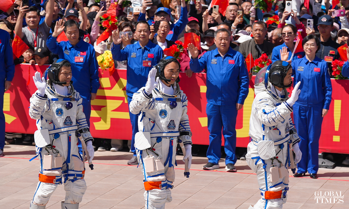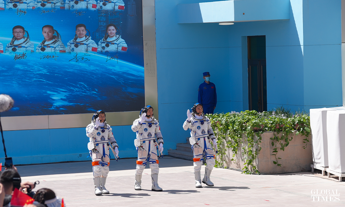 A send-off ceremony for the three Chinese astronauts of the Shenzhou-20 crewed space mission was held on Thursday at the Jiuquan Satellite Launch Center in Northwest China, according to the China Manned Space Agency. Photos: Zhang Wanshi and Pang Yue/GT