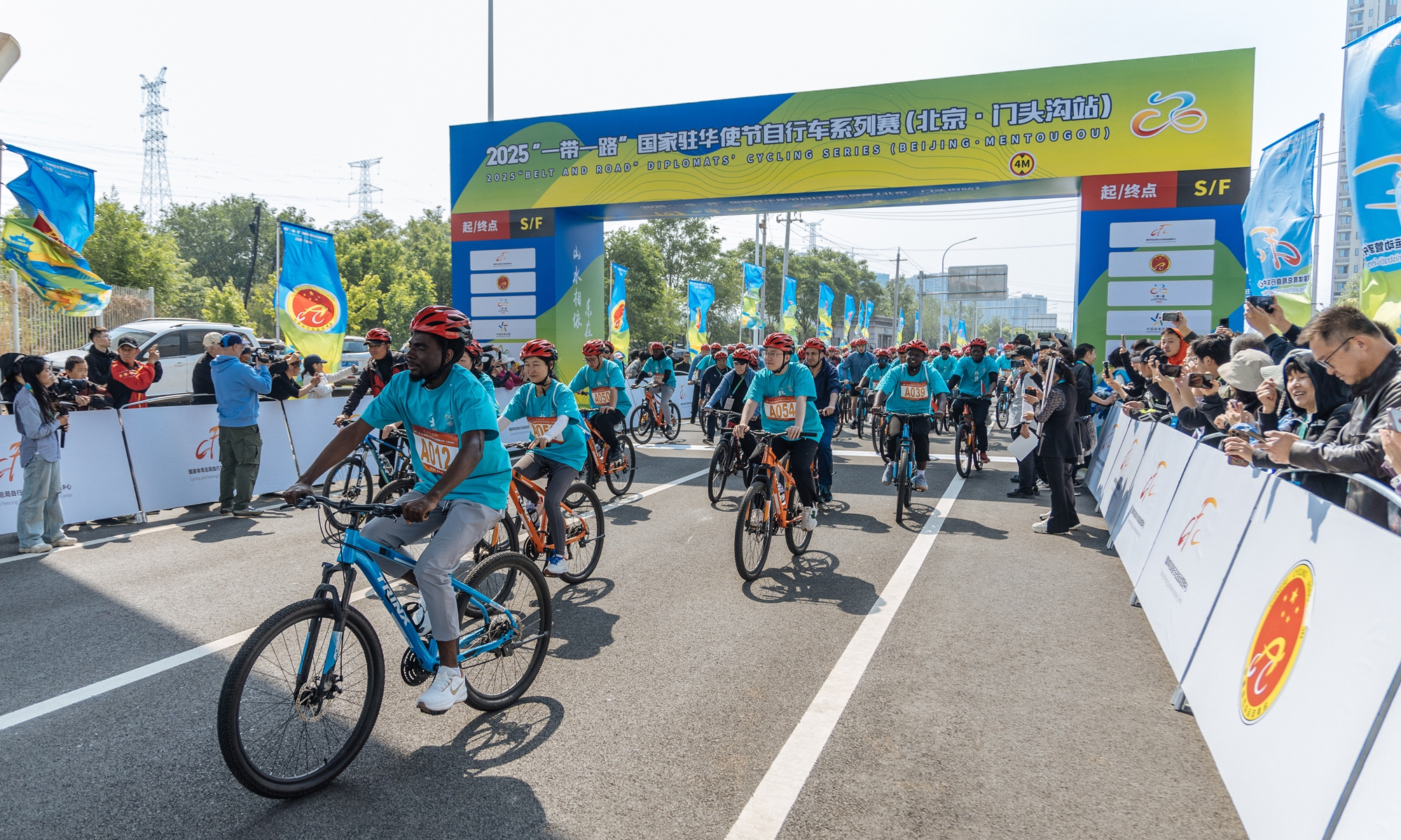 2025 “Belt and Road” diplomats’ cycling series kicked off in Beijing’s Mentougou district on Saturday. Foreign diplomats in China, representatives of enterprises in China, international students, cyclists, and cycling enthusiasts from more than 30 countries participated in the cycling event together. Photos: Li Hao/GT