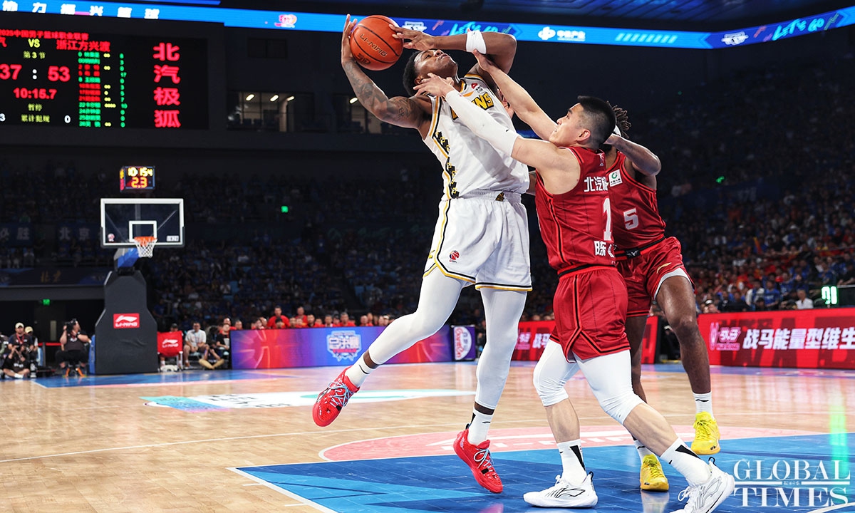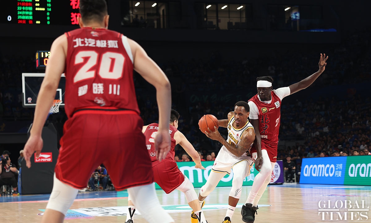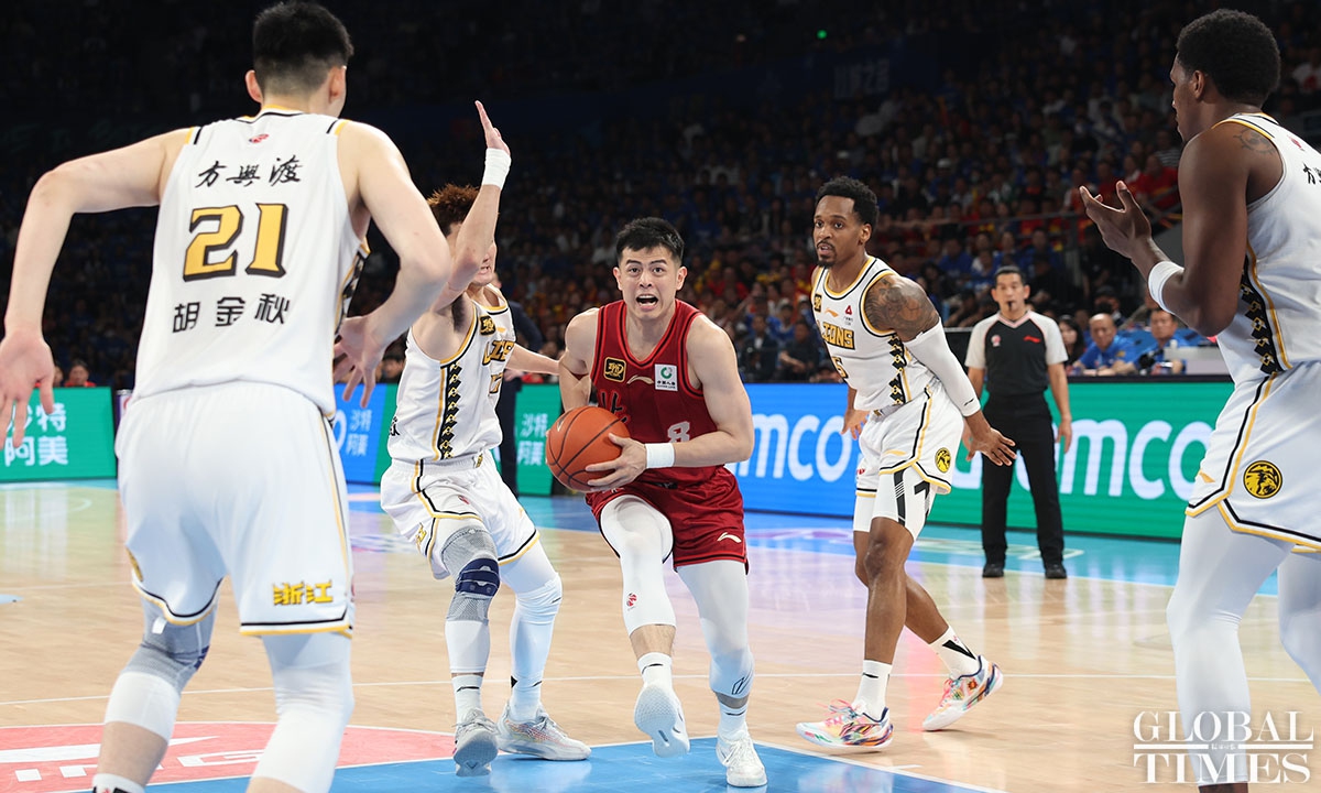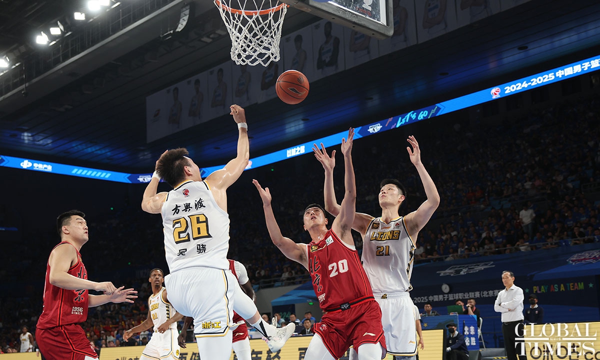 The Zhejiang Lions stunned the hosts, Beijing Ducks, 106-73 on Wednesday to take a 3-1 lead in the best-of-seven CBA Finals. The series will continue on Saturday, with Zhejiang Lions hosting Beijing Ducks in Hangzhou, East China's Zhejiang Province. (Photos: Cui Meng/GT)