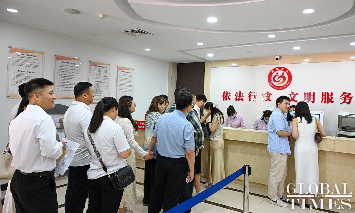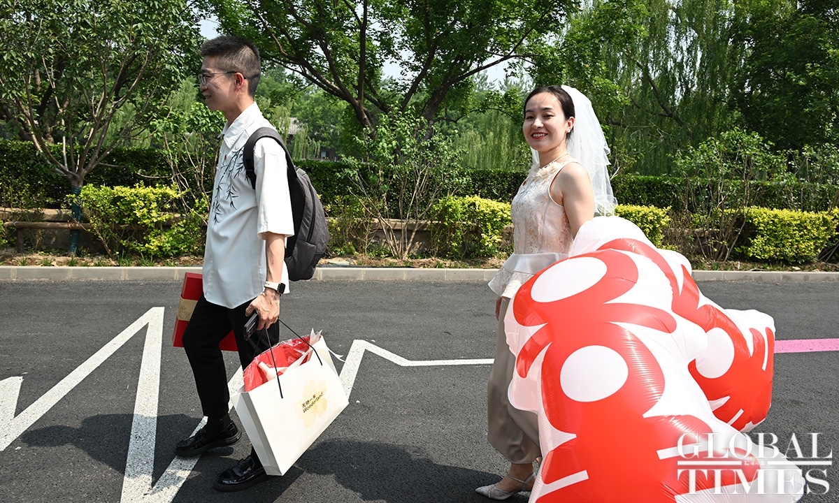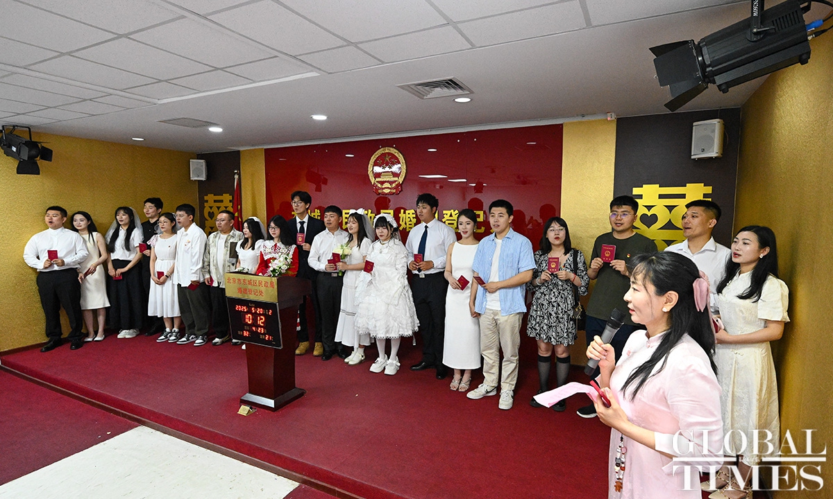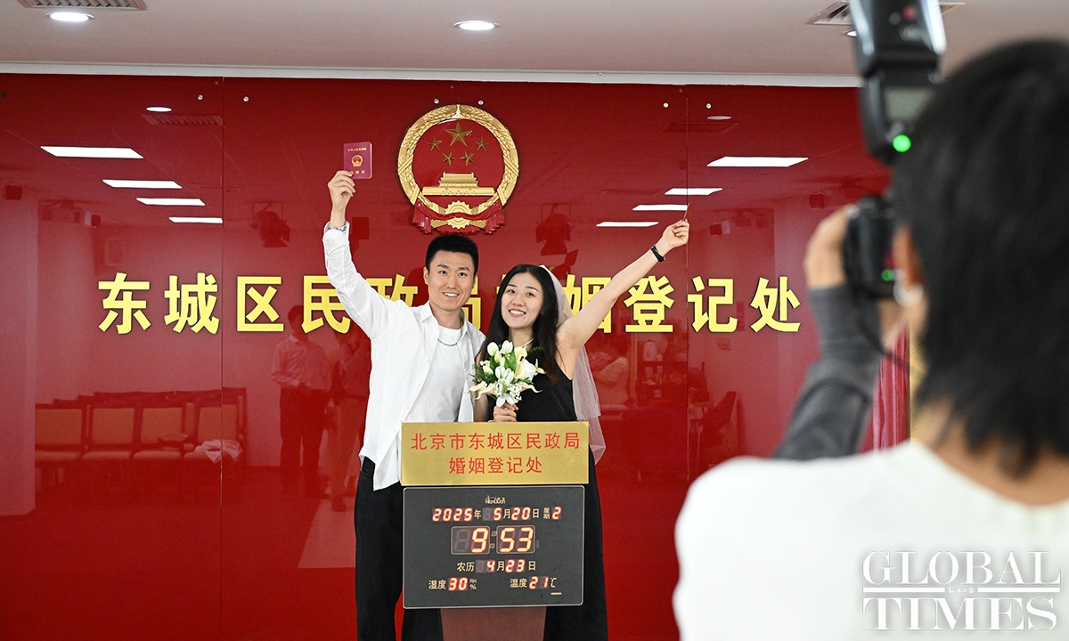 In Chinese, “520” is pronounced similarly to “I love you,” making May 20 a popular date for couples to get married. On Tuesday, couples flocked to the marriage registration office in Beijing’s Dongcheng district. According to official statistics, nearly 400 couples made online appointments for marriage registration in the district on this day.
