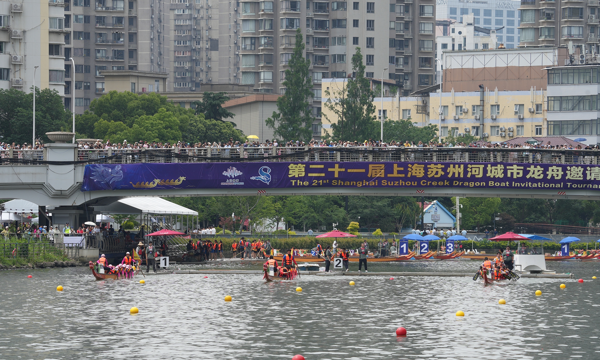 A total of 1,078 participants who formed 58 teams competed at the 21st annual Suzhou Creek City Dragon Boat Invitational Tournament in Shanghai over the weekend, to celebrate the upcoming Dragon Boat Festival that falls on May 31 this year. Among them 89 are foreign participants from various countries including the Netherlands, Belgium, Luxembourg, Malaysia, Australia, Canada and the US, an 82 percent increase from 2024. In addition to the dragon boat races, a series of activities featuring China’s intangible cultural heritage, sports and cuisine were also held at a park at the riverside of Suzhou Creek over the weekend, offering citizens an immersive experience of traditional Chinese culture and customs.