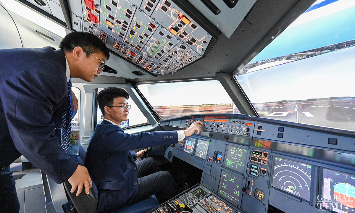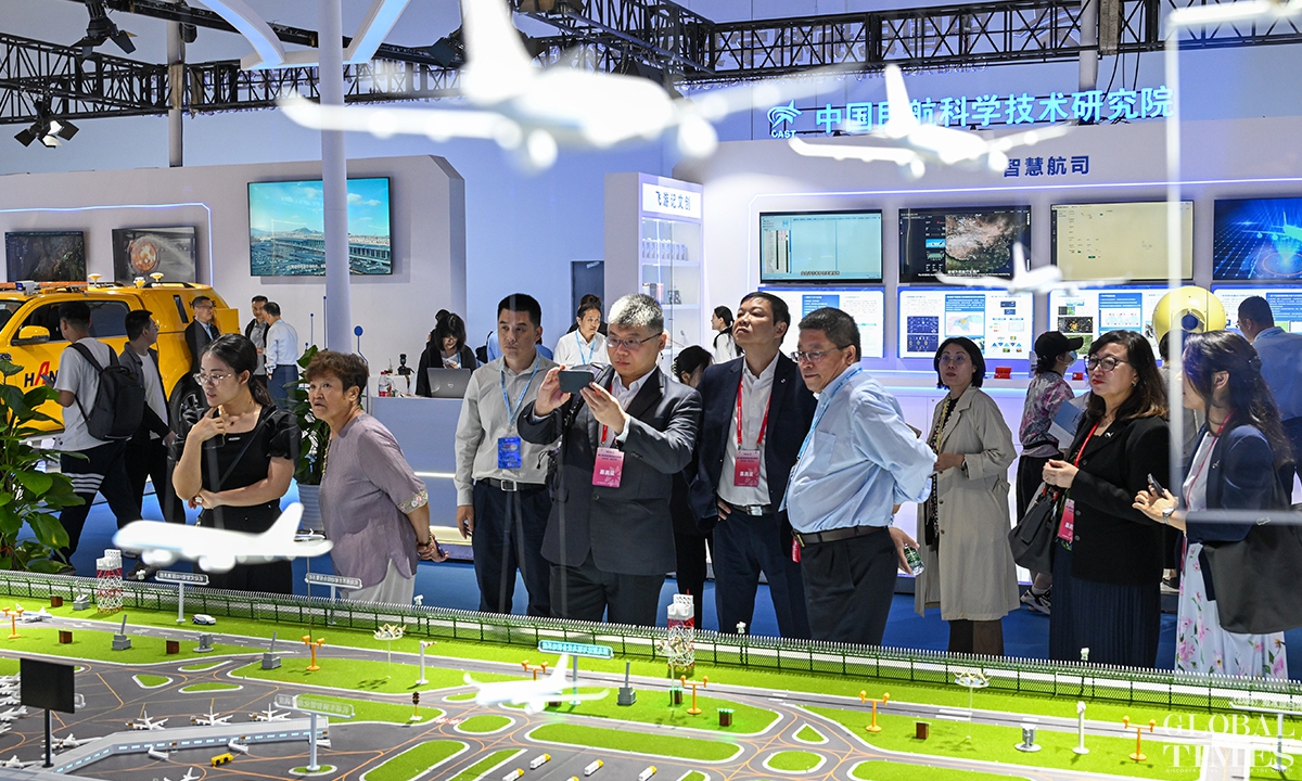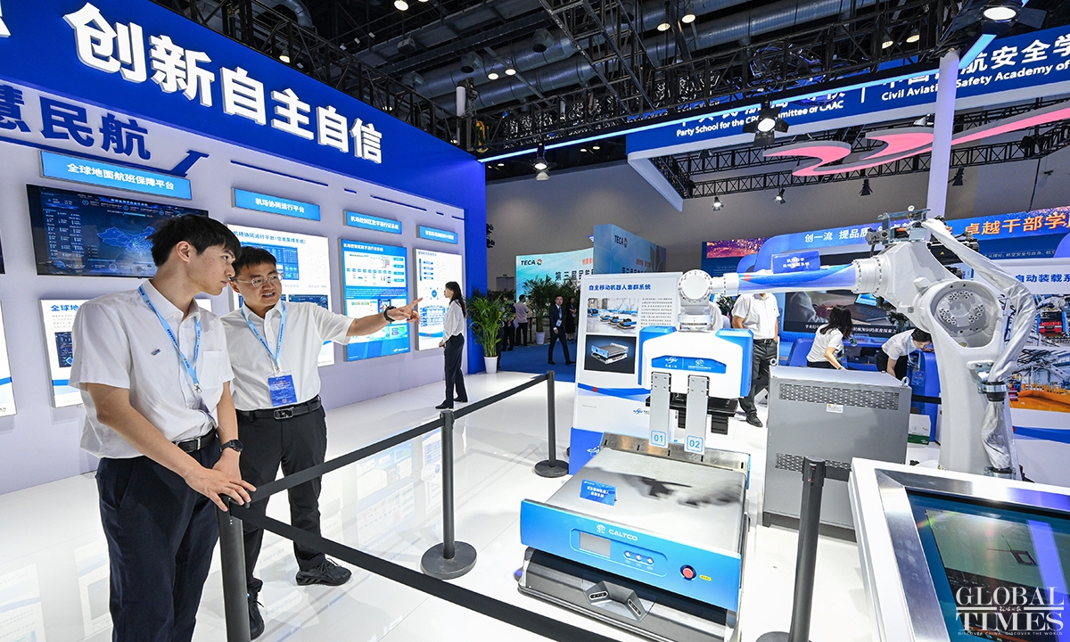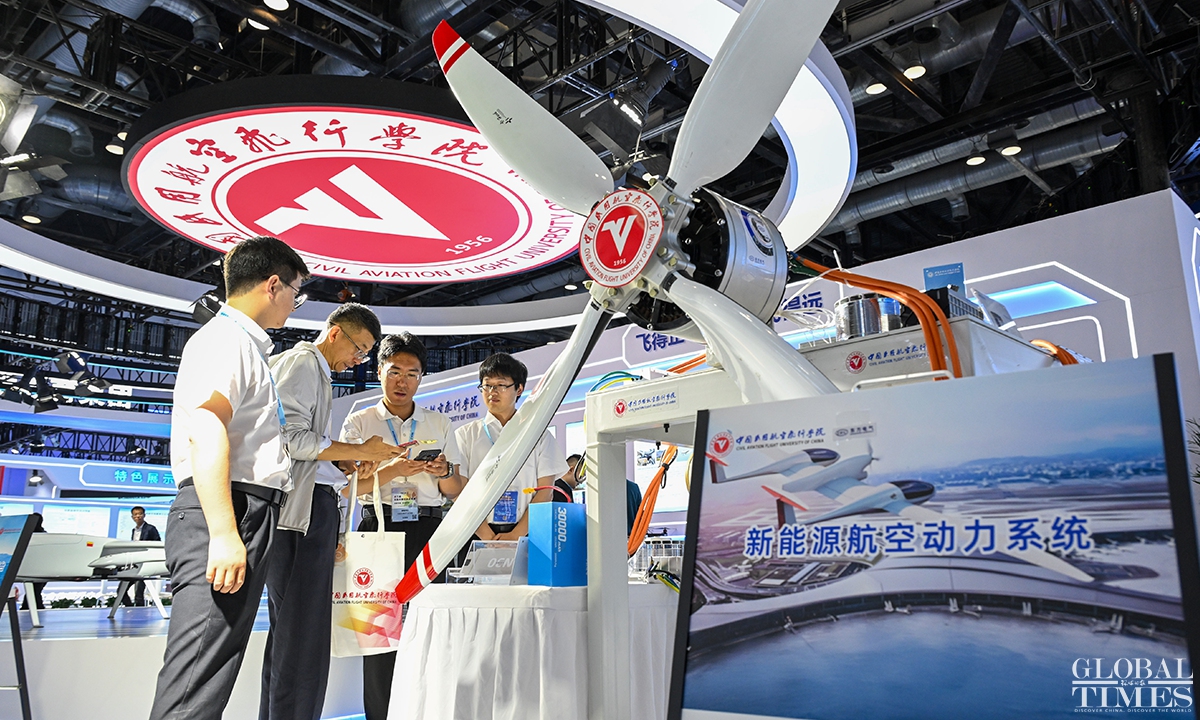 On Monday, the 3rd Exhibition of Technology and Education in Civil Aviation opened at the China National Convention Center in Beijing. The three-day event spans an exhibition area of 22,000 square meters. Over 100 participating organizations are grouped into seven themed exhibition zones, focusing on three areas of education, technology and talent development. The expo showcases China’s independently developed civil aviation technologies as well as achievements in advanced manufacturing, including domestically produced aircraft and drones. (Photos: Chen Tao/GT)