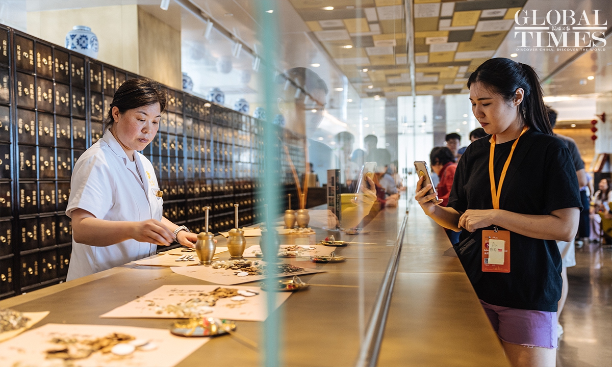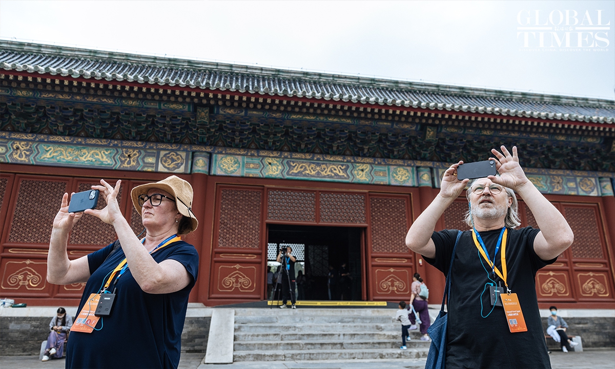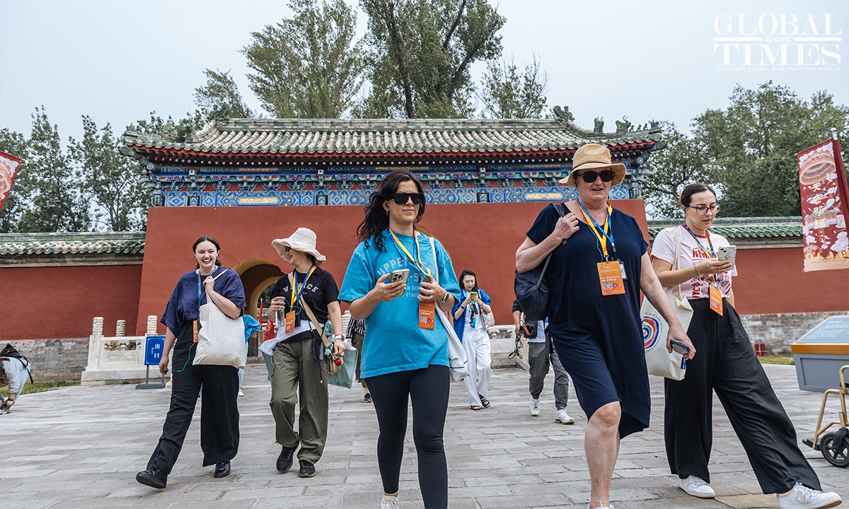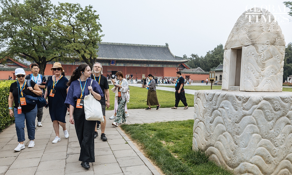 A group of international travel business delegates explored Beijing's iconic landmarks, including the Temple of Agriculture and the renowned Tong Ren Tang store, on Sunday, immersing themselves in the city's rich cultural heritage and local charm. The visit was part of a series of events launched by the Beijing Municipal Bureau of Culture and Tourism ahead of the 2025 Beijing Inbound Tourism Development Conference. (Photos: Li Hao/GT)