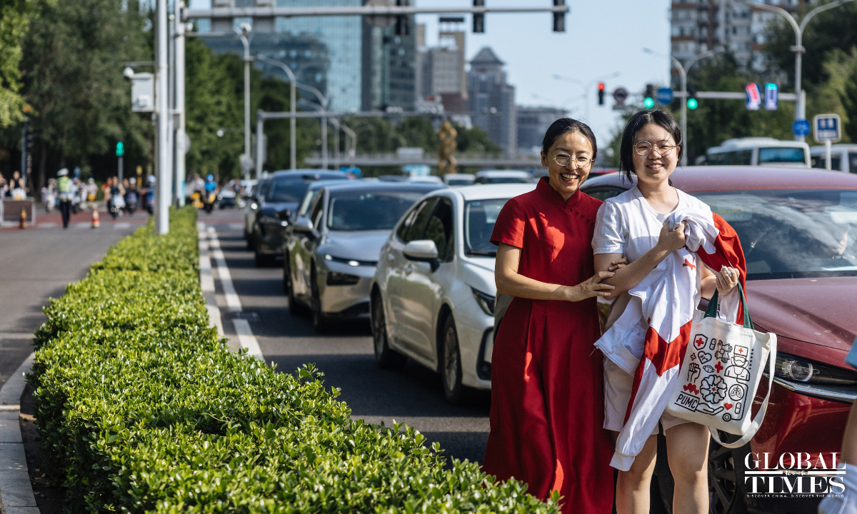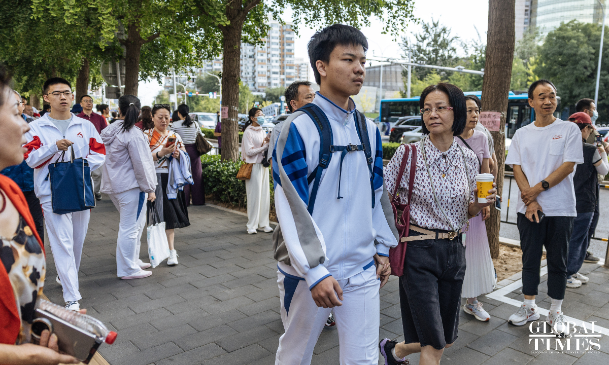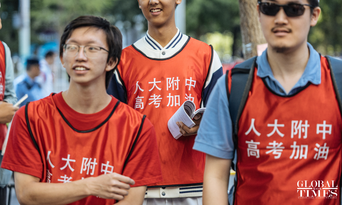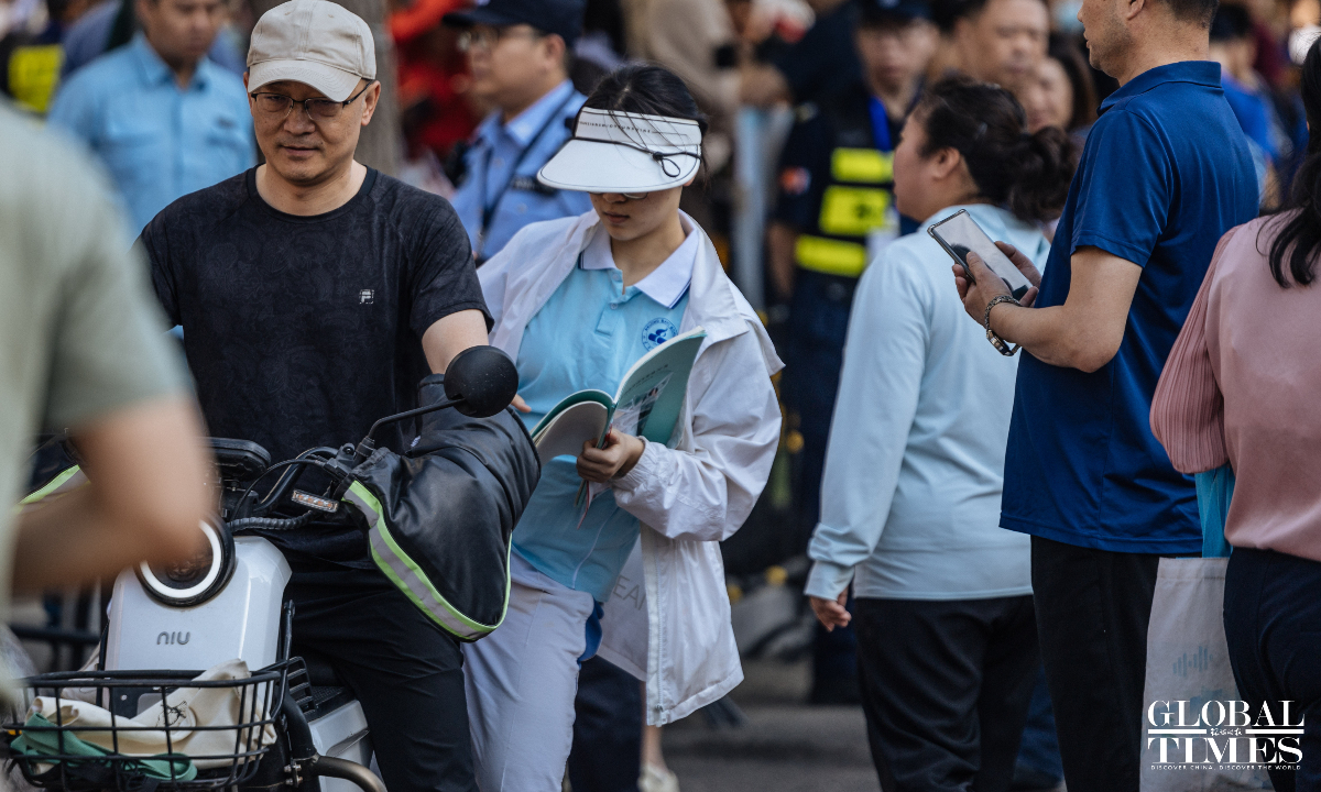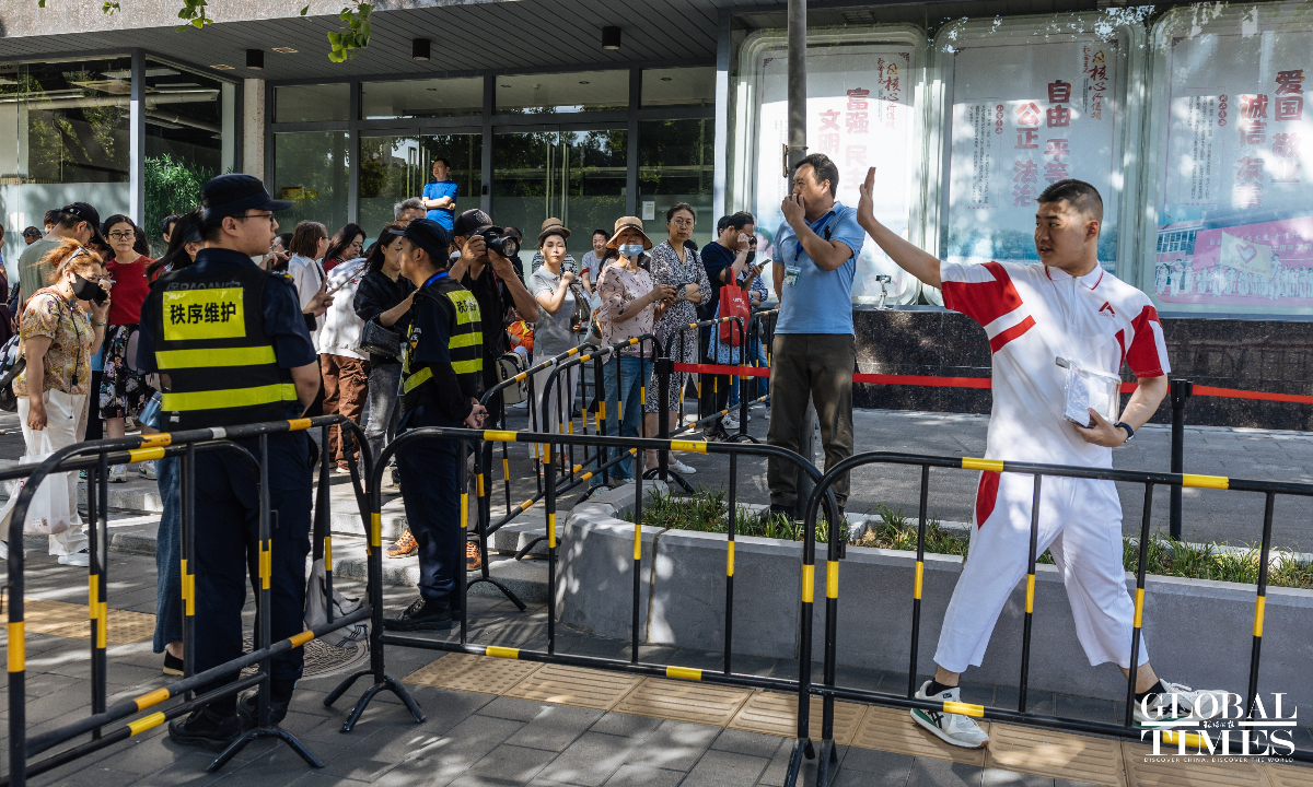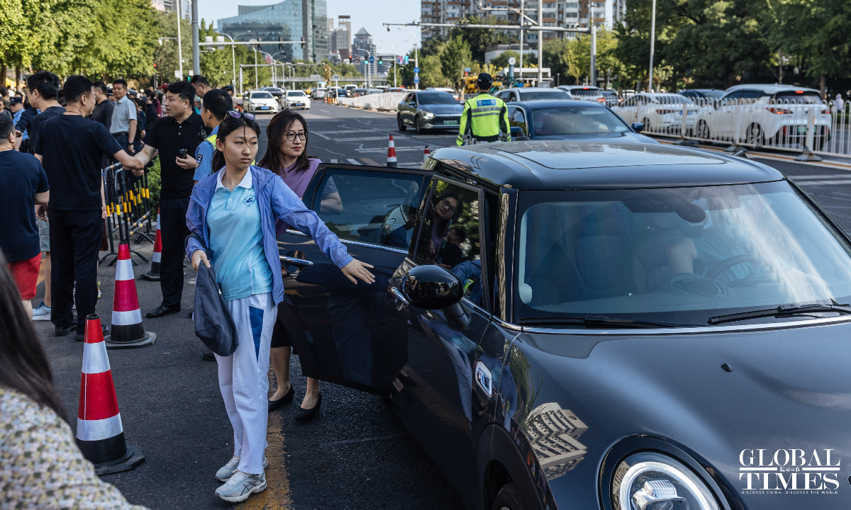 Outside the examination site of the High School Affiliated to Renmin University of China, candidates entered in an orderly manner. A designated candidate passage and an intelligent security gate were set up at the school gate. Traffic police were on-site to guide nearby traffic and ensure the safety and smooth progress of the examination. (Photos: Li Hao/GT)