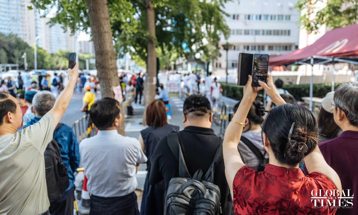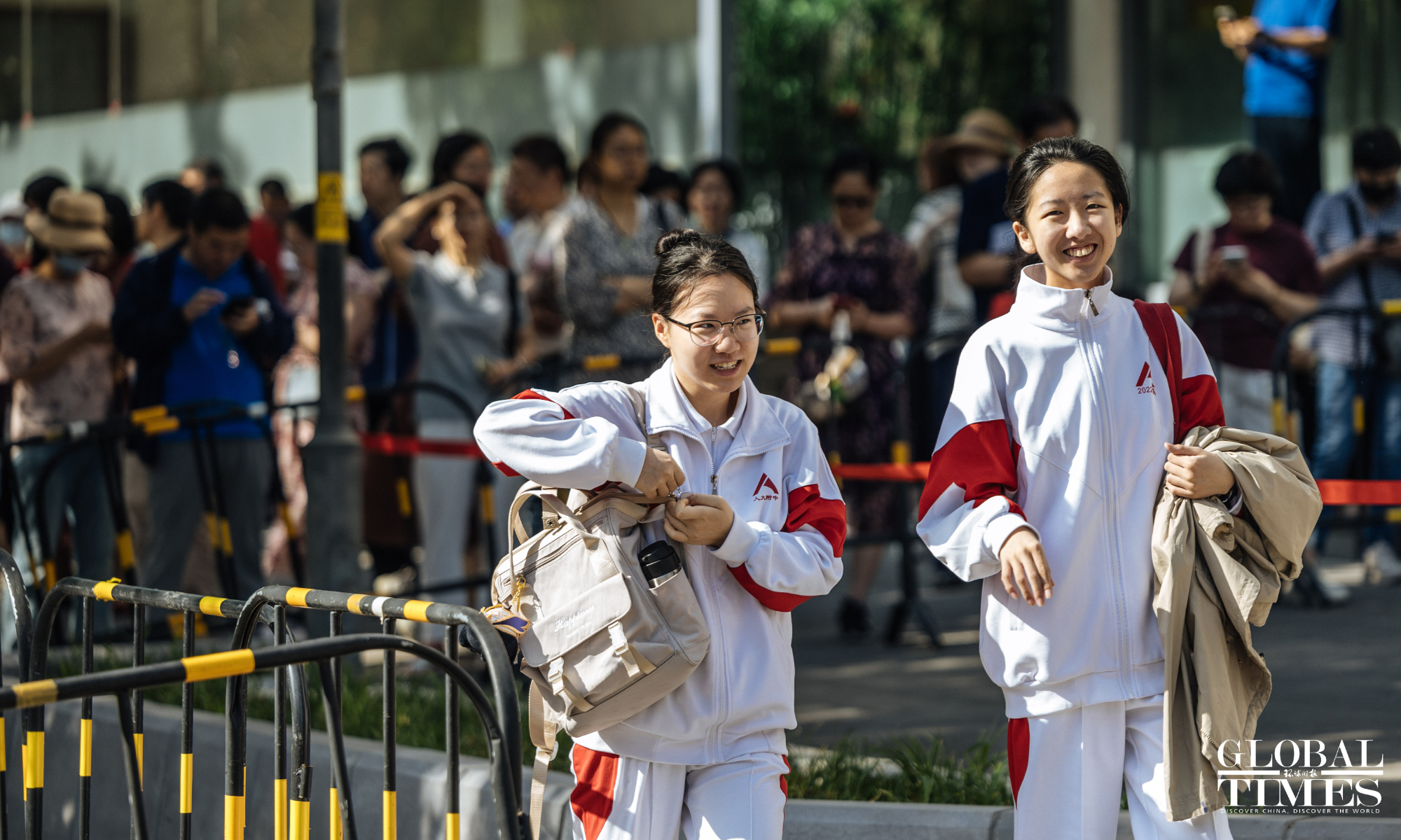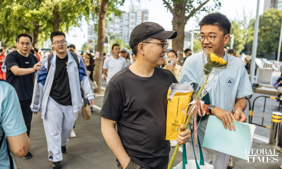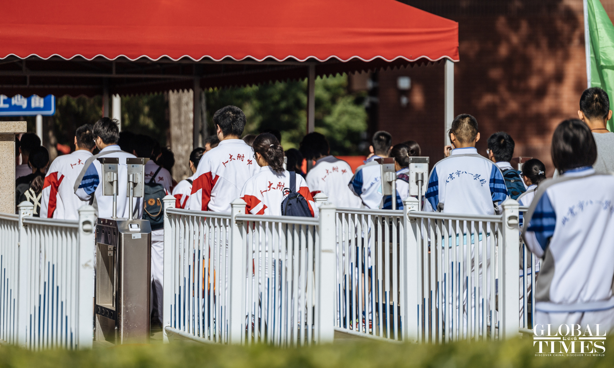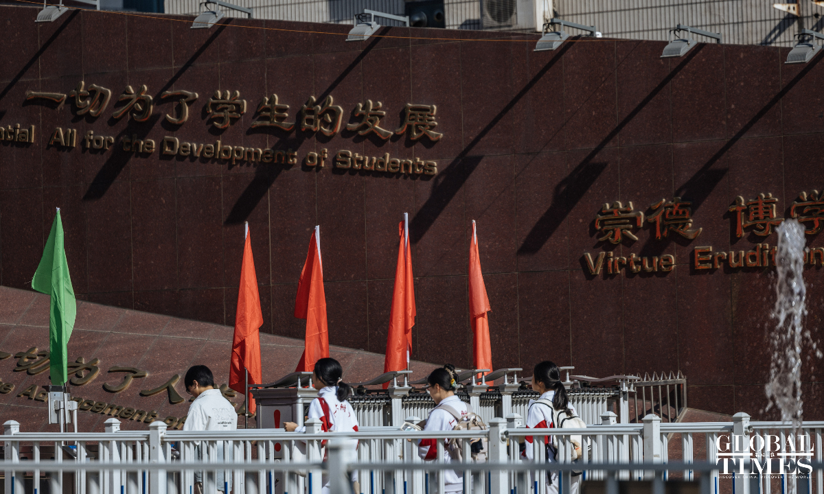 Outside the examination site of the High School Affiliated to Renmin University of China, candidates entered in an orderly manner. A designated candidate passage and an intelligent security gate were set up at the school gate. Traffic police were on-site to guide nearby traffic and ensure the safety and smooth progress of the examination. (Photos: Li Hao/GT)