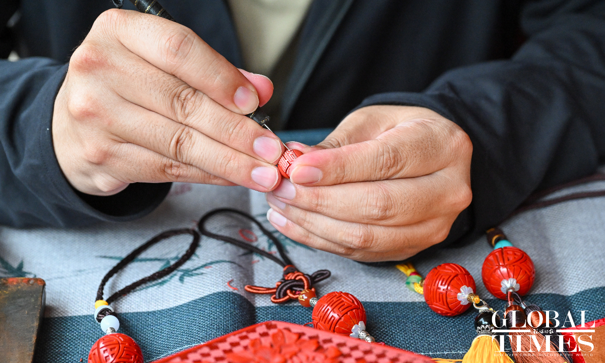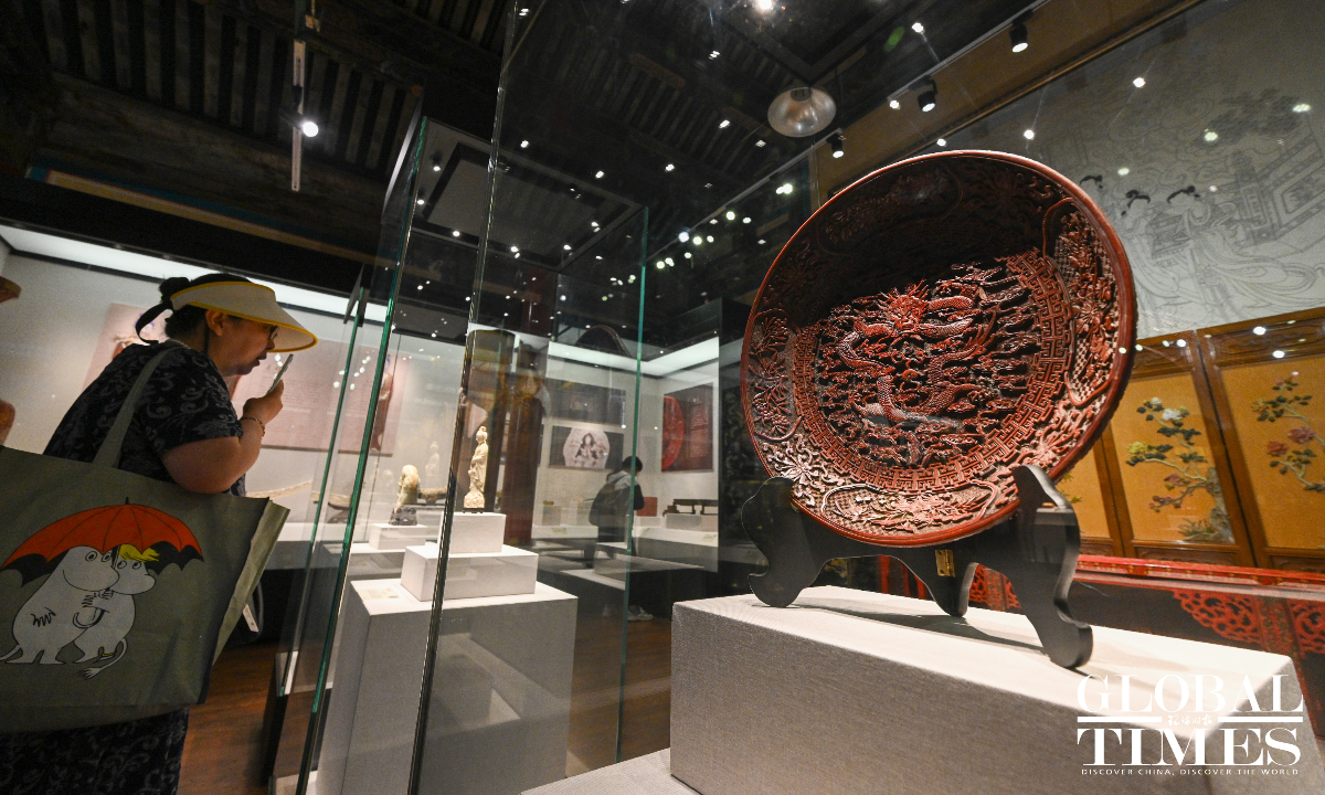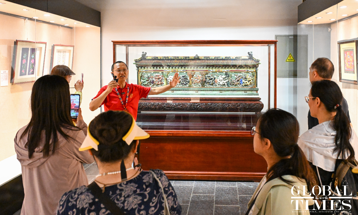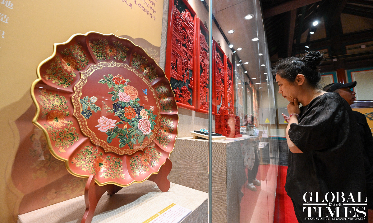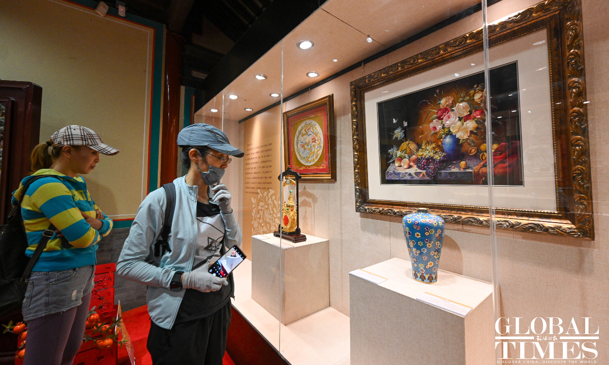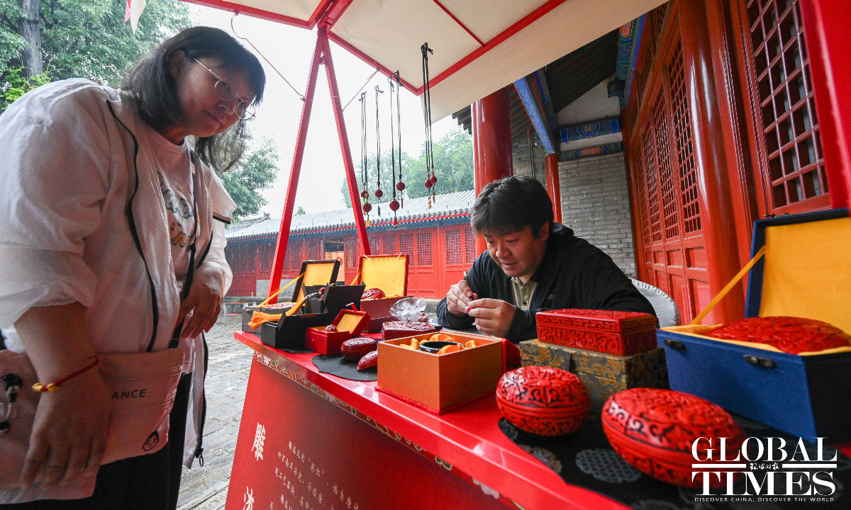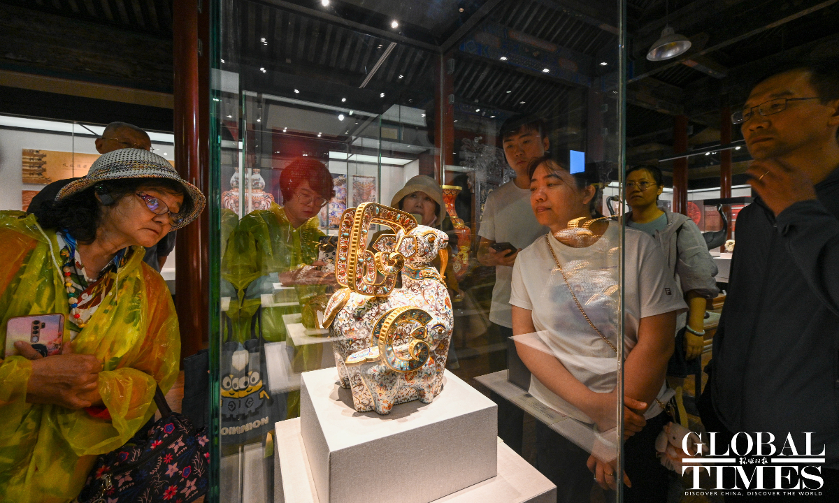 June 14 marks China’s 2025 Cultural and Natural Heritage Day. To celebrate the occasion, the Beijing Eight Imperial Handicrafts Museum in Shijingshan District hosted a special event featuring eight categories of intangible cultural heritage: inlaid gold lacquer, inlaid silk, cloisonné, ivory carving, jade carving, lacquer carving, Beijing embroidery, and palace carpets. Visitors were invited to interact with master artisans and experience these traditional crafts firsthand. (Photos: Chen Tao/GT)