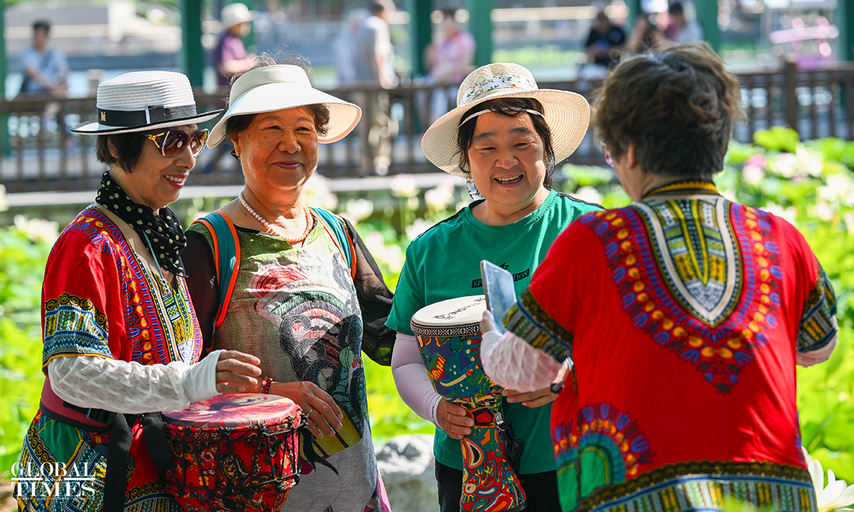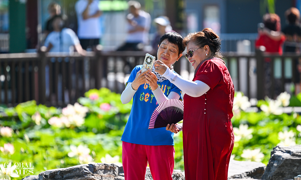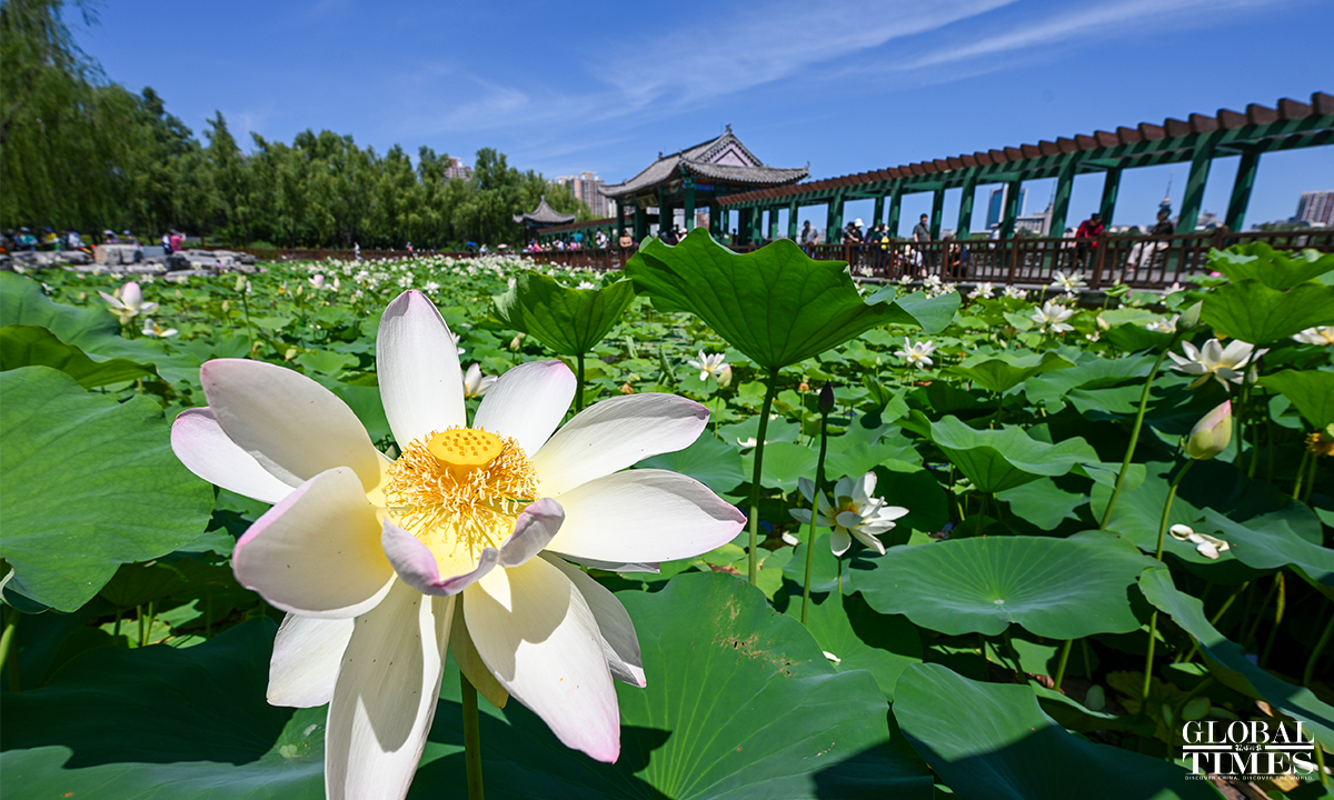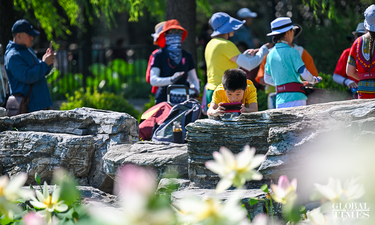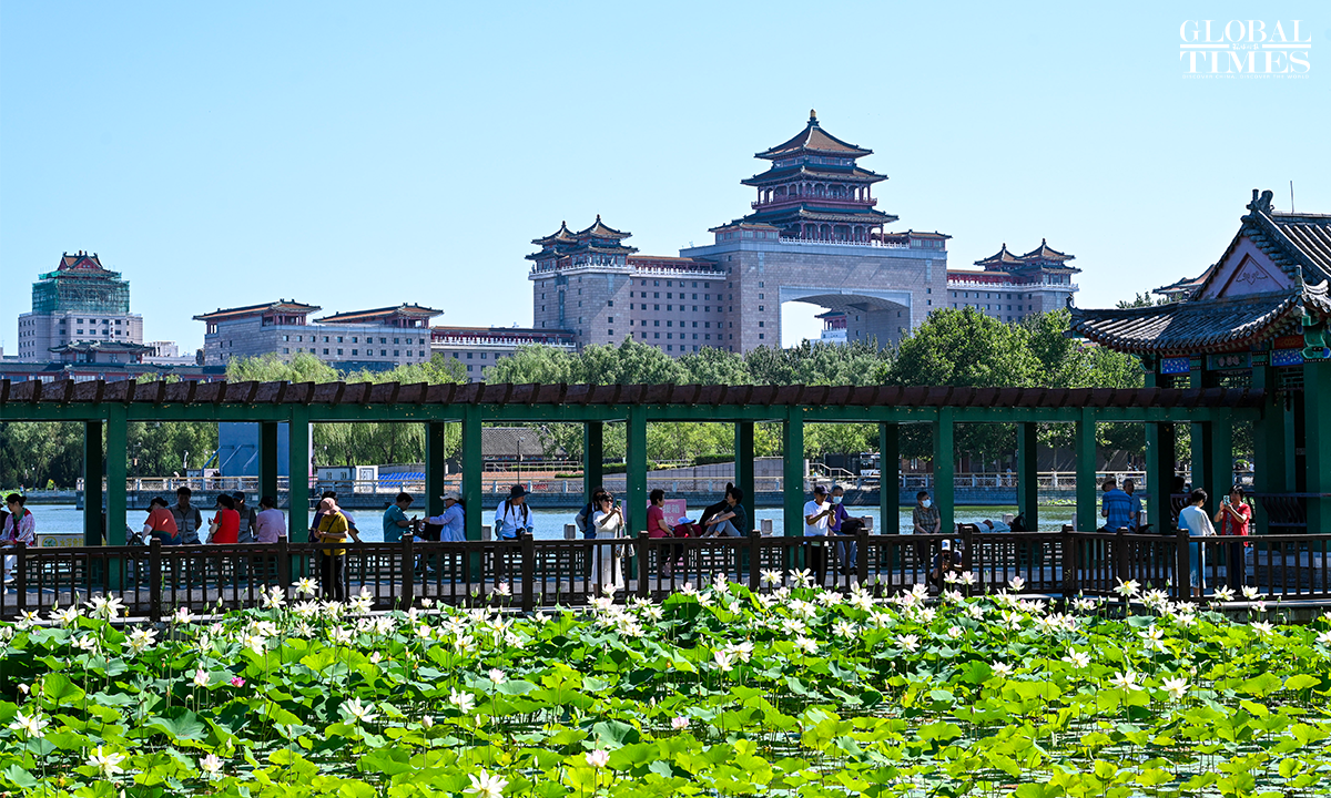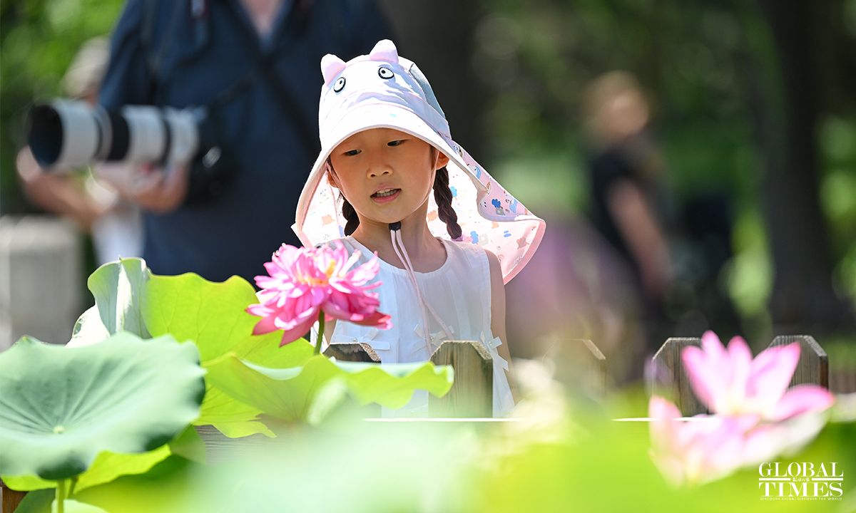 As temperatures rise, lotus flowers have begun to bloom across major parks in Beijing, including Lianhuachi Park, Zizhuyuan Park, and the Old Summer Palace (Yuanmingyuan). On June 20, the blossoming lotuses attracted large number of residents and tourists who came to admire the scenery, take photos, and enjoy the beauty of summer. Photos: Chen Tao/GT