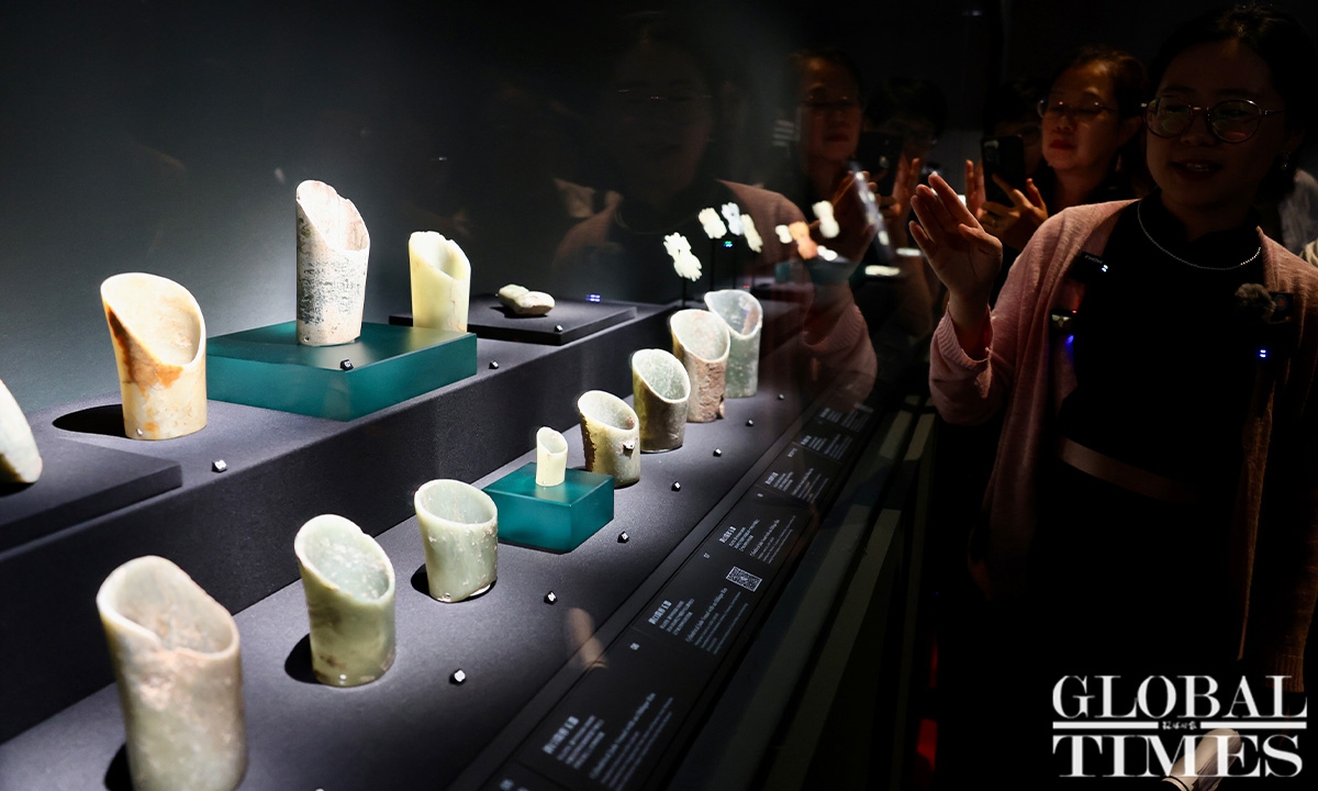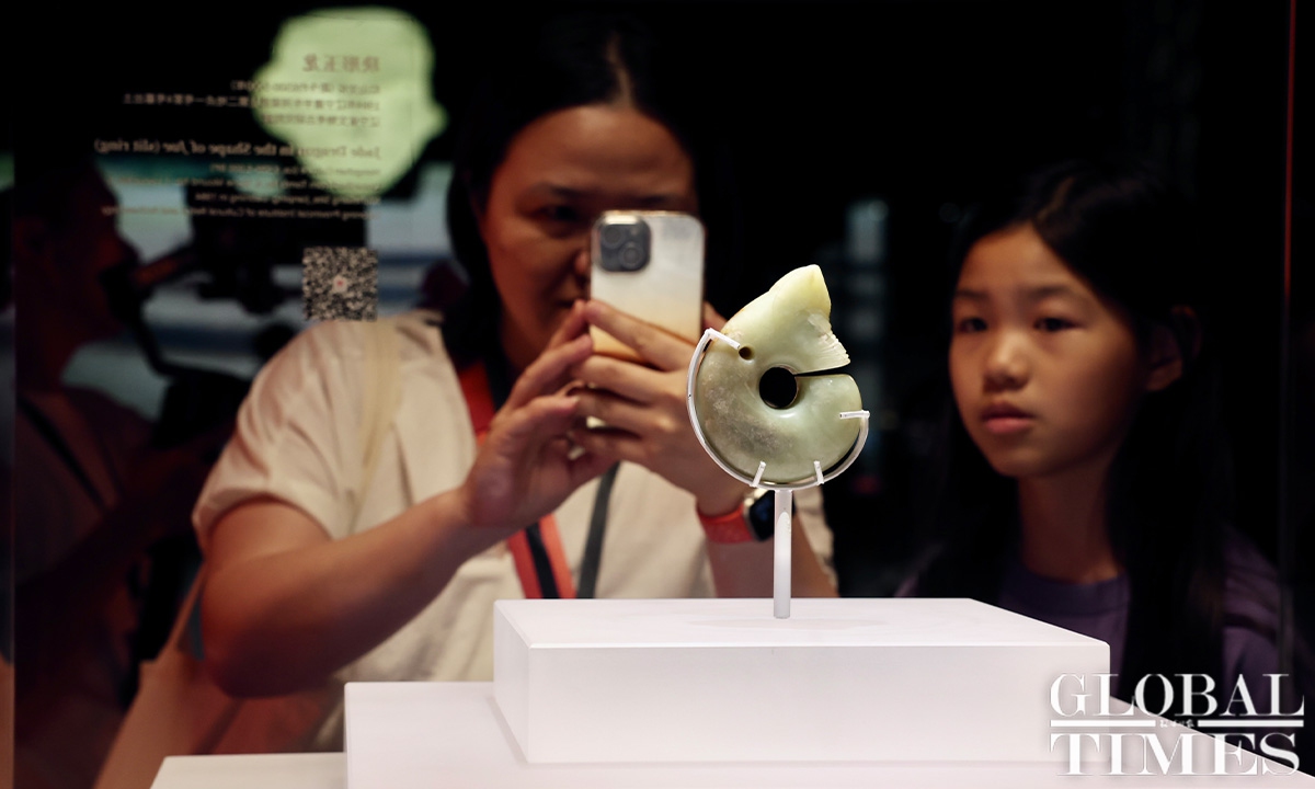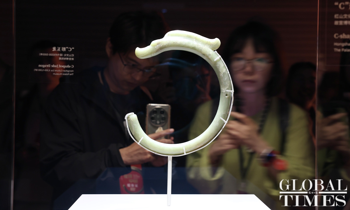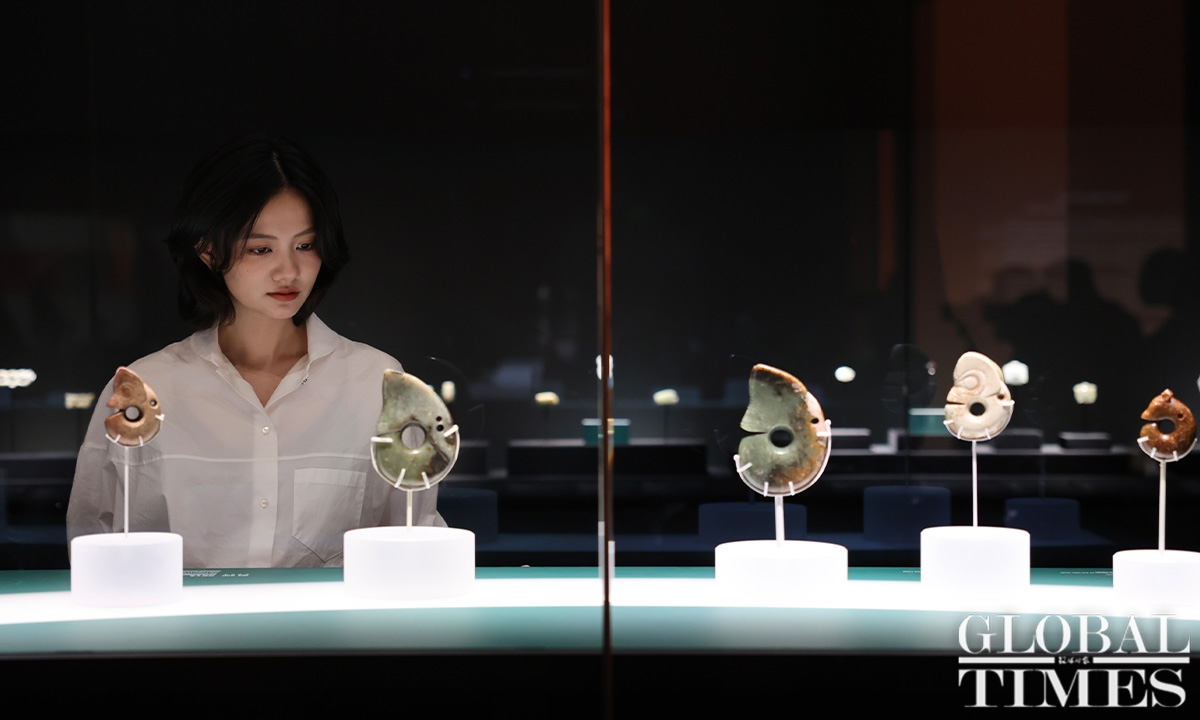 The exhibition, titled “Legends of Dragon: The Ancient Civilization of Hongshan Culture,” will take place at the Shanghai Museum from June 26 to October 8. Bringing together a century’s worth of archaeological achievements and the latest discoveries related to Hongshan Culture, the exhibition showcases over 300 themed artifacts in collaboration with twenty museums and archaeological institutions across the country. Dating back approximately 6,500 to 5,000 years, Hongshan Culture represents a significant Neolithic archaeological culture in northern China. (Photos: Chen Xia/GT)