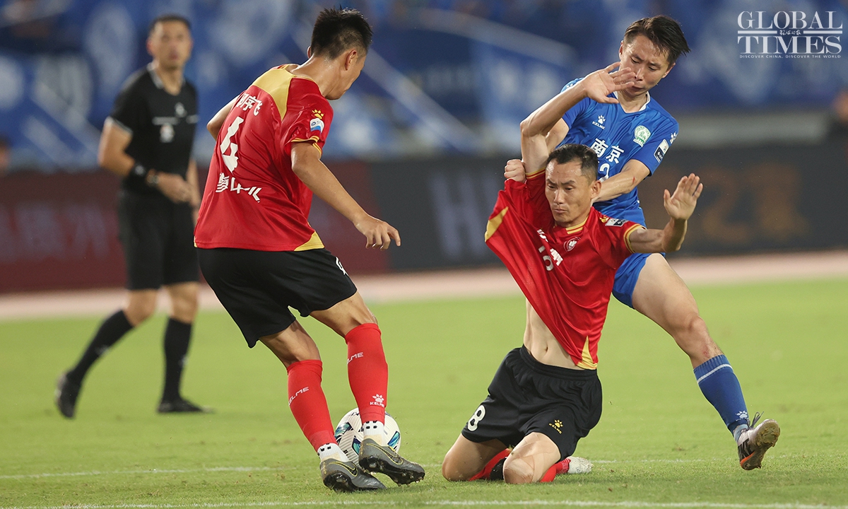 The game was held under sauna conditions with the temperature hit 39 C, as organizers brought massive block of ice to cool down the stadium. (Photos: Cui Meng/GT)