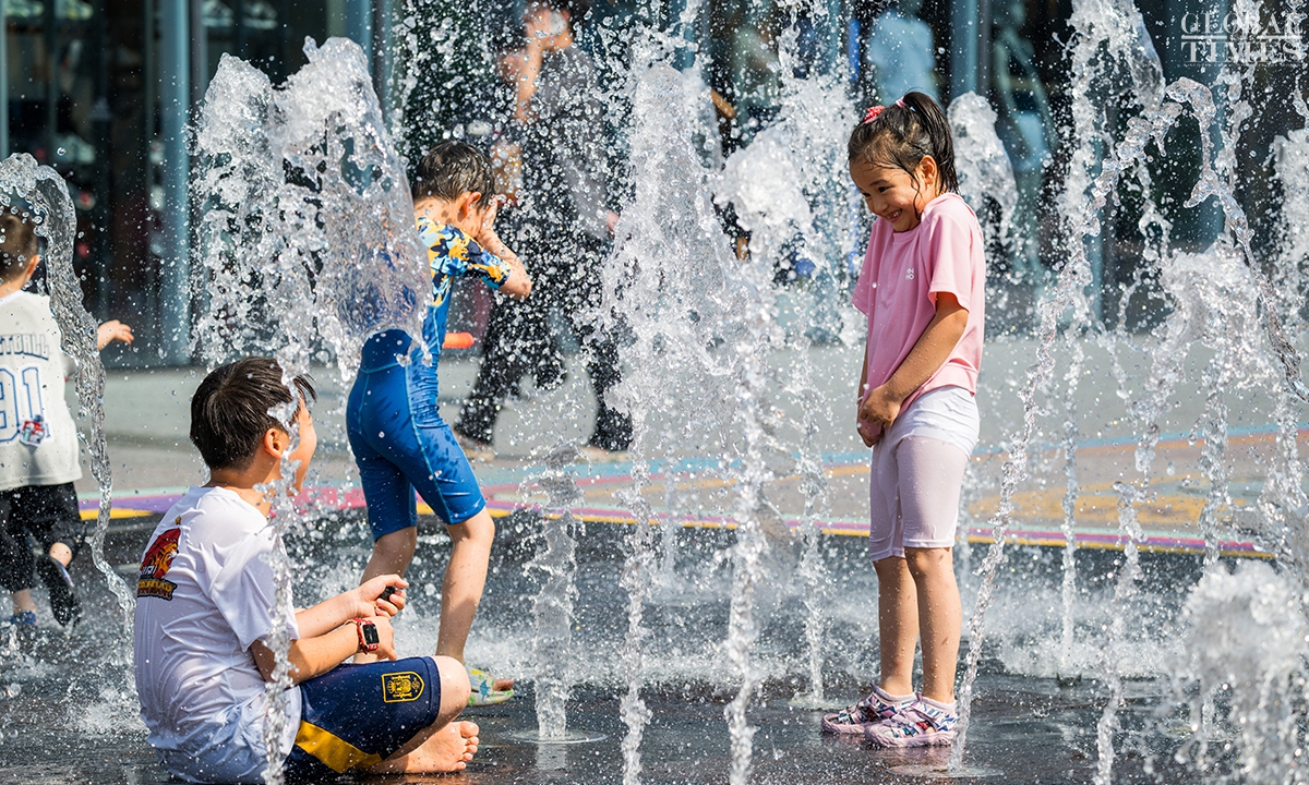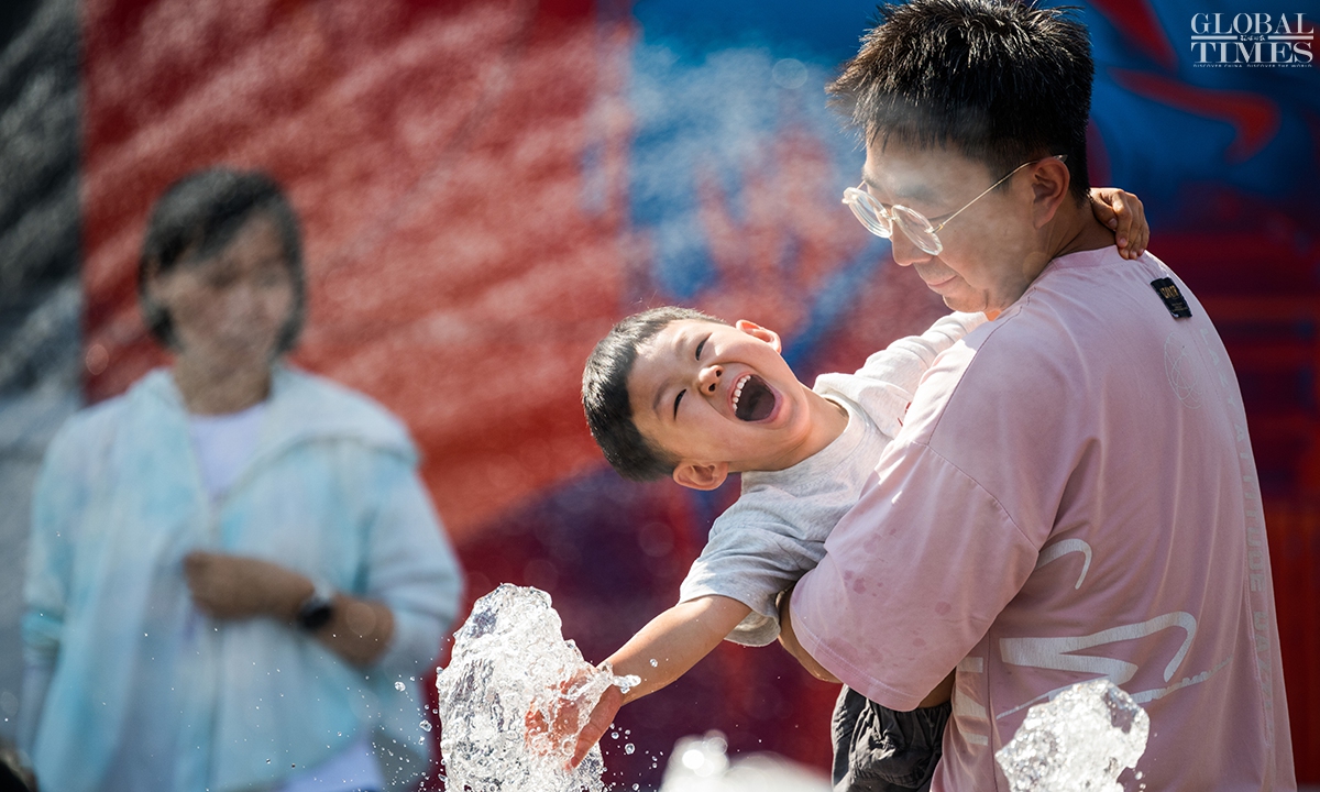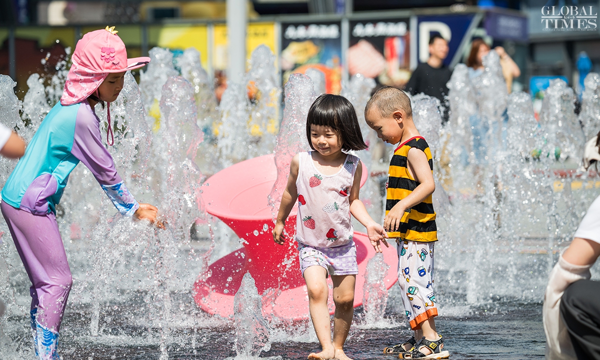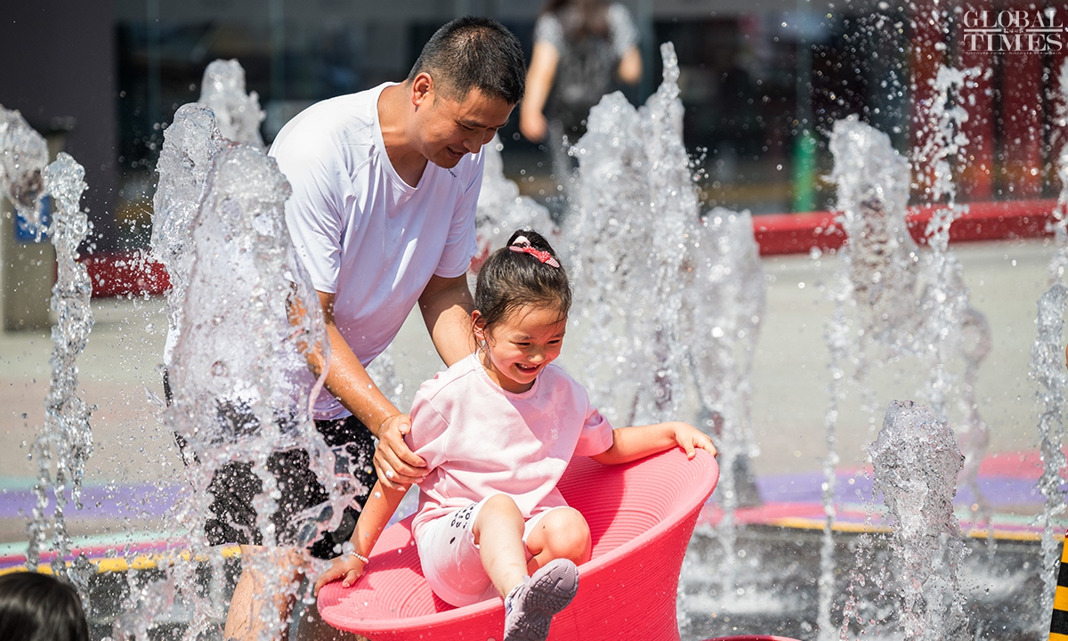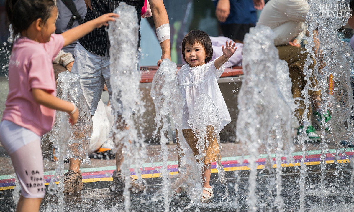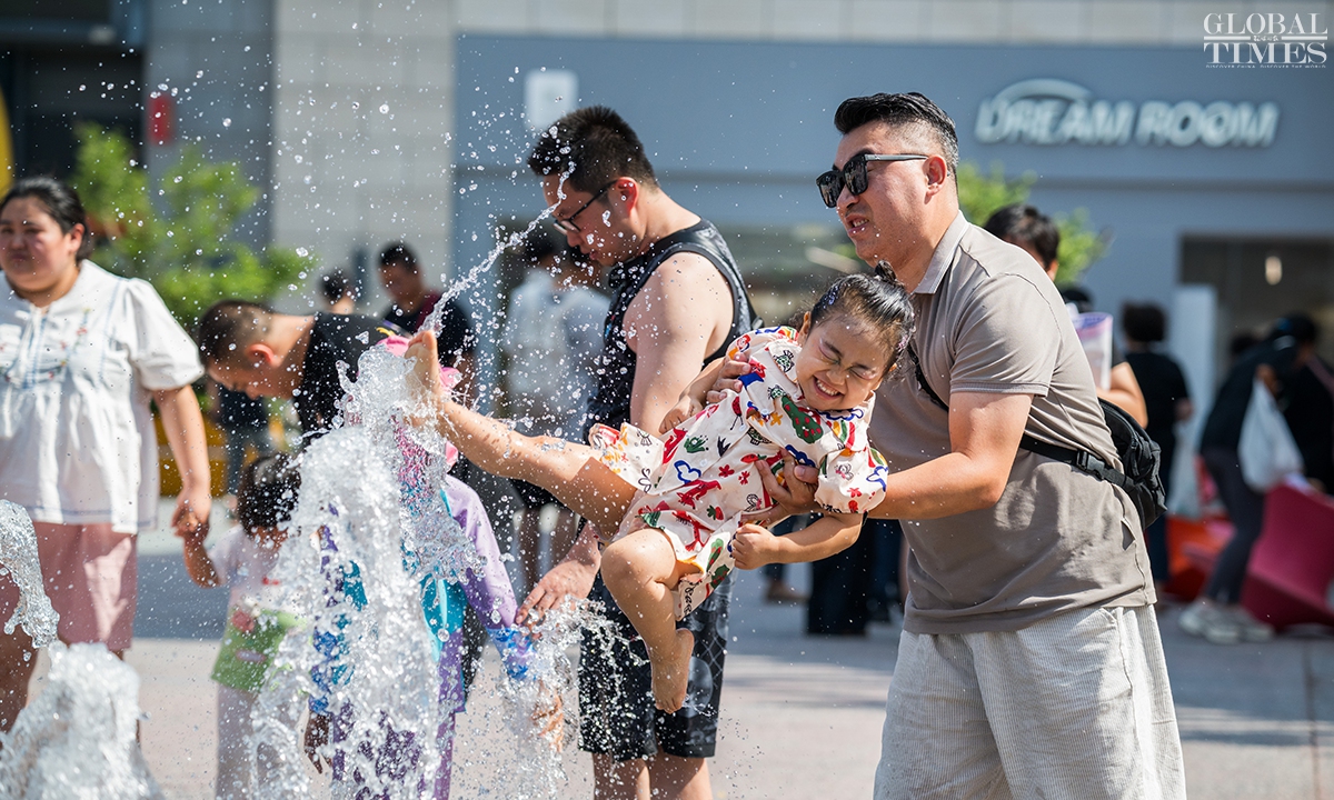 On July 7, the day of Xiaoshu, or Lesser Heat in the Chinese solar calendar this year, Beijing sweltered under persistent high temperatures and rising humidity. Many residents and tourists flocked to riversides, public fountains and shopping malls in search of cool escapes from the muggy weather. (Photos: Chen Tao/GT)
