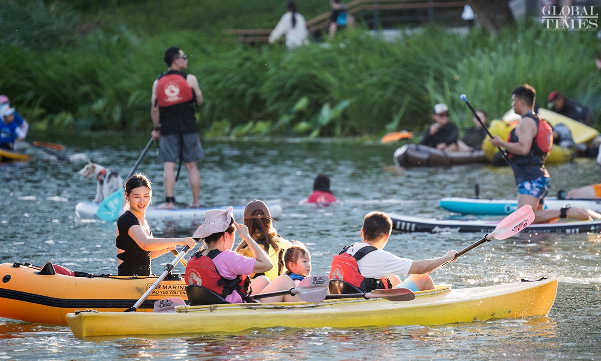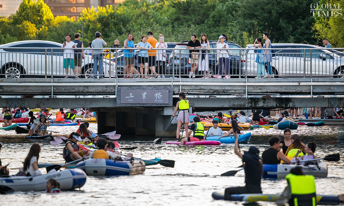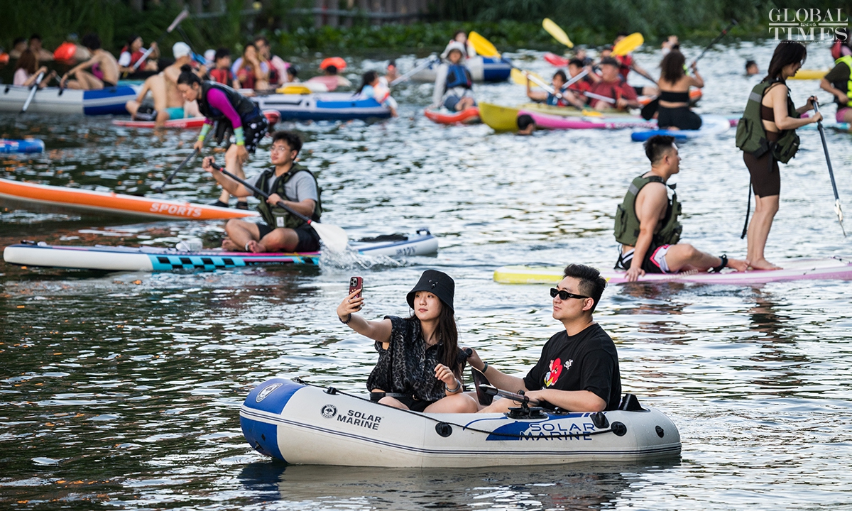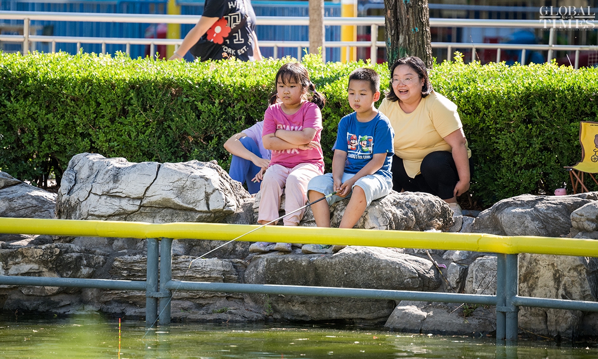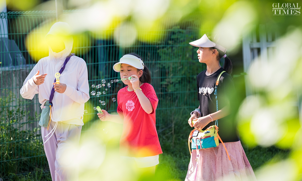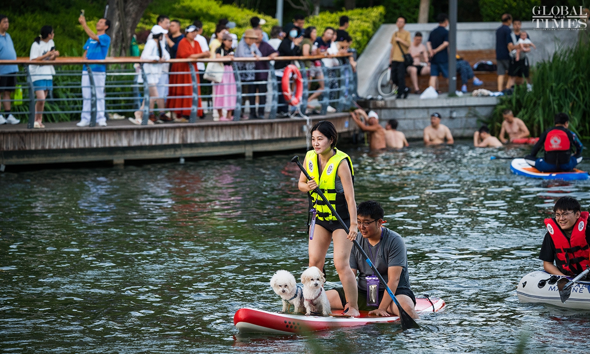On July 7, the day of Xiaoshu, or Lesser Heat in the Chinese solar calendar this year, Beijing sweltered under persistent high temperatures and rising humidity. Many residents and tourists flocked to riversides, public fountains and shopping malls in search of cool escapes from the muggy weather. (Photos: Chen Tao/GT)