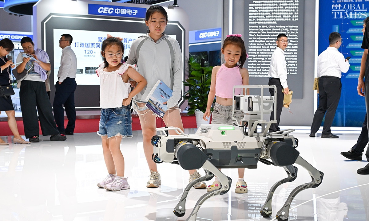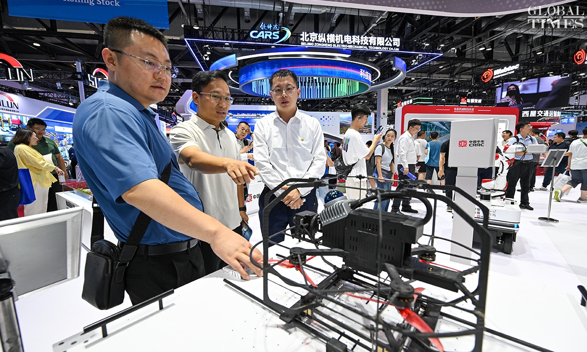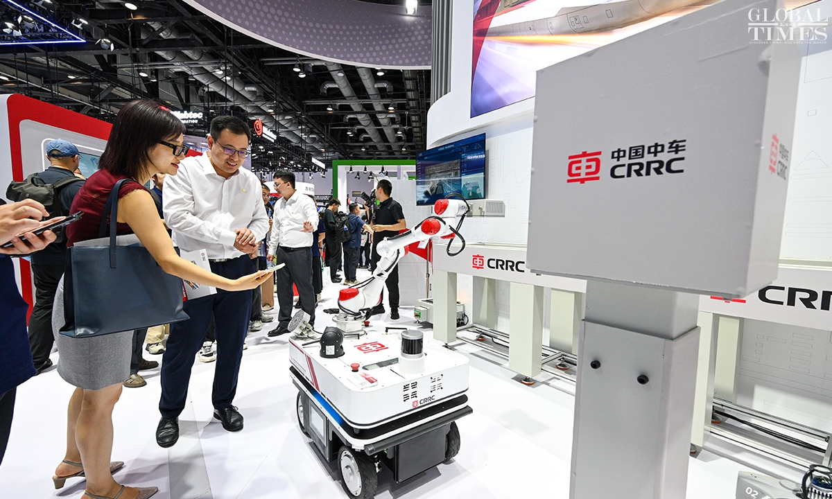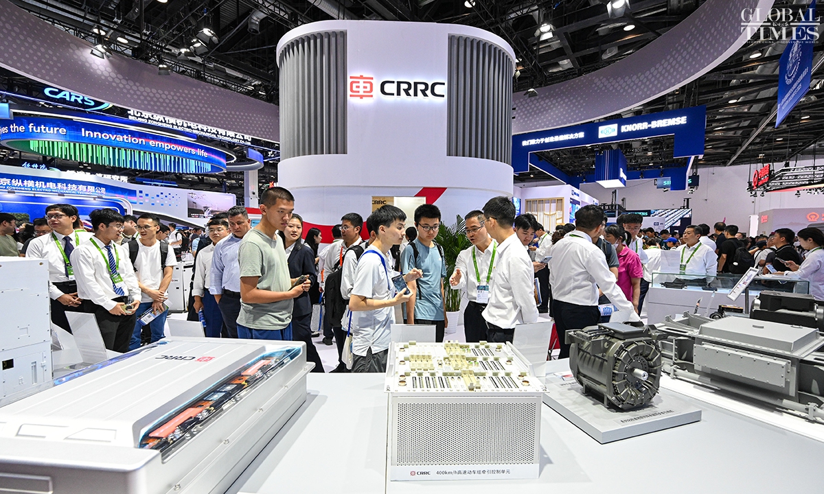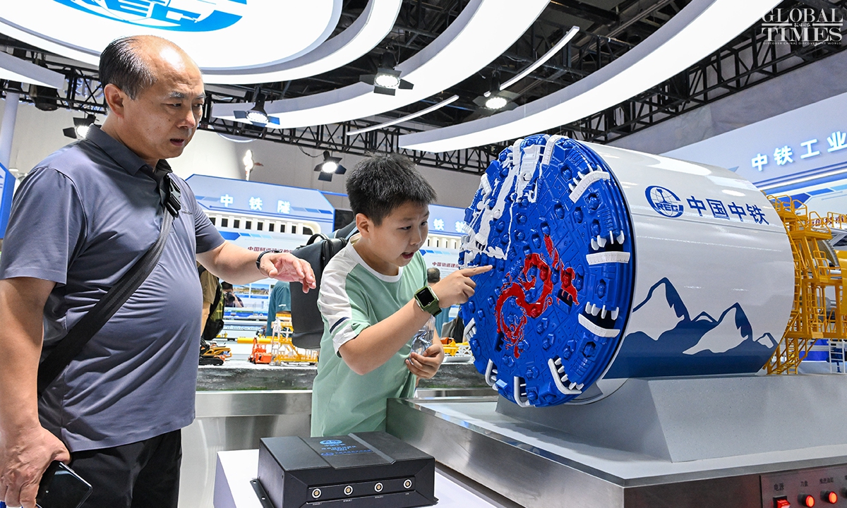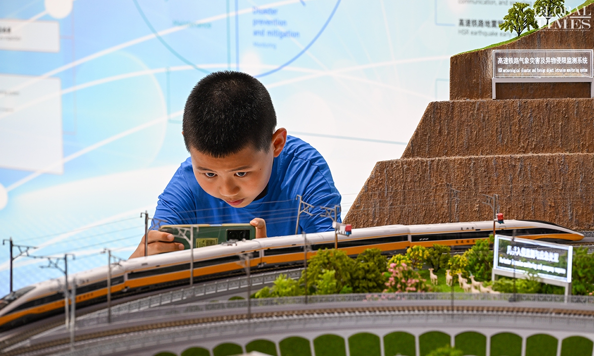 MODERN RAILWAYS 2025, an expo showcasing the latest railway technology and equipment, kicked off in Beijing on Tuesday. The exhibition is divided into two zones — indoor and outdoor — and covers a total area of 40,000 square meters. The indoor exhibition zone at the Beijing National Convention Center encompasses 16 themed exhibition sections, exhibiting latest technologies and products in all railway specialties. The outdoor exhibition zone, situated at the National Railway Testing Center, features a real vehicle display line stretching 5,000 meters. It mainly showcases real vehicles such as EMUs (intelligent EMUs), locomotives, high-speed comprehensive inspection trains and large-scale track maintenance machinery. (Photos: Chen Tao/GT)
