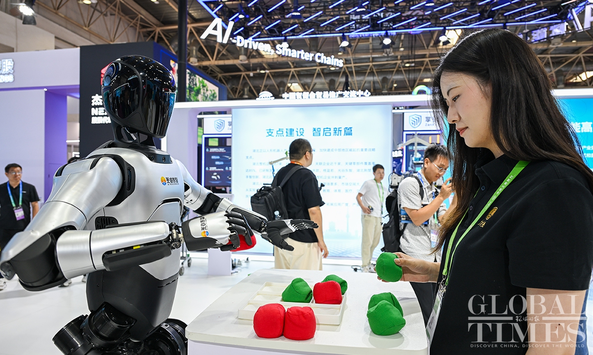 Organized around three core layers, foundational technological breakthroughs, industrial incubation and real-world applications, the exhibition connects innovation, industry and implementation. It presents a full-spectrum view of the digital economy’s key pillars, helping accelerate the deep integration and transformation of digital and traditional economies. (Photos: Chen Tao/GT)