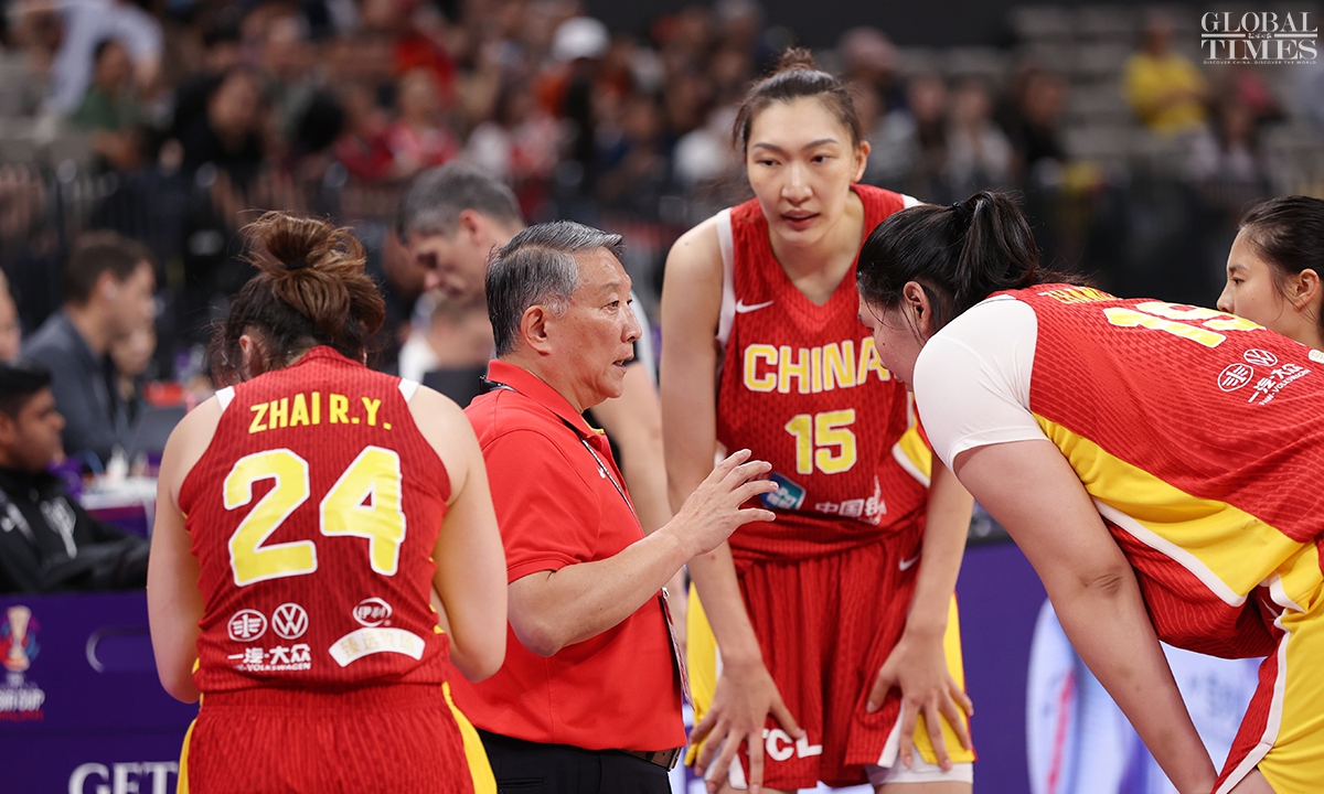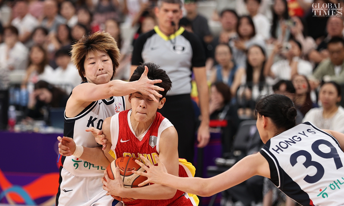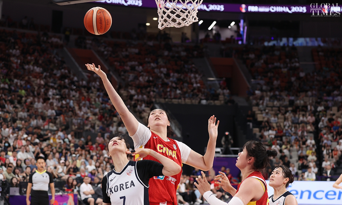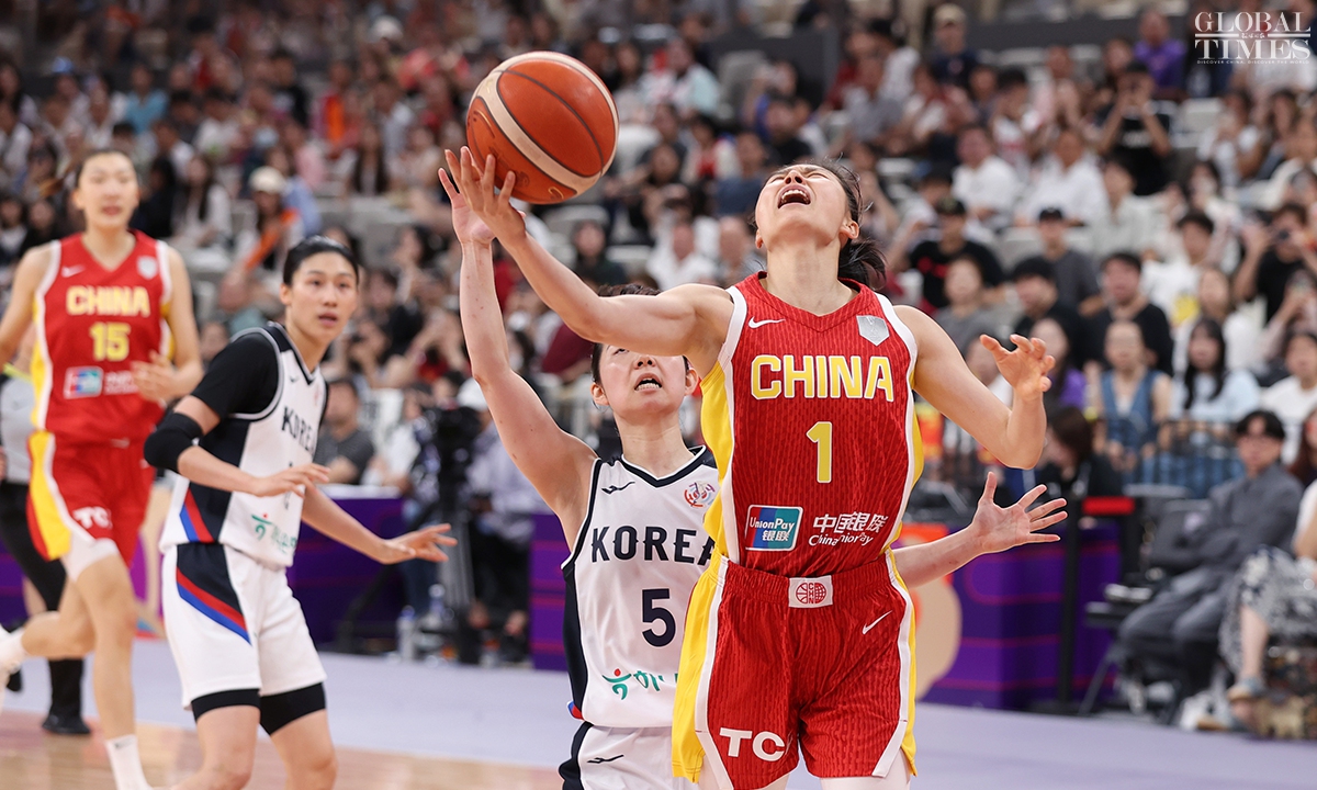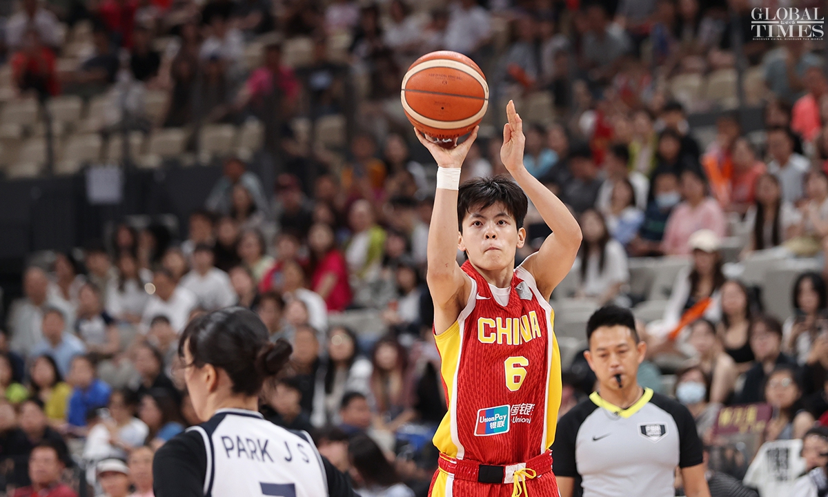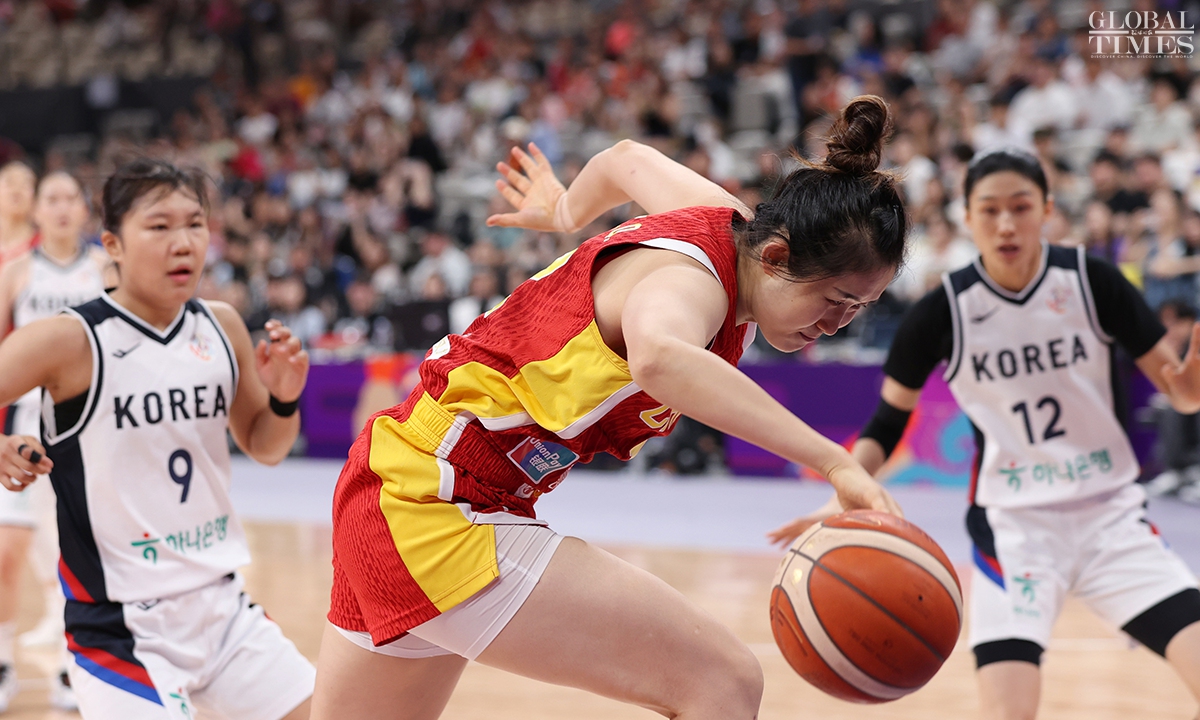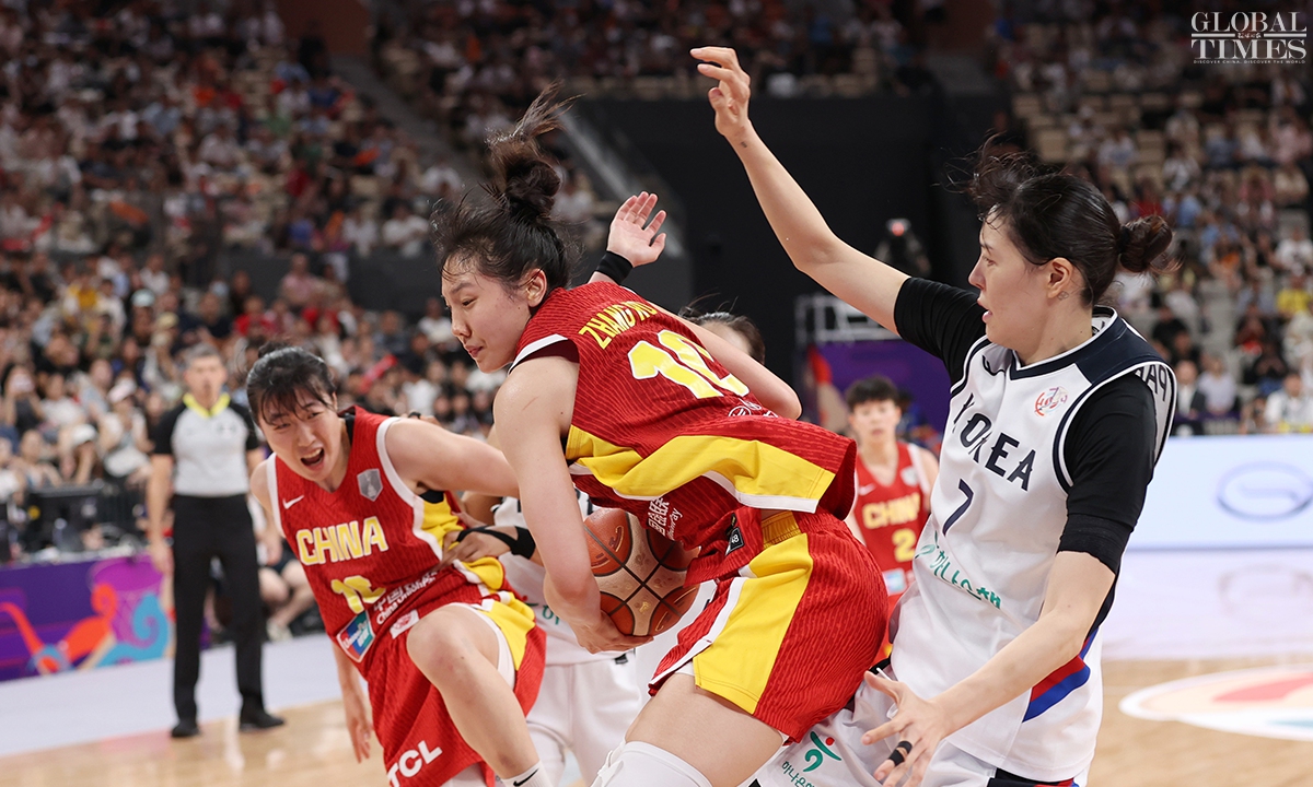 The Chinese women’s national basketball team finished their FIBA Asia Cup campaign in the third place after defeating South Korea 101-66 on Sunday in Shenzhen, South China’s Guangdong Province. The team players were awarded the bronze medal afterwards. Photos: Cui Meng/GT