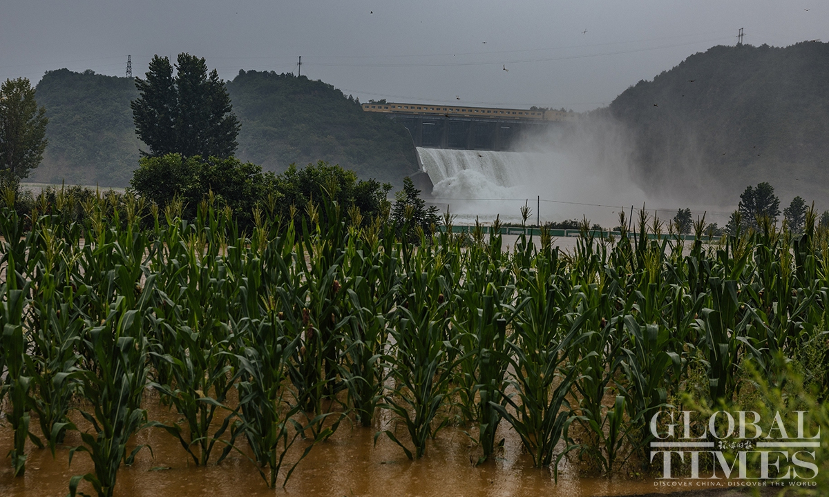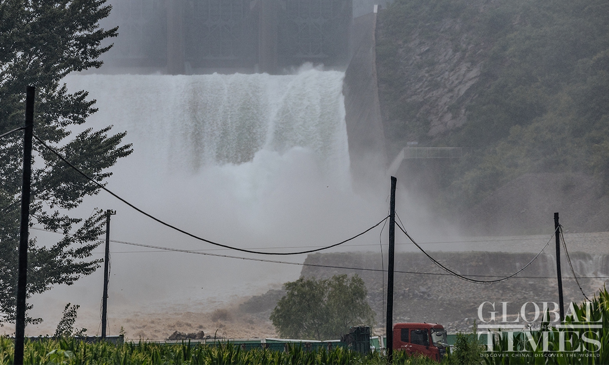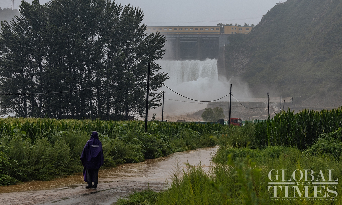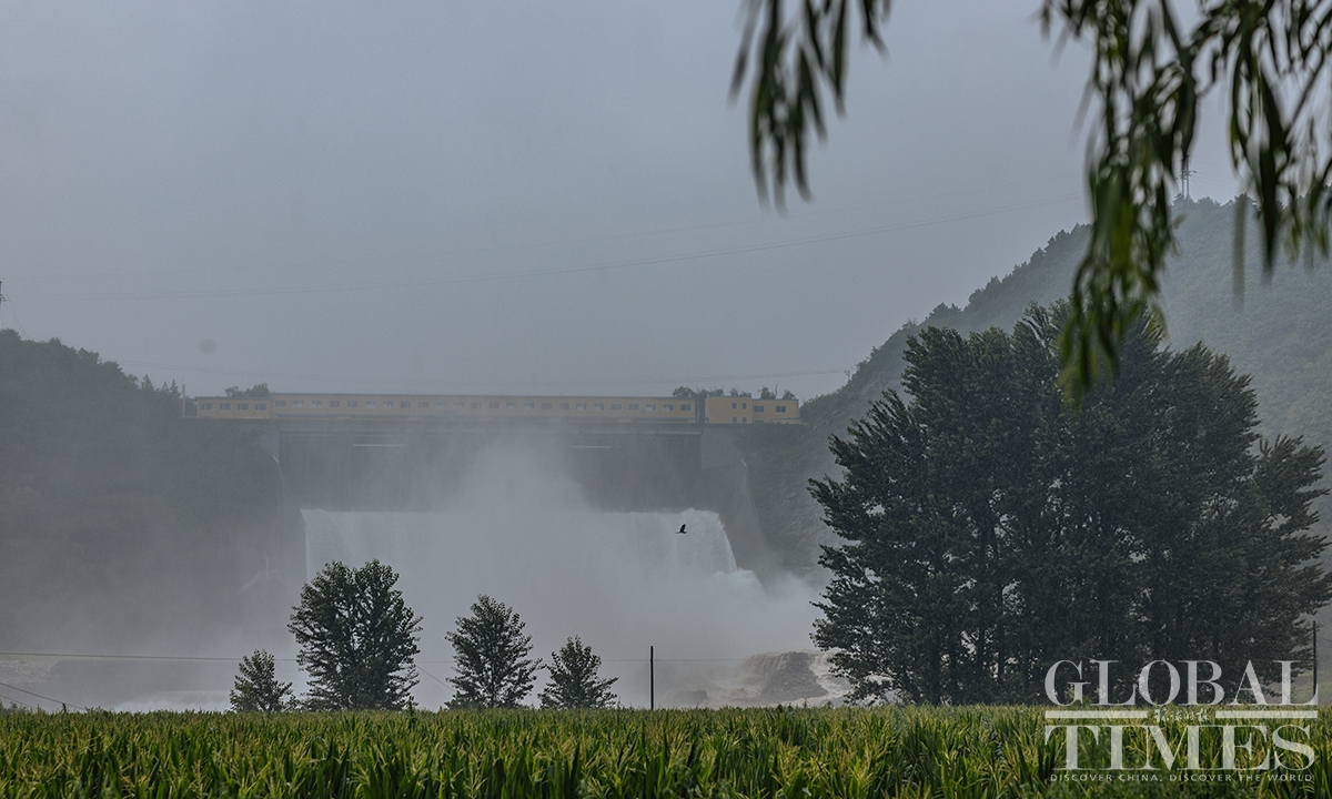 July 27, 2025 – The flood discharge channel in Beijianchang Village, Mujiayu Town, Miyun District, Beijing, is actively releasing water to avoid overflowing of the reservoir after persistent heavy rainfall. Photos: Li Hao/GT