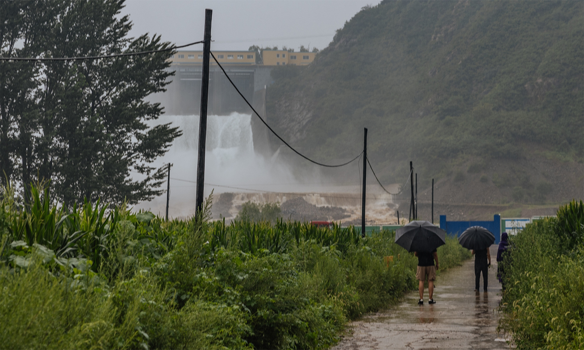 Flood discharge in progress at Beijianchang village, Miyun, Beijing