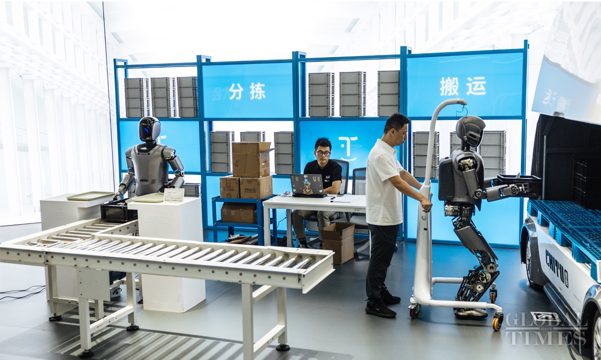 The Global Times on Thursday visited the world’s first 4S store for humanoid robots and the robot themed restaurant in Yizhuang, Beijing ahead of the opening of the 2025 World Robot Conference. As a key supporting project of the conference, these two innovative establishments integrate technology exhibition, interactive experience and commercial applications, marking a significant step forward for Beijing E-Town in the field of embodied intelligence. Photos: Li Hao/GT
