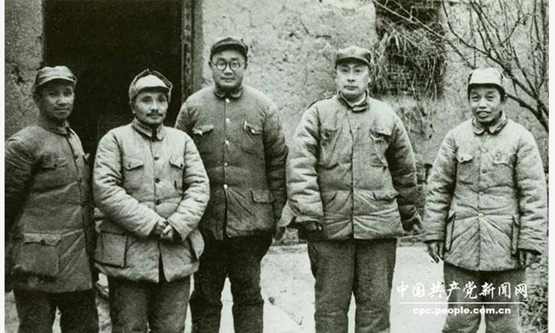 Deng Xiaoping (2nd from left), the newly-appointed secretary of the General Front Committee formed by the Central Military Commission, stands for a photo with four other officials in November 1948. figcaption >