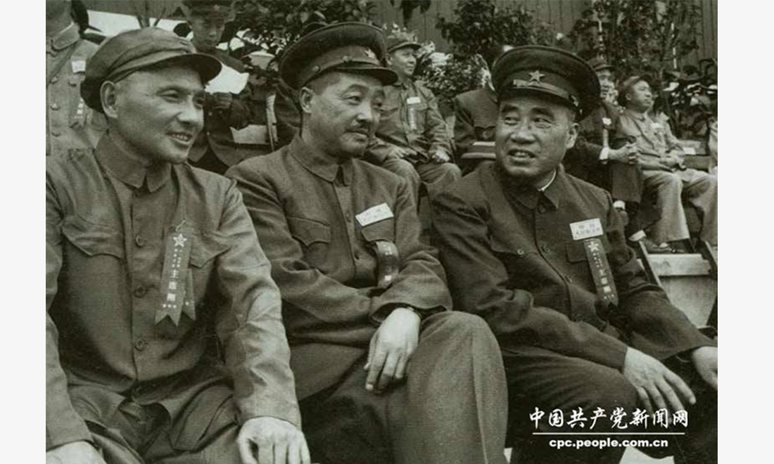 Deng Xiaoping (left) attends an event marking the 25th anniversary of the establishment of the Chinese People's Liberation Army (PLA) in August 1952. figcaption >