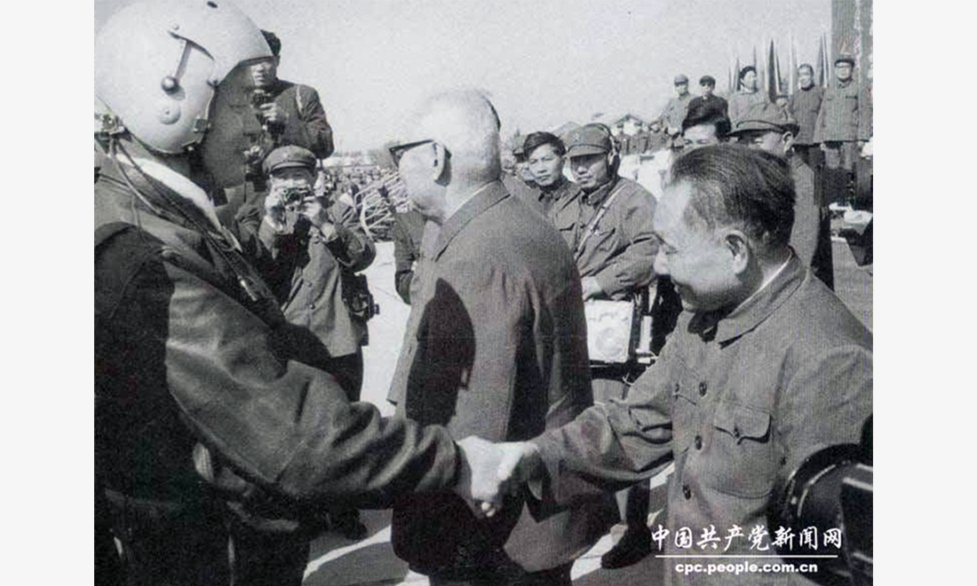 Deng Xiaoping (right) shakes hands with a pilot during an air show in October 1978. figcaption >