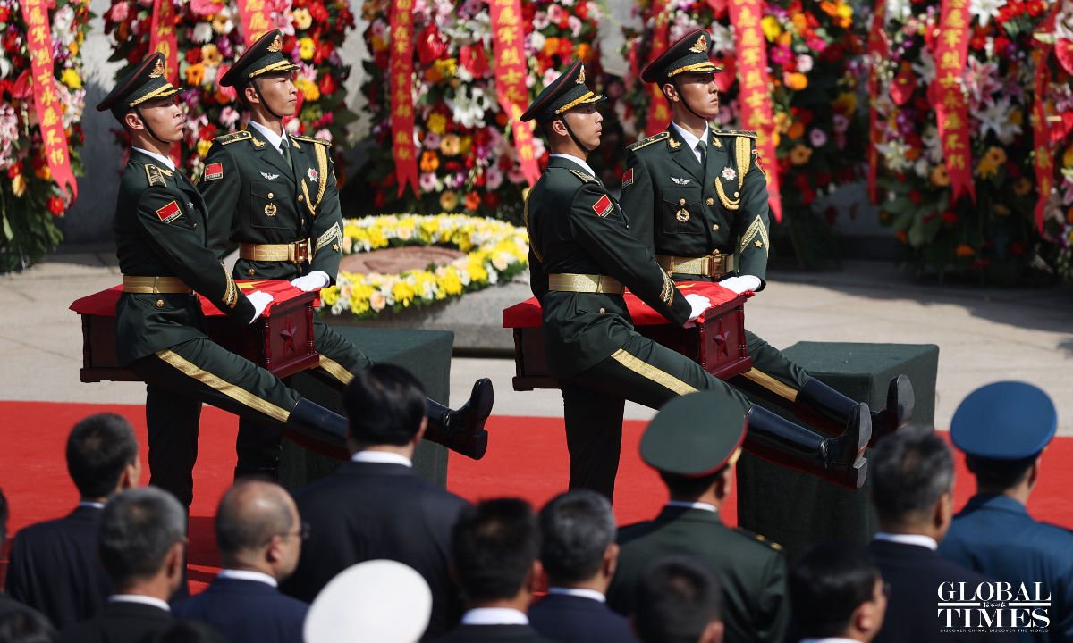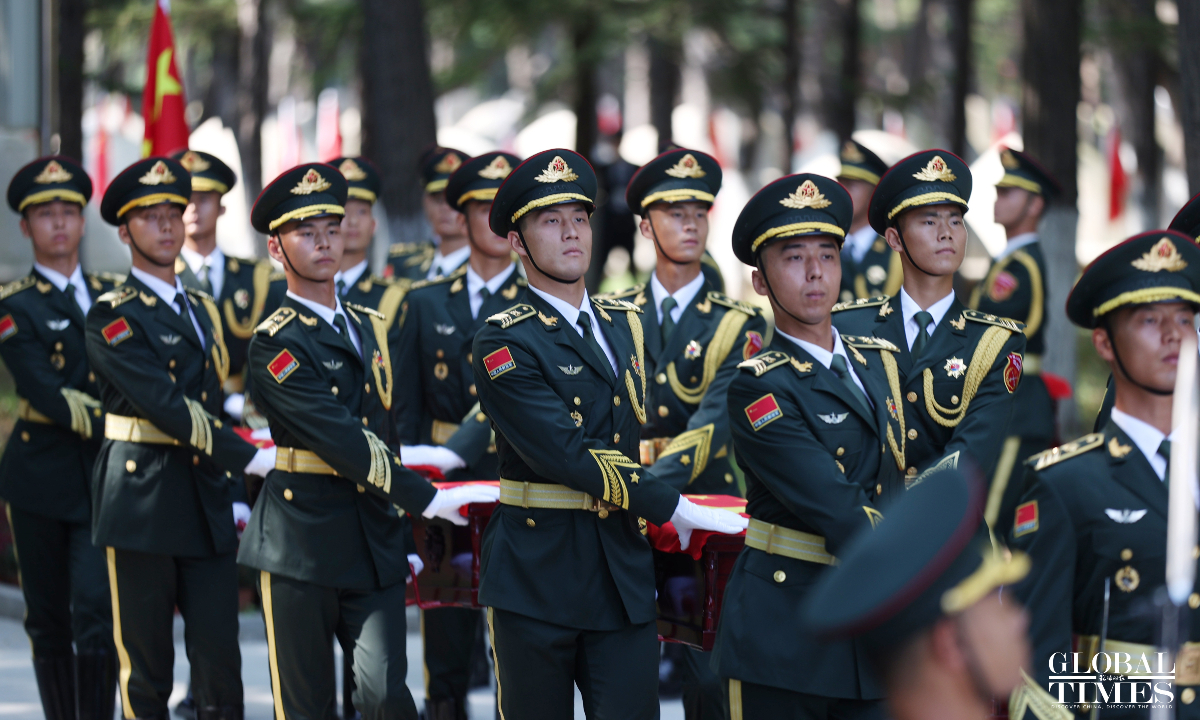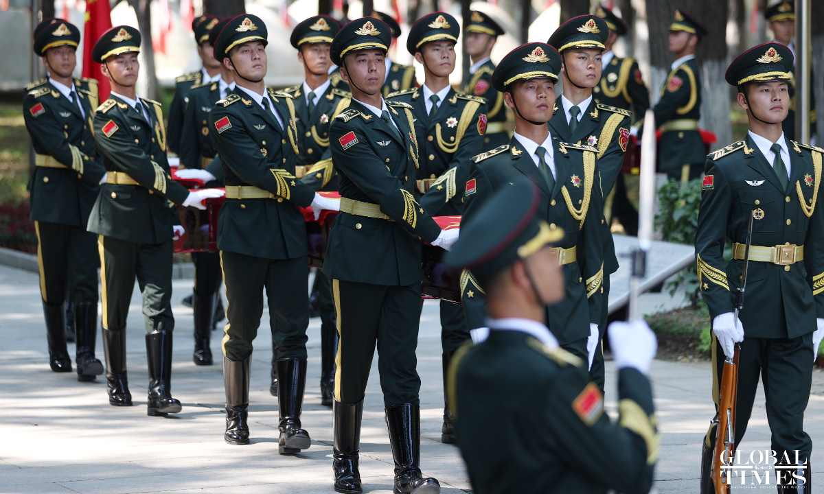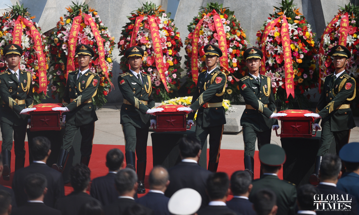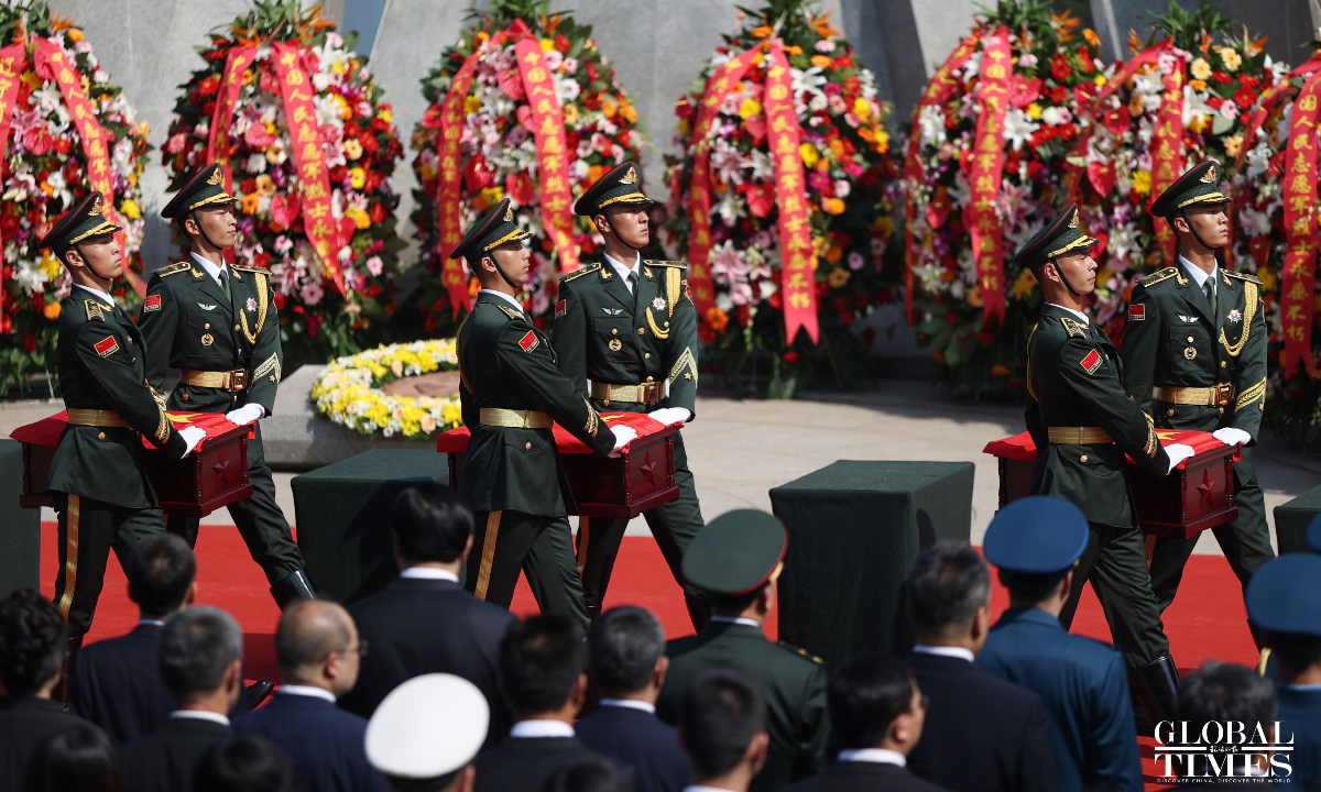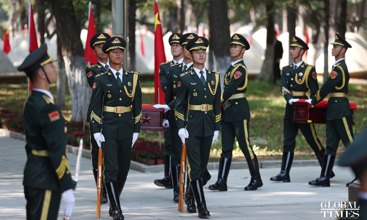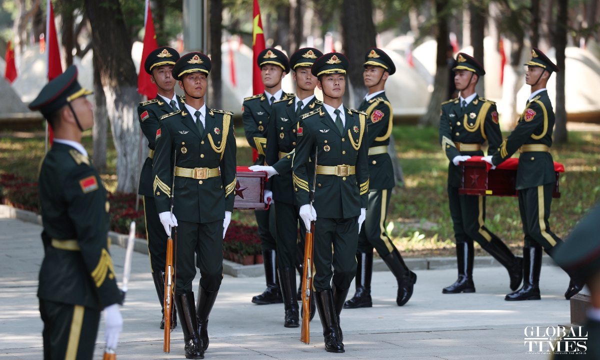 China held a solemn burial ceremony in Shenyang, Northeast China’s Liaoning Province on Saturday for the remains of 30 Chinese People's Volunteers (CPV) soldiers who lost their lives during the War to Resist US Aggression and Aid Korea, after their remains returned to China on Friday from South Korea, carried by a Chinese People's Liberation Army (PLA) Air Force Y-20 transport aircraft. (Photos: Cui Meng/GT)