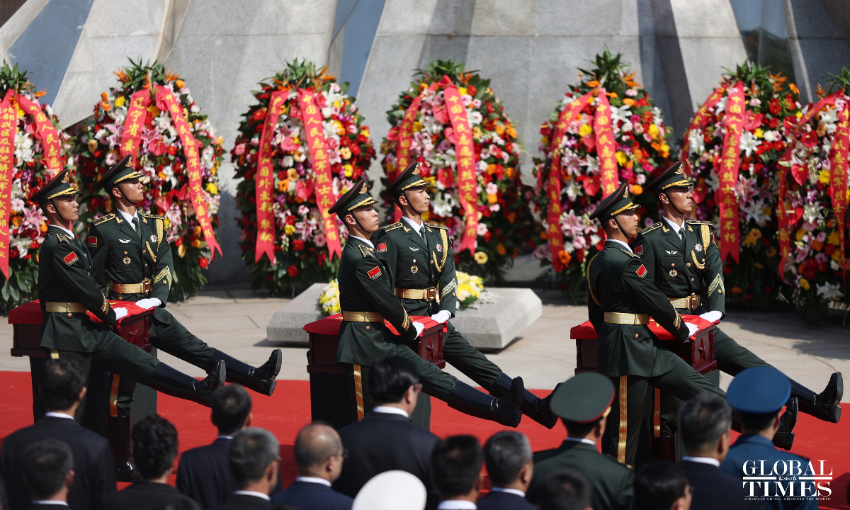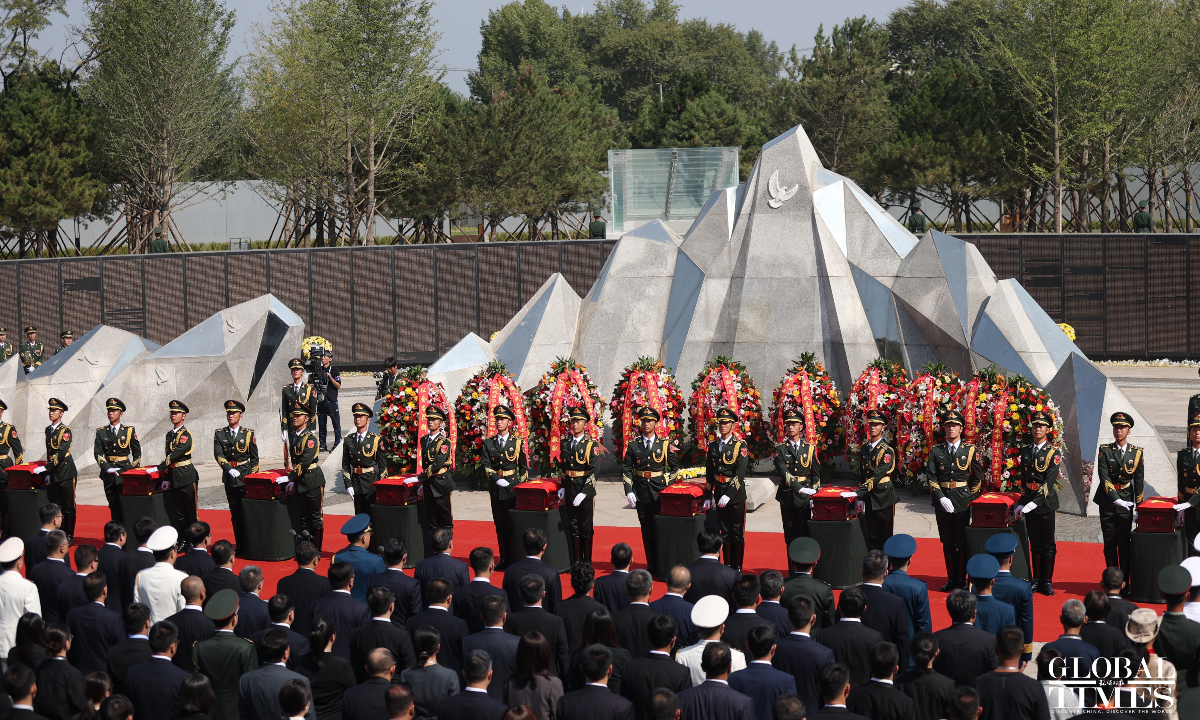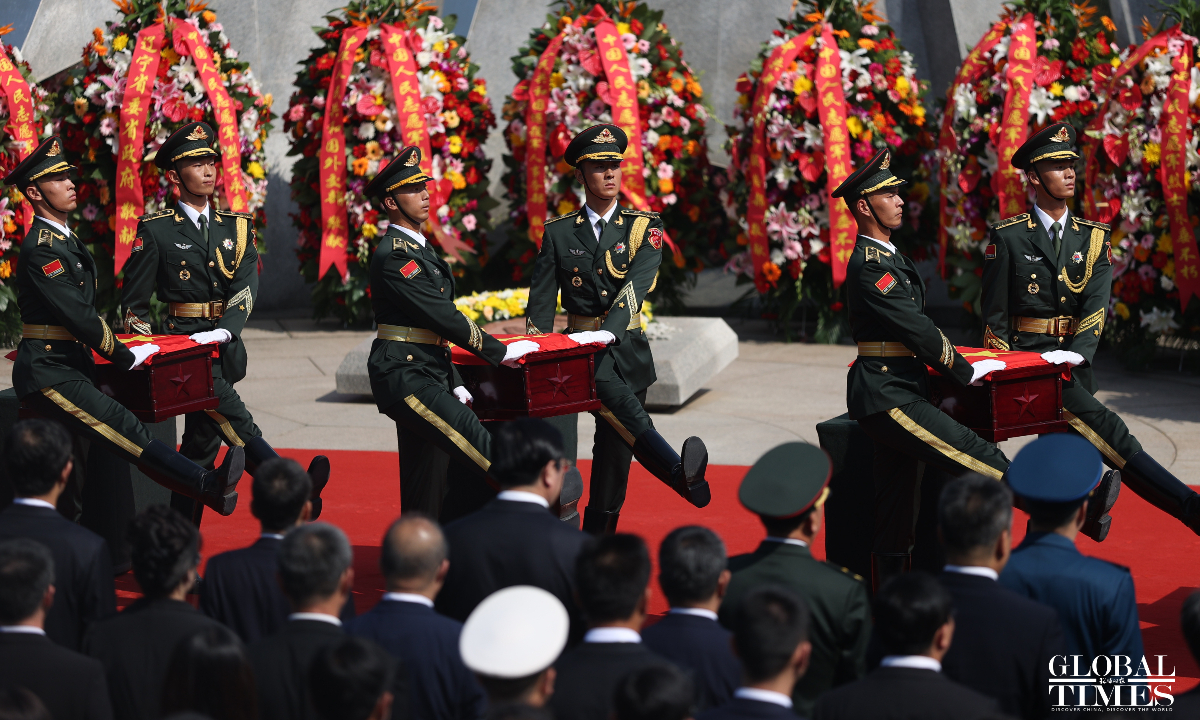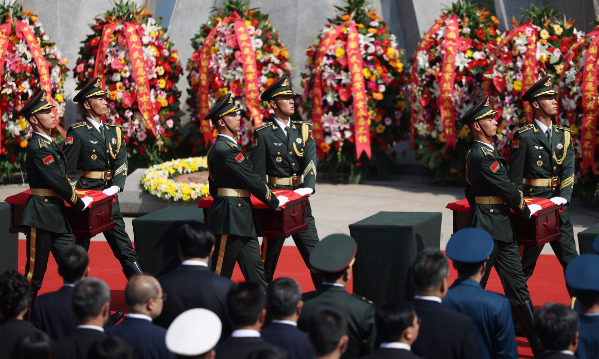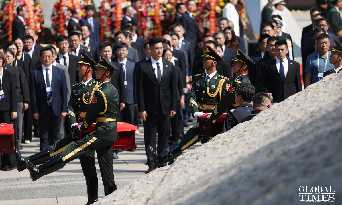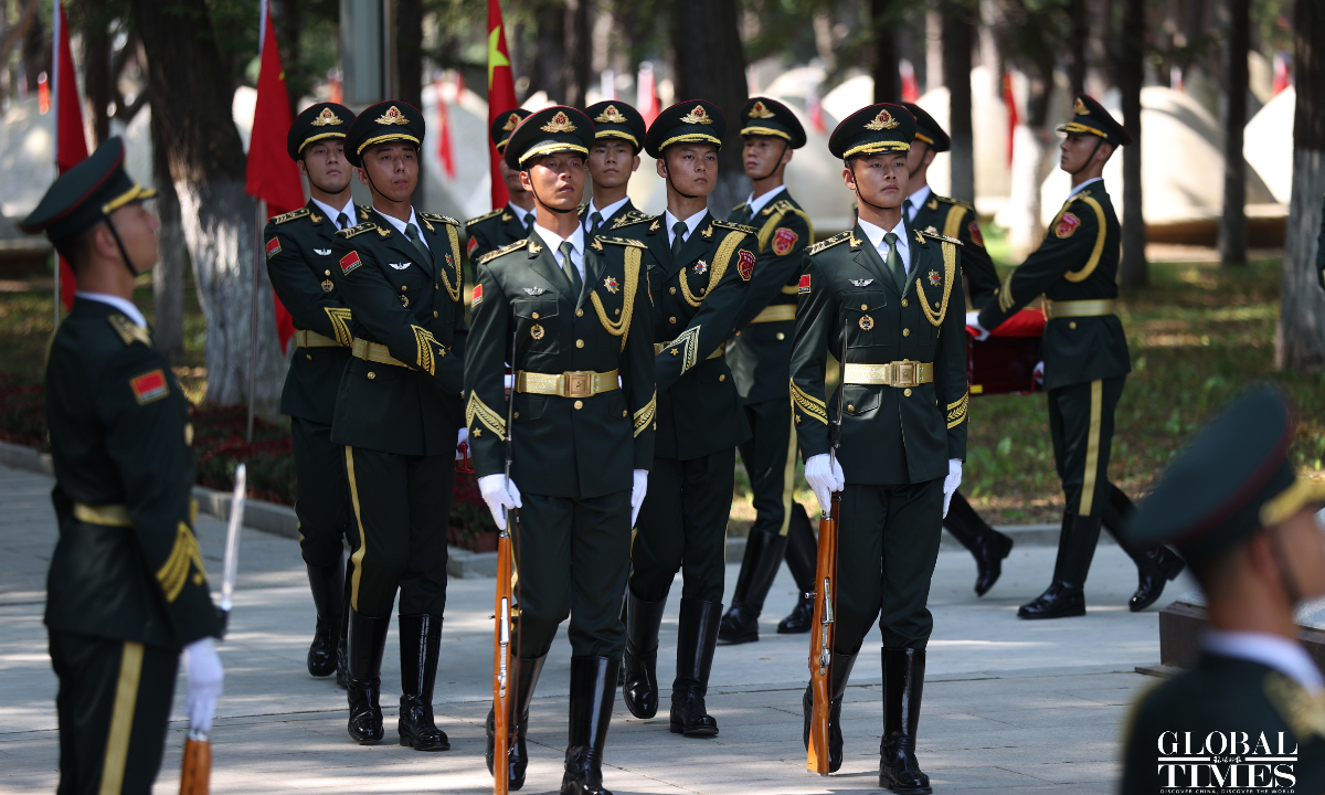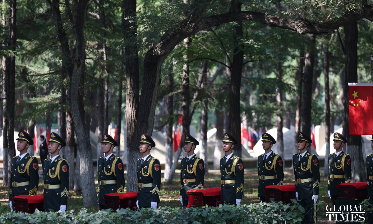 China held a solemn burial ceremony in Shenyang, Northeast China’s Liaoning Province on Saturday for the remains of 30 Chinese People's Volunteers (CPV) soldiers who lost their lives during the War to Resist US Aggression and Aid Korea, after their remains returned to China on Friday from South Korea, carried by a Chinese People's Liberation Army (PLA) Air Force Y-20 transport aircraft. (Photos: Cui Meng/GT)