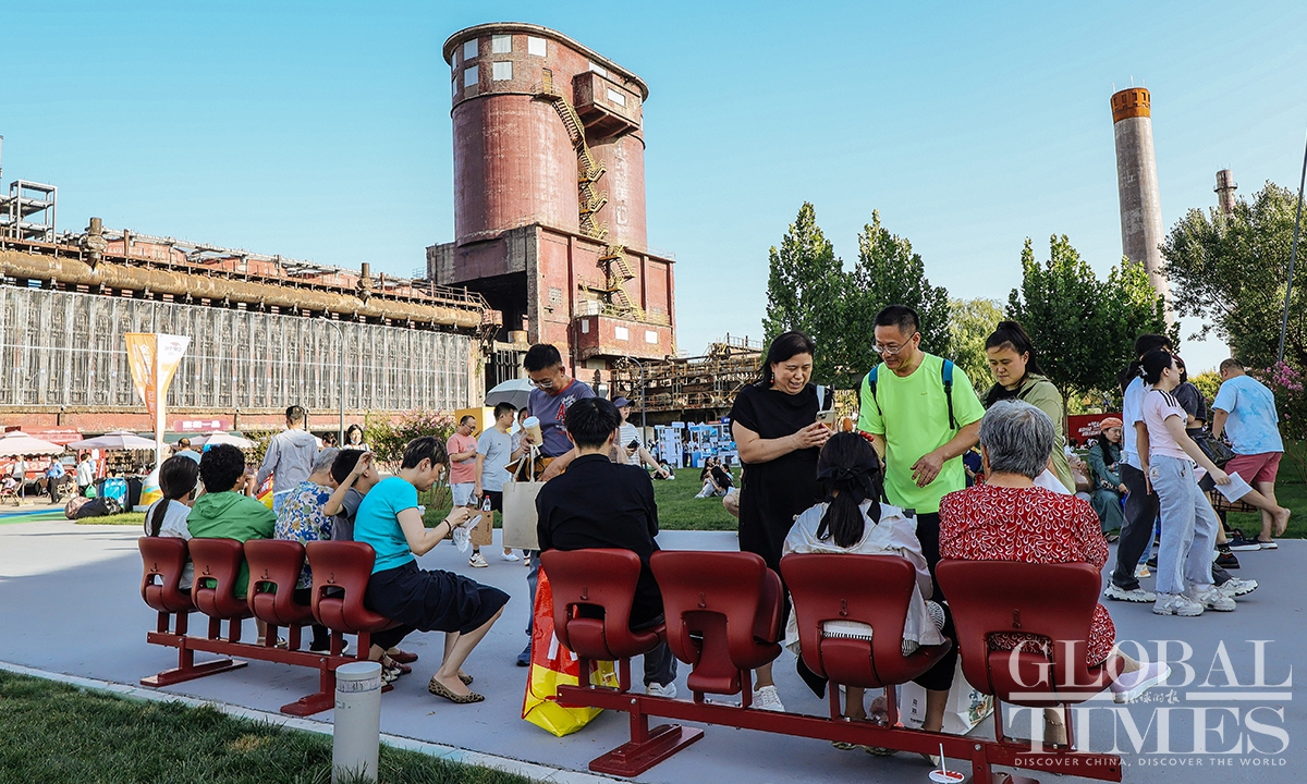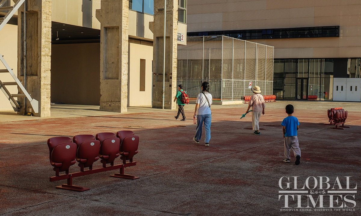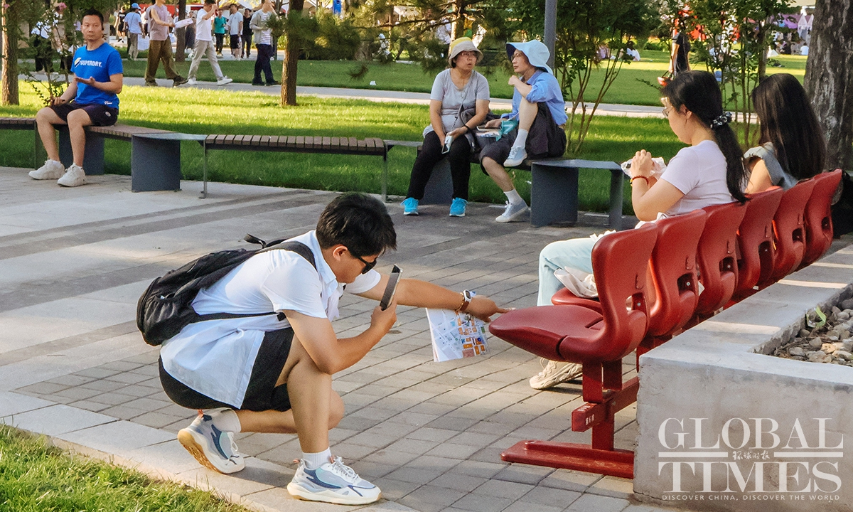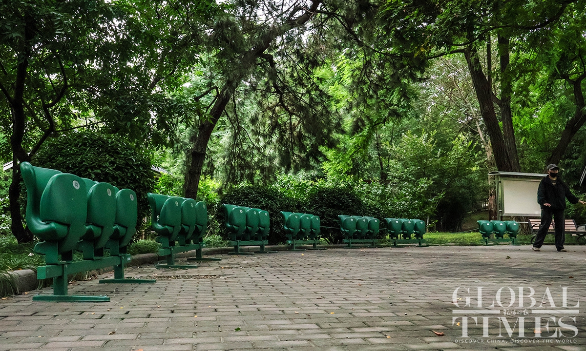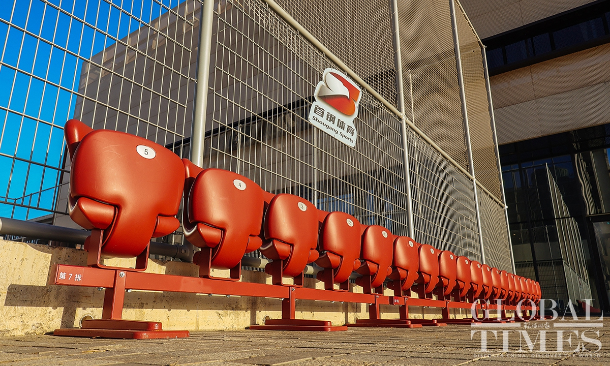 At Shougang International Convention and Exhibition Center, rows of red chairs were securely installed, providing convenient resting spots for visitors during the 2025 China International Fair for Trade in Services (CIFTIS). The Beijing Municipal Forestry and Parks Bureau received over 4,700 green chairs, which were distributed across green areas such as the Taoranting Park and the Yuyuantan Park. (Photo: Li Hao/GT)