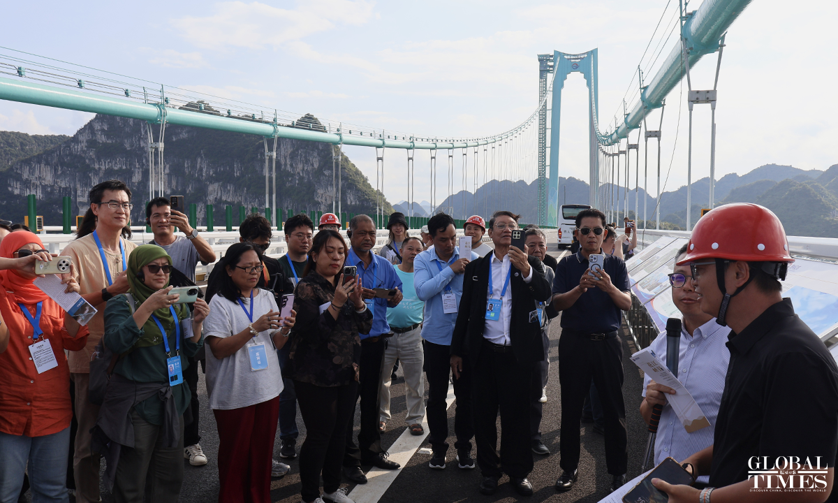 Members of the ASEAN Plus Three (10+3) media delegation, fresh from participating in the 2025 Media Cooperation Forum on Belt and Road, recently embarked on a joint interview tour through Southwest China's Guizhou Province. From the ancient rhythms of Tianlong Tunpu (Tianlong Ancient Castle) to the thunderous grandeur of the Huangguoshu Waterfall, and the engineering marvel of the Huajiang Grand Canyon Bridge, international journalists immersed themselves in a landscape where nature, culture, and human ingenuity converge. Through these experiences, the group gained insight into how cultural tourism drives rural revitalization, observing community-led initiatives that blend heritage preservation with economic growth. Photos: Lin Xiaoyi/GT