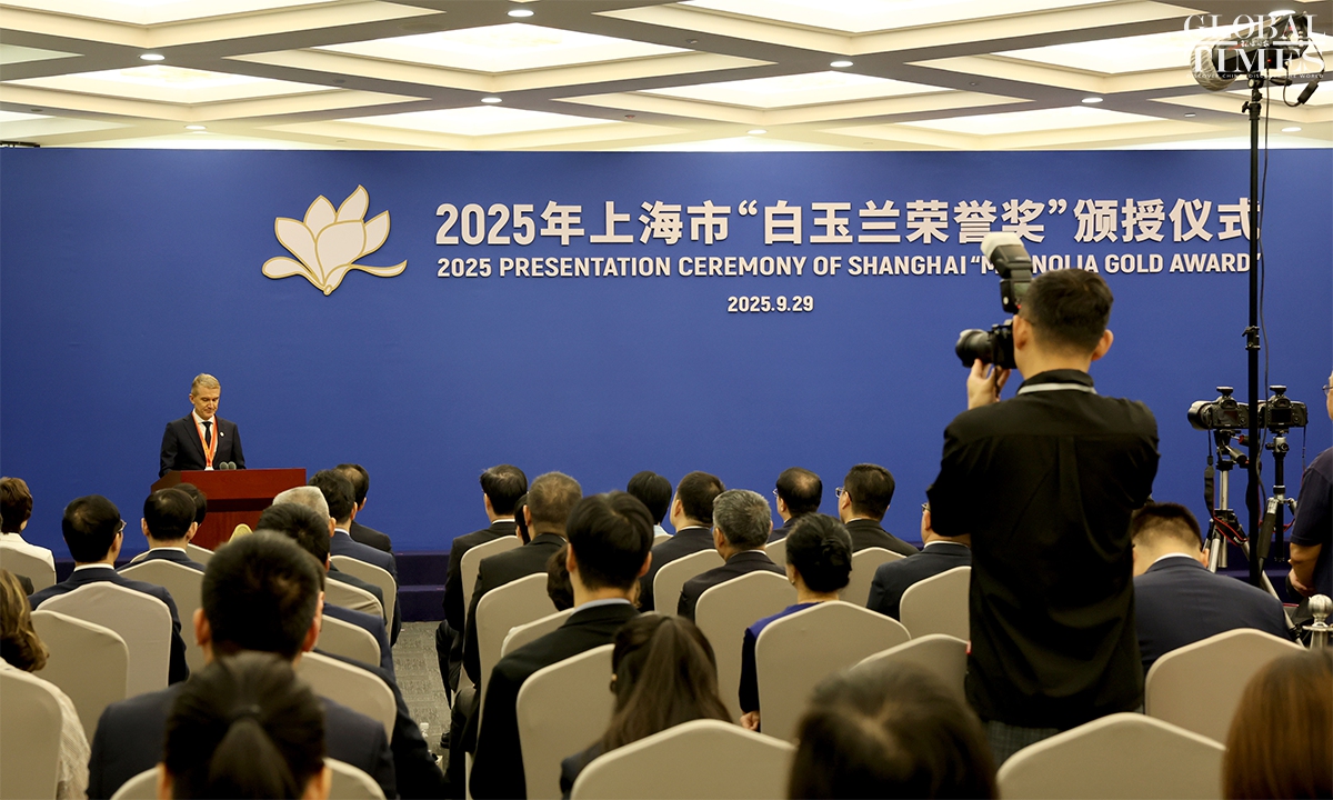 The 2025 presentation ceremony of the Shanghai “Magnolia Gold Award” was held on September 29. A total of 28 expatriates received the Magnolia Gold Award, and another two were granted honorary citizenship this year for their remarkable achievements in their fields and significant contributions to Shanghai’s development and international relations, the Shanghai municipal government announced on Monday. Shanghai began honoring expatriates with the Magnolia Silver Award in 1989 to recognize their contributions to the city, and introduced the Gold Award in 1992 and honorary citizenship in 1997. Since then, a total of 1,907 individuals have received these honors over the past 36 years. Photos: Chen Xia/GT