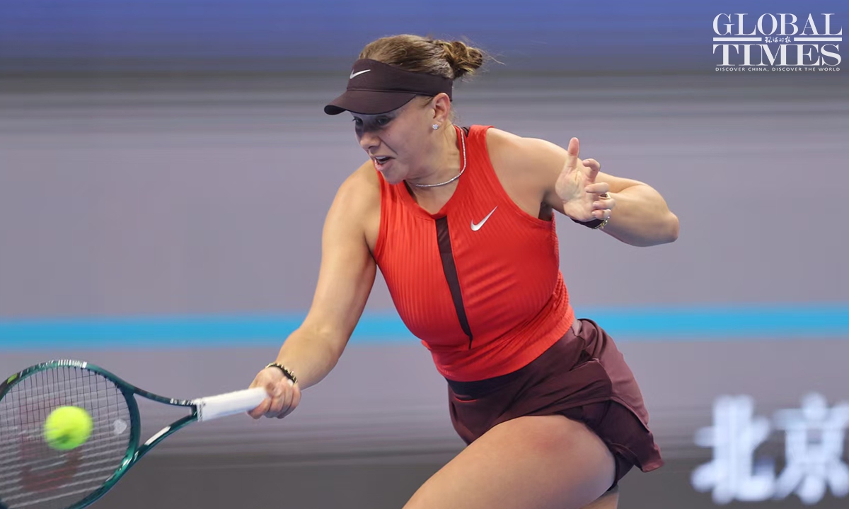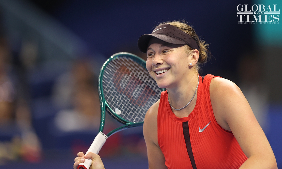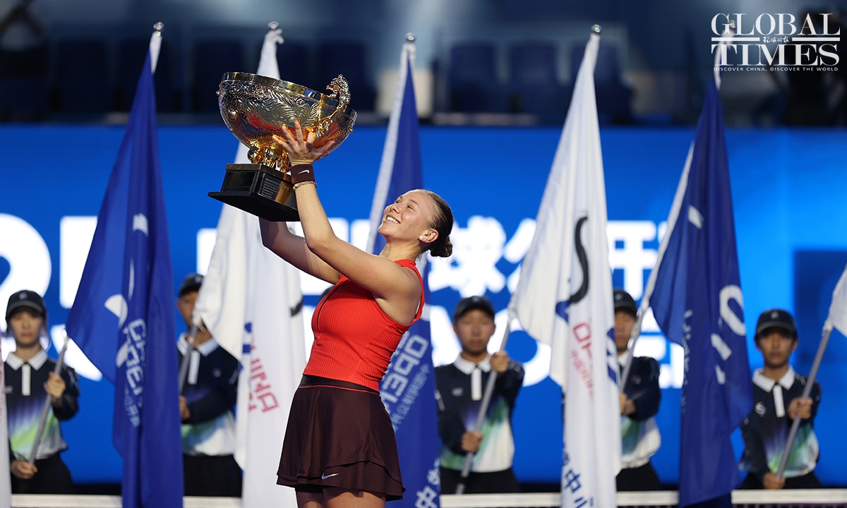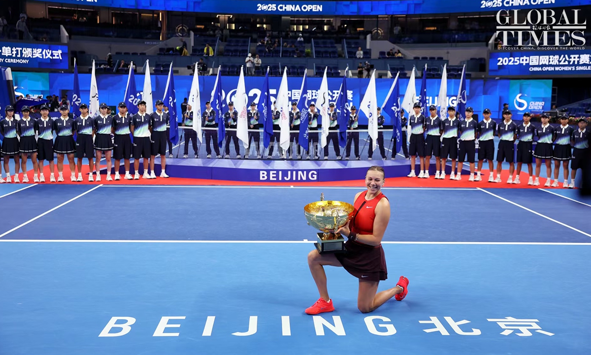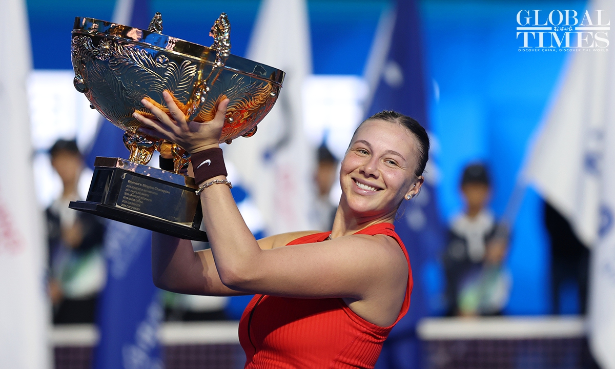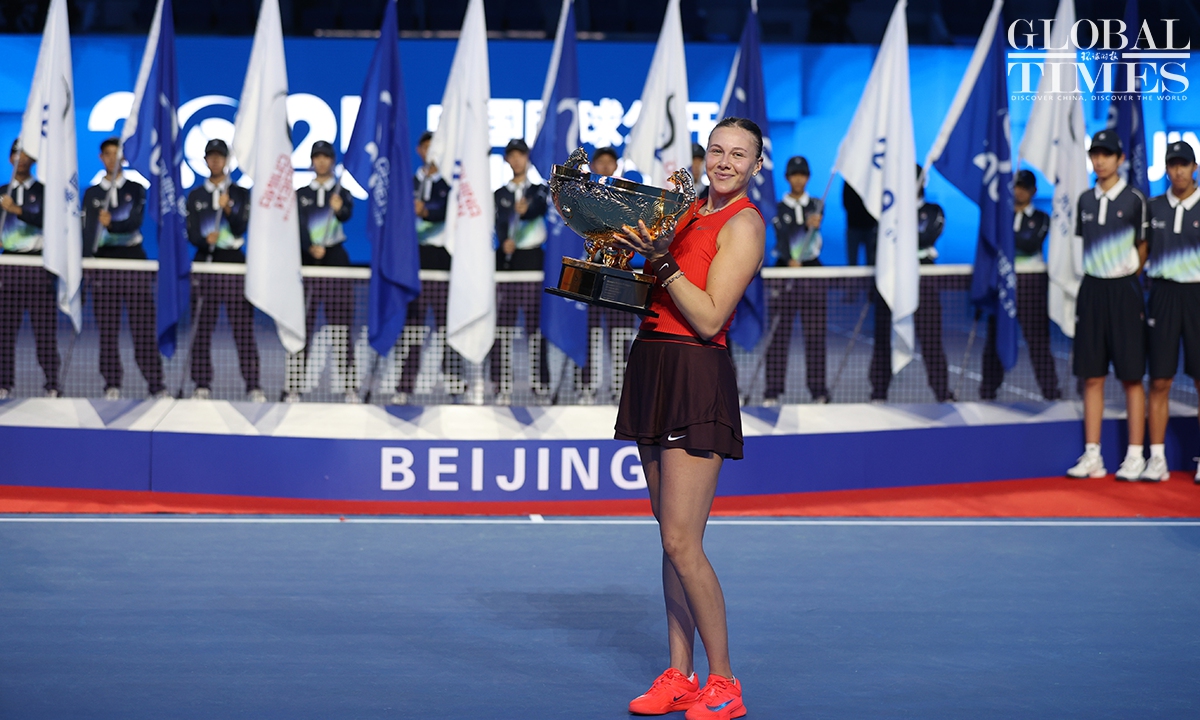 Amanda Anisimova of tge USA captured her first China Open title after defeating Czech rising star Linda Noskova 6-0, 2-6, 6-2 in the women's singles final in Beijing on Sunday. This is the first time that Anisimova has won a WTA 1000-level singles title in her career. Photos: Cui Meng/GT