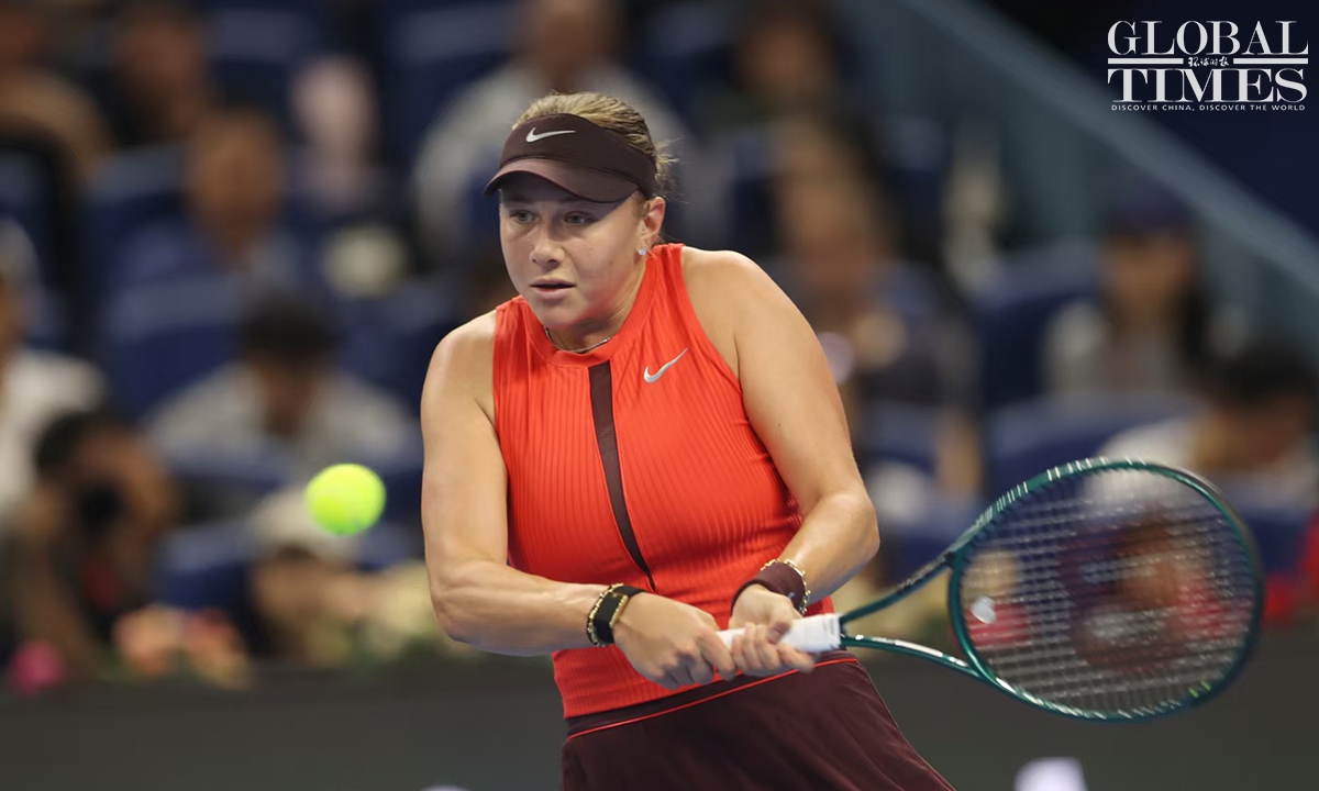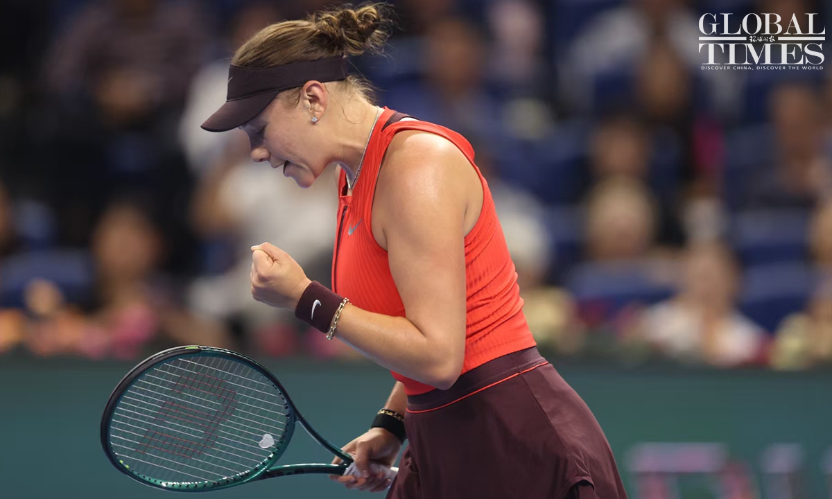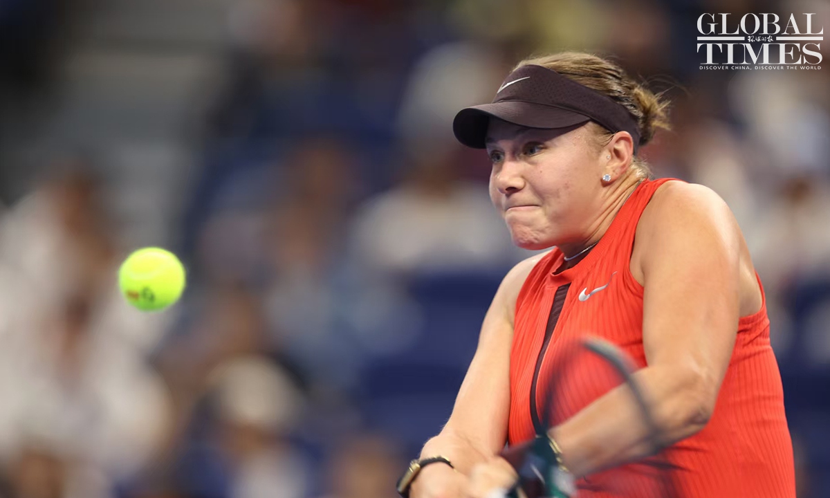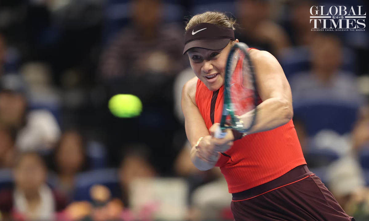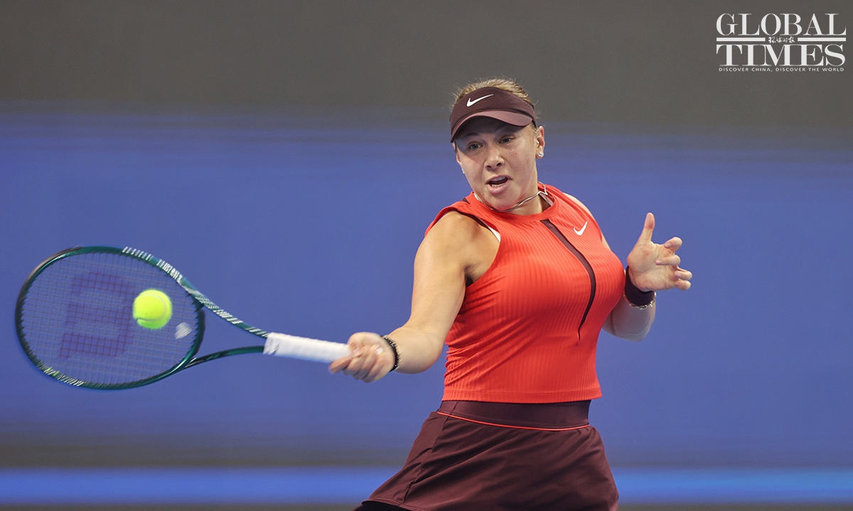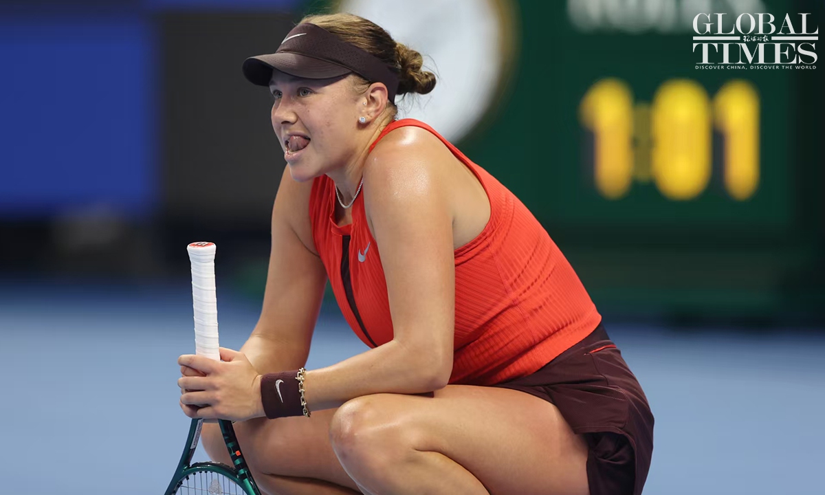 Amanda Anisimova of tge USA captured her first China Open title after defeating Czech rising star Linda Noskova 6-0, 2-6, 6-2 in the women's singles final in Beijing on Sunday. This is the first time that Anisimova has won a WTA 1000-level singles title in her career. Photos: Cui Meng/GT
