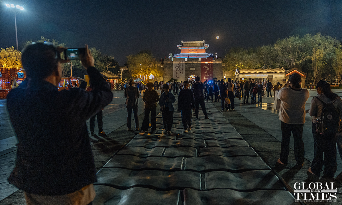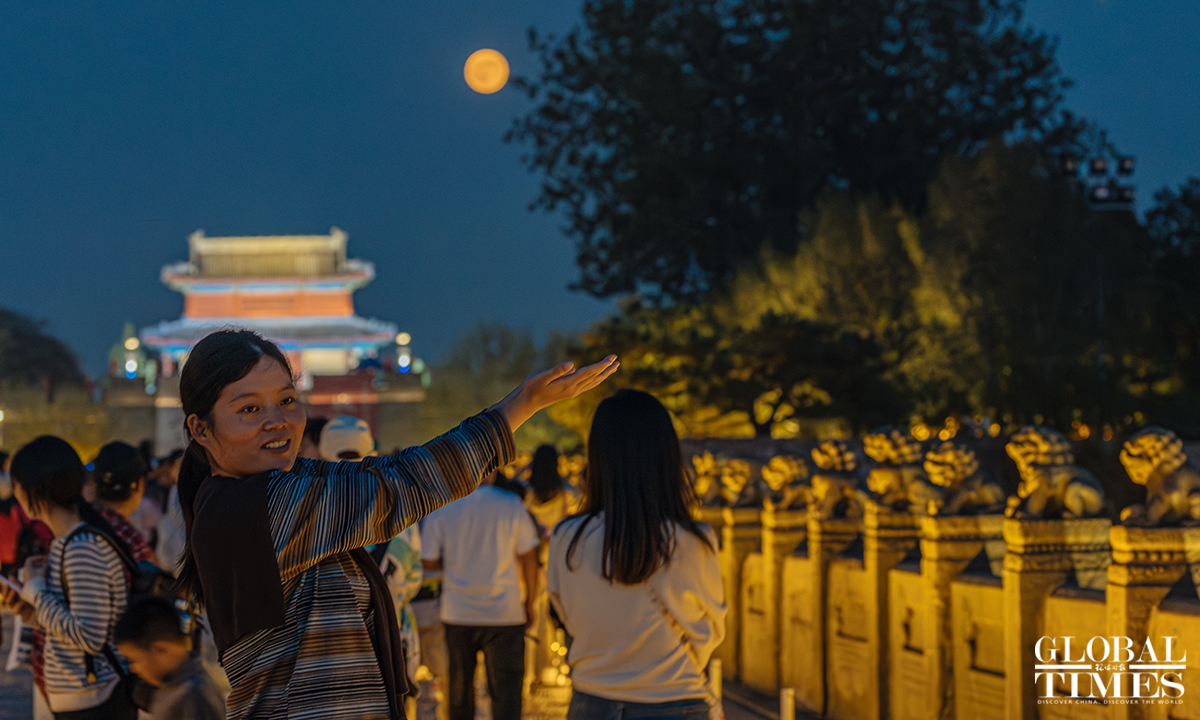 Visitors take photos of the full moon at the Lugou Bridge in Beijing on October 7, 2025. Photo: Li Hao/GT figcaption >