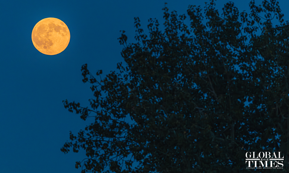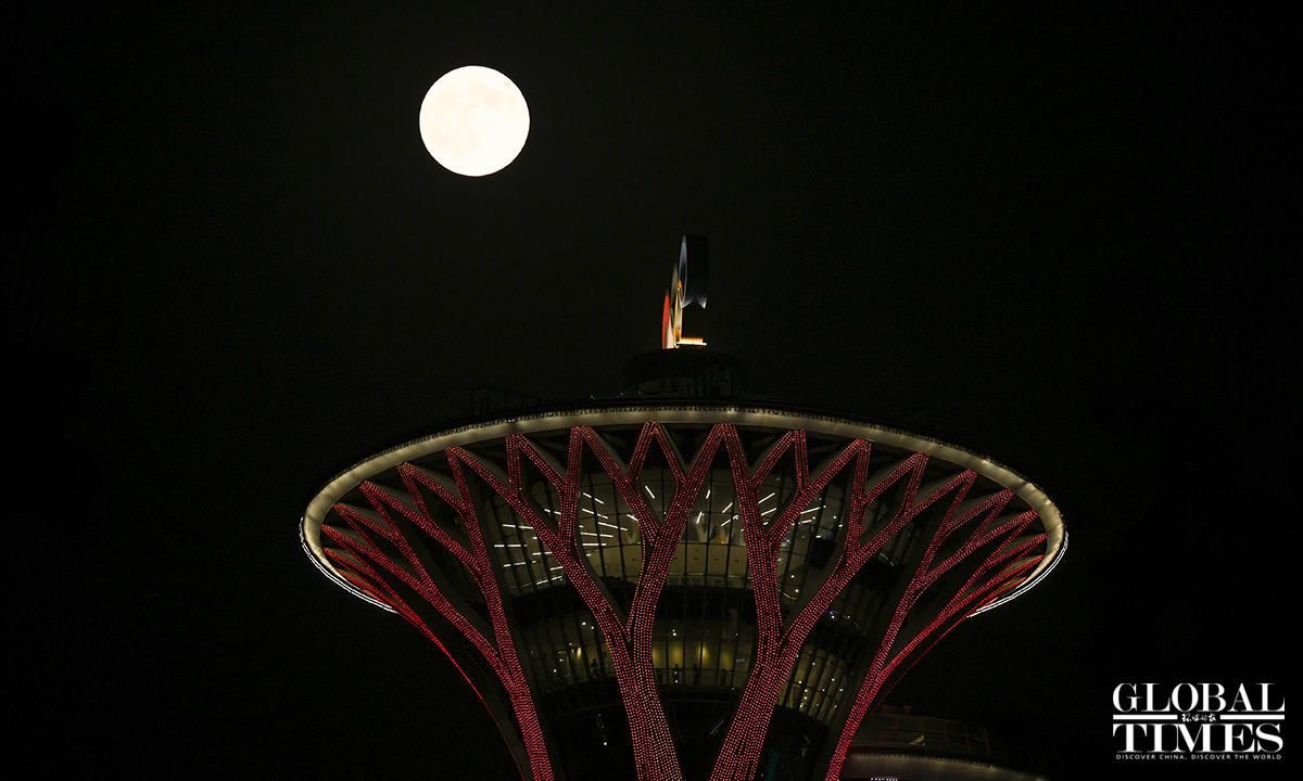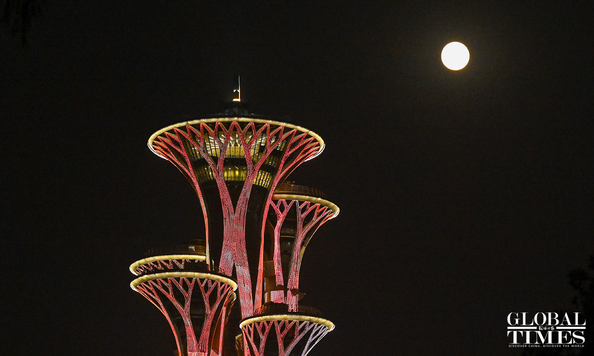 The full moon lights up the sky at the Olympic Forest Park of Beijing on October 7, 2025. Photo: Chen Tao/GT figcaption >