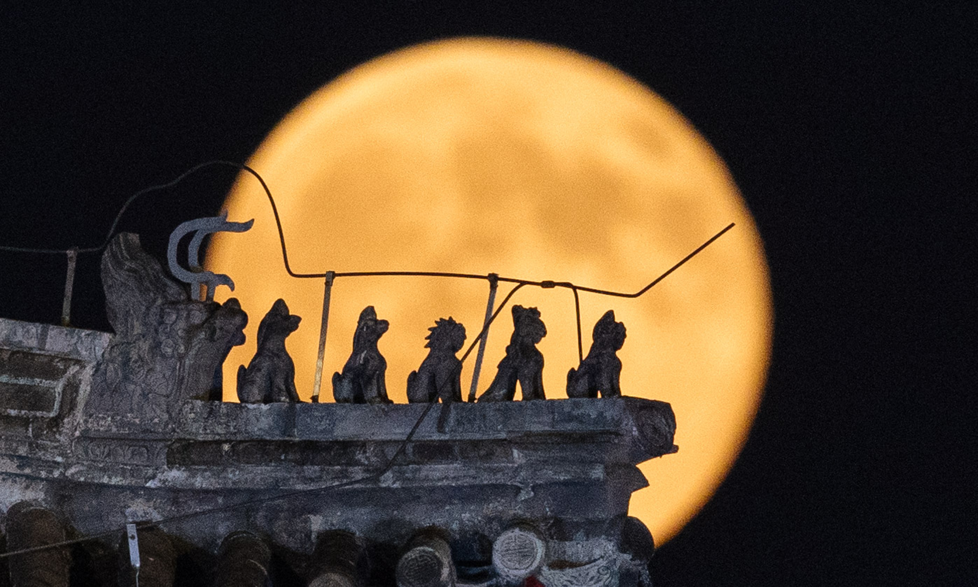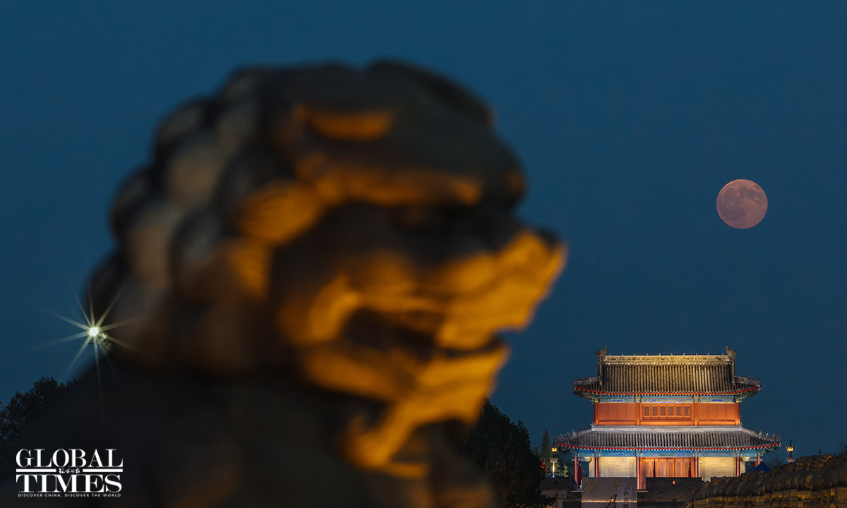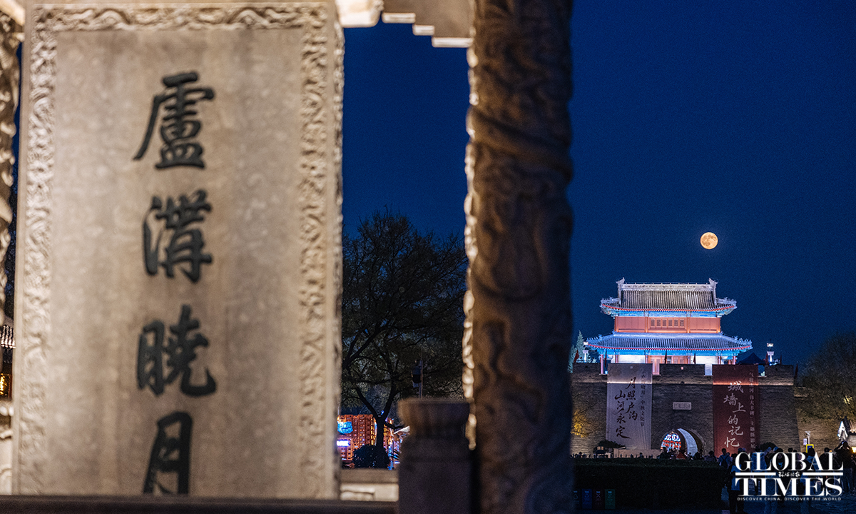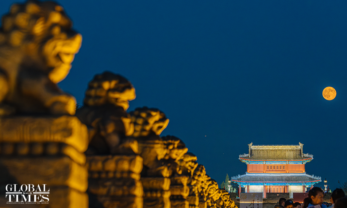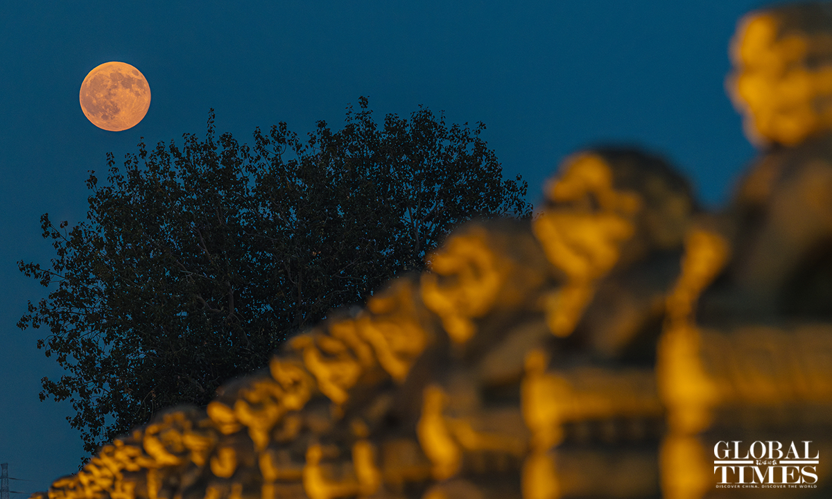The full moon lights up the sky at the Lugou Bridge in Beijing on October 7, 2025. Photo: Li Hao/GT figcaption >