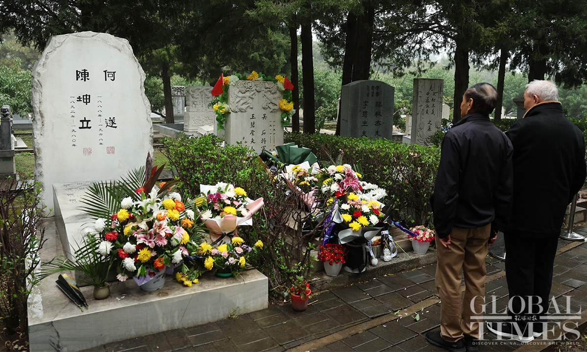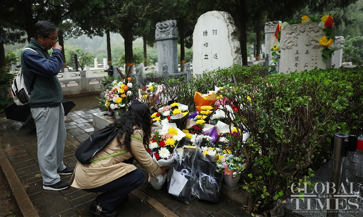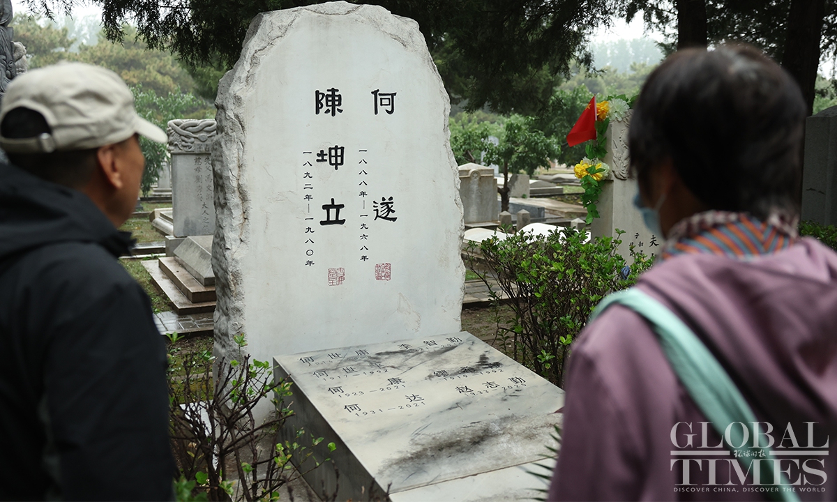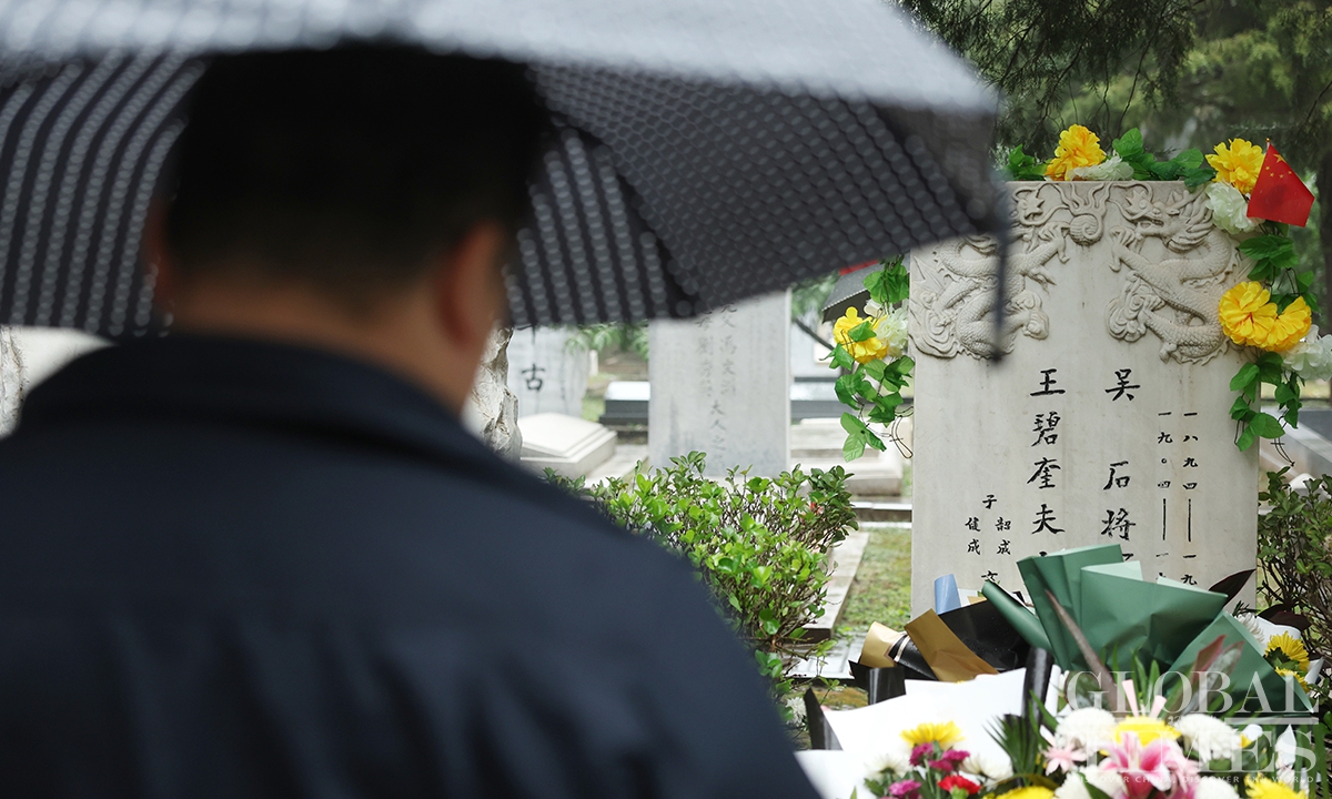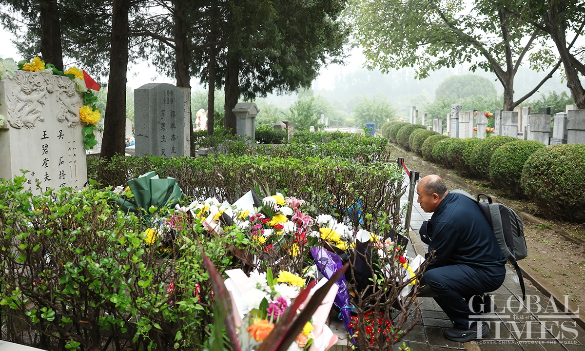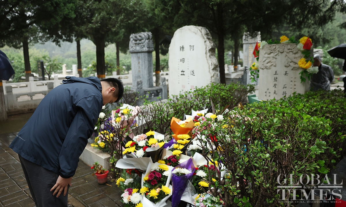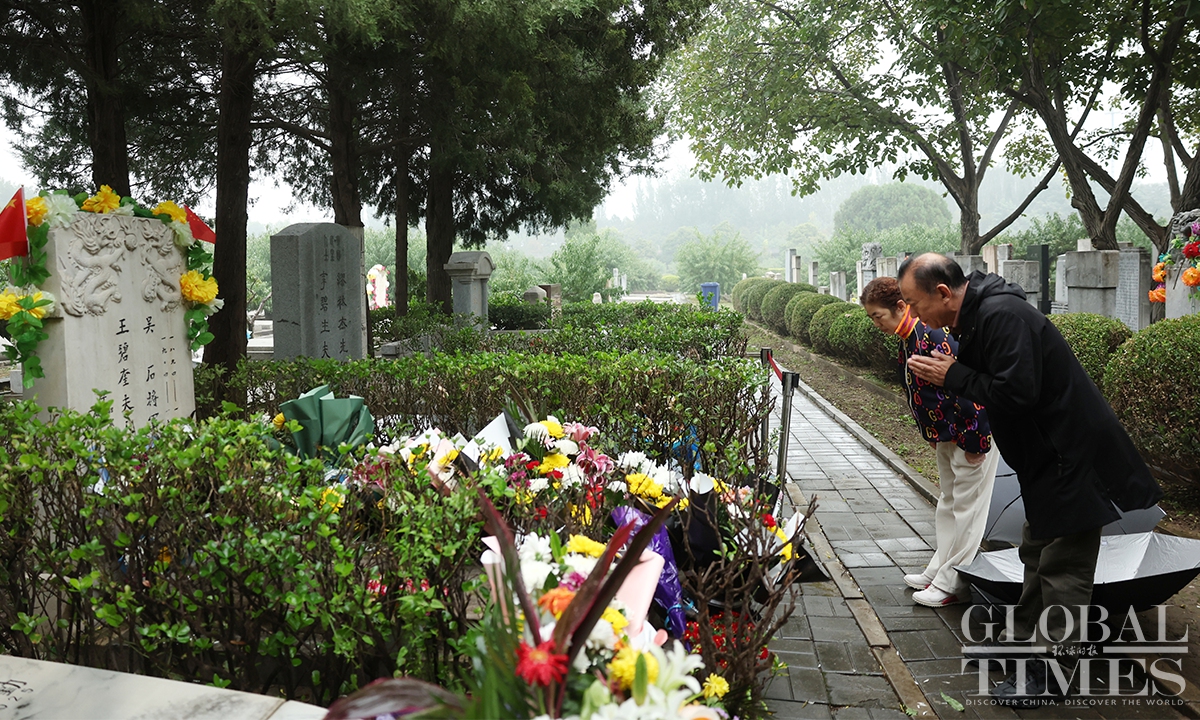 The mainland TV series Silent Honor, which chronicles the story of Wu Shi and other undercover agents of the Communist Party of China (CPC) on the island of Taiwan, has led to a noticeable increase in citizens spontaneously visiting Wu’s tomb to pay tribute. In recent days, the Unknown Heroes Memorial Square in Beijing’s Xishan National Forest Park and Wu Shi's tomb in the Futian cemetery have drawn large crowds of visitors paying their respects. According to staff, such a high volume of visitors had been previously seen only during the Qingming Festival. (Photos: Cui Meng/GT)