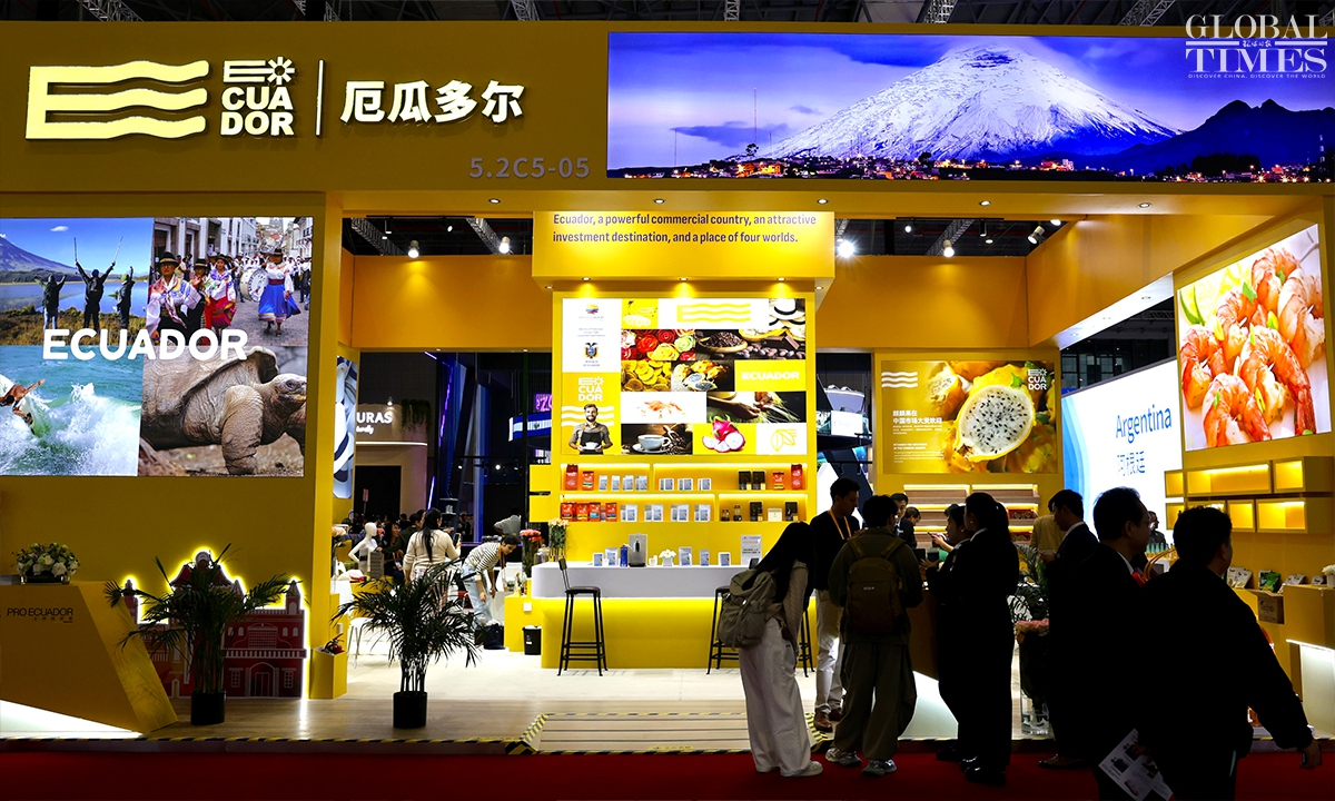 The scale of the 8th China International Import Expo reached a new high, bringing together 155 countries, regions, and international organizations. Thailand, the United Arab Emirates, Nigeria, Georgia, Sweden, and Colombia serve as Guest Countries of Honor. A total of 4,108 overseas enterprises are attending the CIIE this year, of which 290 are Global Fortune 500 companies and industry-leading enterprises. The exhibition area of US companies has remained at the top for seven consecutive years. Photos: Chen Xia/GT