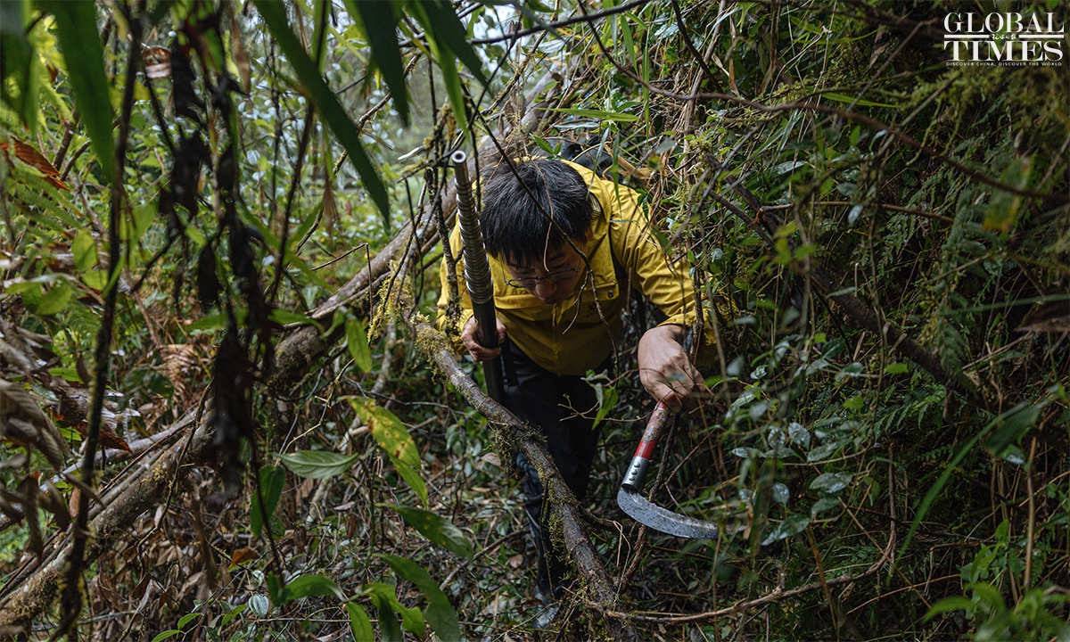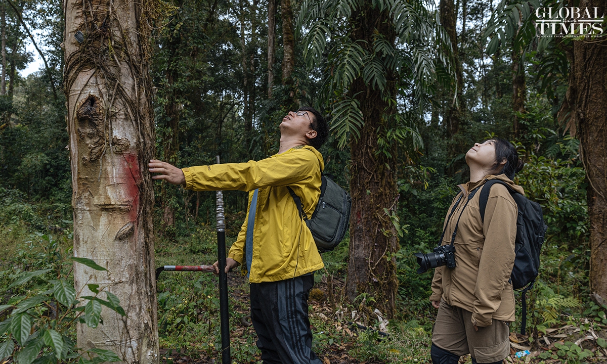 Scientific researchers from the Xishuangbanna Tropical Botanical Garden of the Chinese Academy of Sciences conduct a field survey on local plant species in the forest in Medog county, Nyingchi, Southwest China’s Xizang Autonomous Region in October 2025. Located in the middle and lower reaches of the Yarlung Zangbo River on the southeastern Qinghai-Xizang Plateau, Medog sits at the heart of one of the world’s biodiversity hotspots. Photos: Li Hao/GT
