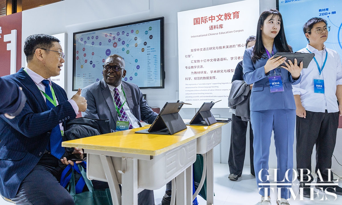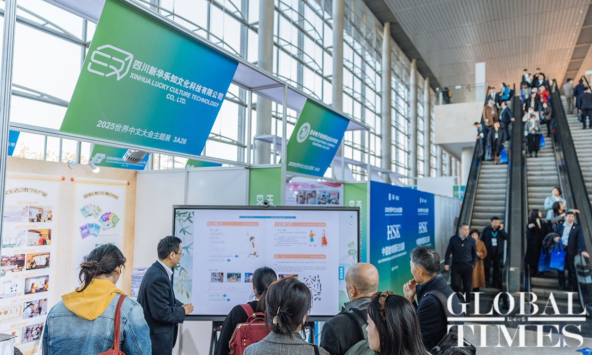 The 2025 World Chinese Language Conference, hosted by the Ministry of Education, kicked off at the China National Convention Center in Beijing on Friday, drawing nearly 5,000 participants from more than 160 countries and regions. Under the theme “Innovation Leads, AI Empowers: Learning Chinese Without Borders,” the event showcases how digital technologies are reshaping global Chinese education while reinforcing the language’s role as a bridge for civilizational dialogue and practical development. The event also features exhibitions on Chinese language education and culture, where Chinese and international guests can experience cutting-edge projects in tech-empowered education. Photos: Li Hao/GT